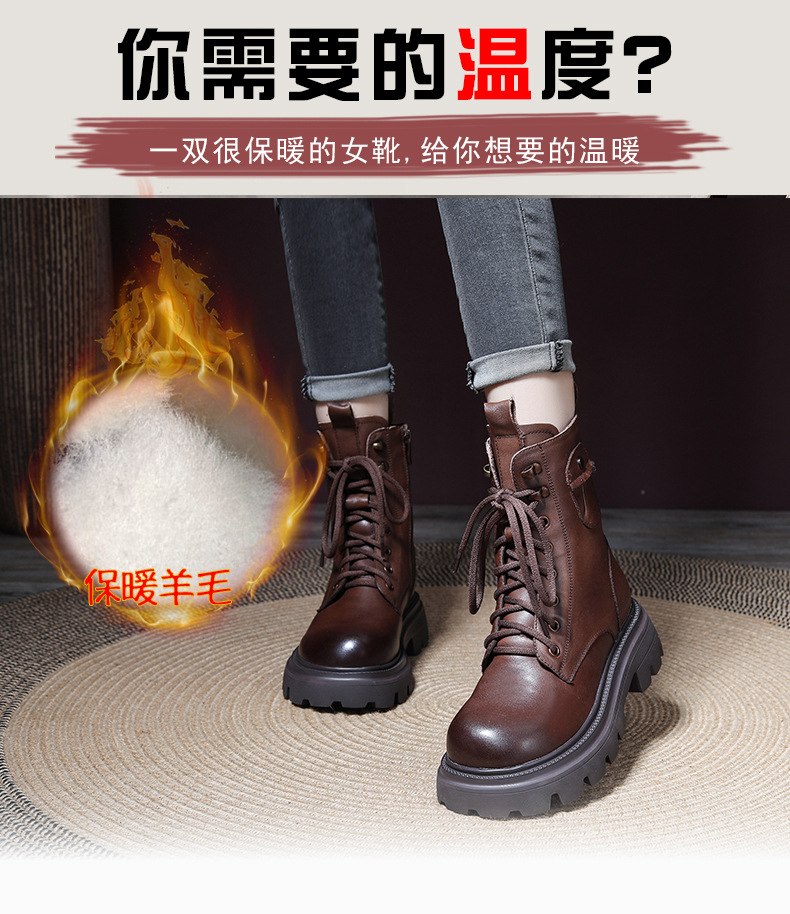Delphinium 가을 및 겨울 양모 부츠 헤드 레이어 Cowhide 캐주얼 영국식 마틴 부츠 두꺼운 싱글 미드 힐 따뜻한 발목 부츠스토어 가기