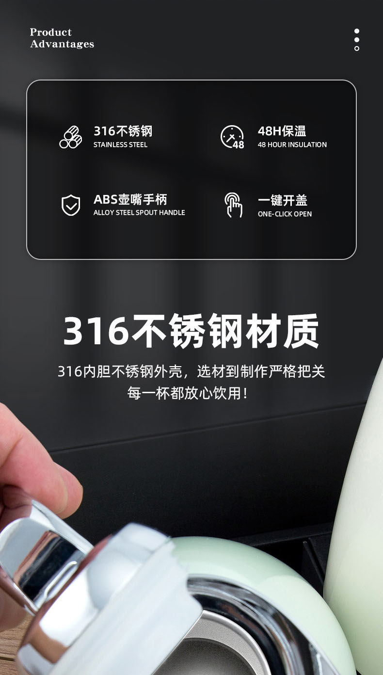 스테인레스 스틸 진공 보온병 대용량 커피 포트 가정용 온수 병 조림 주전자 보온병 뜨거운 물병 선물