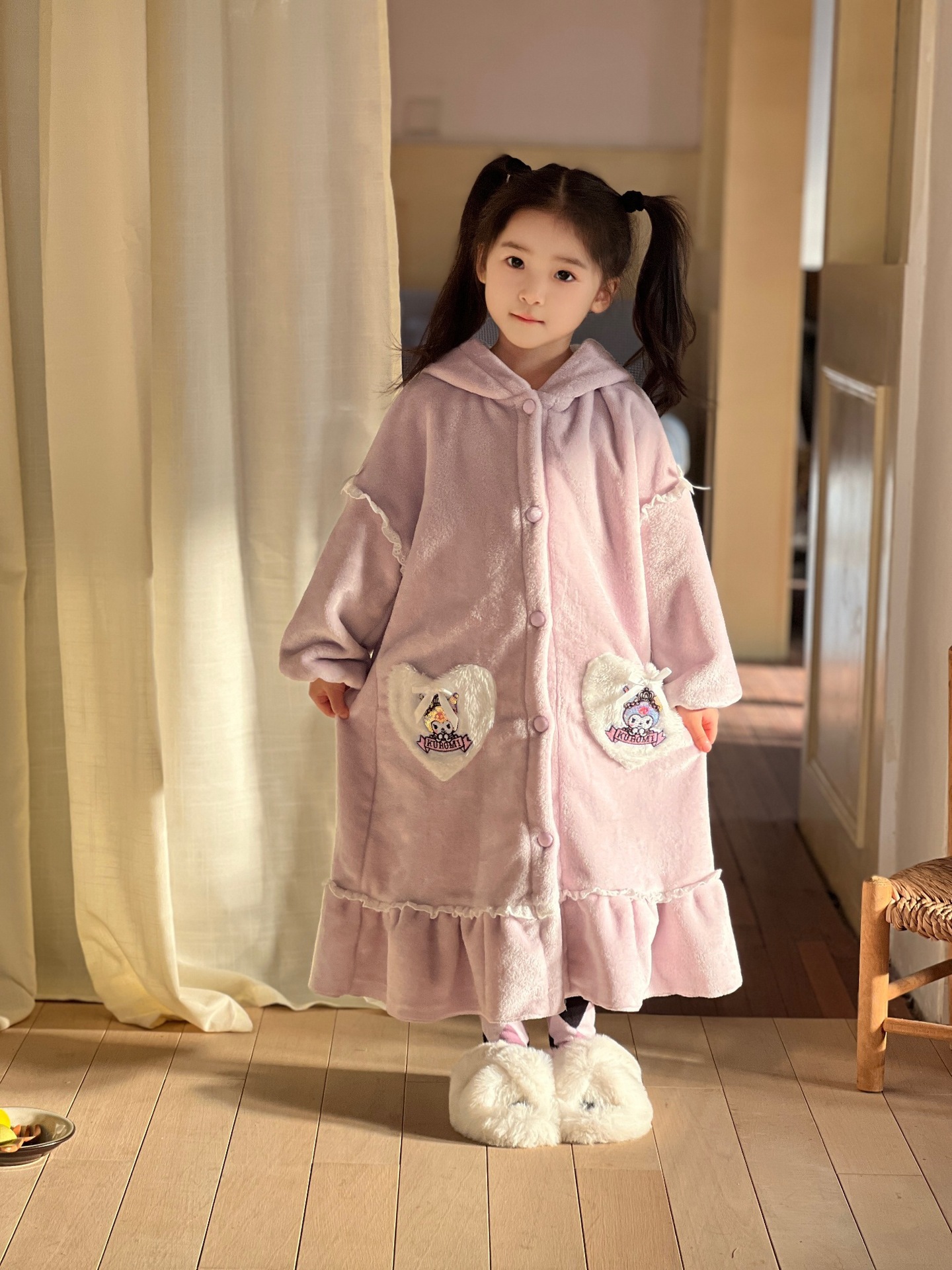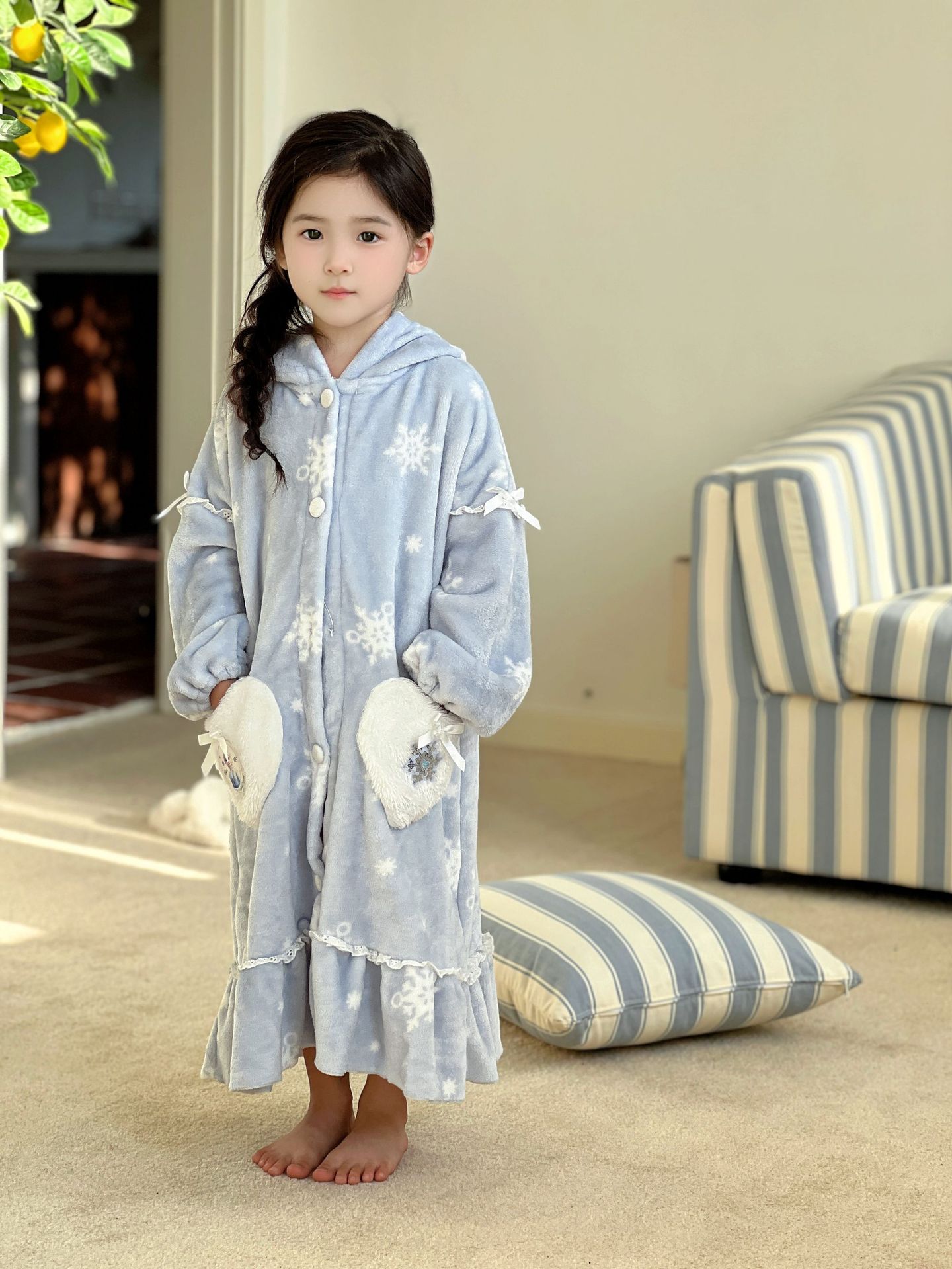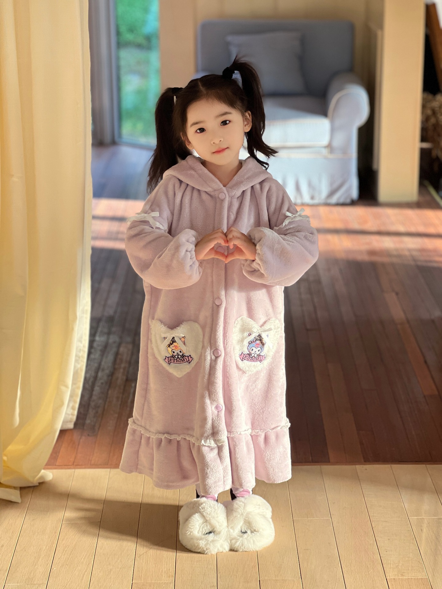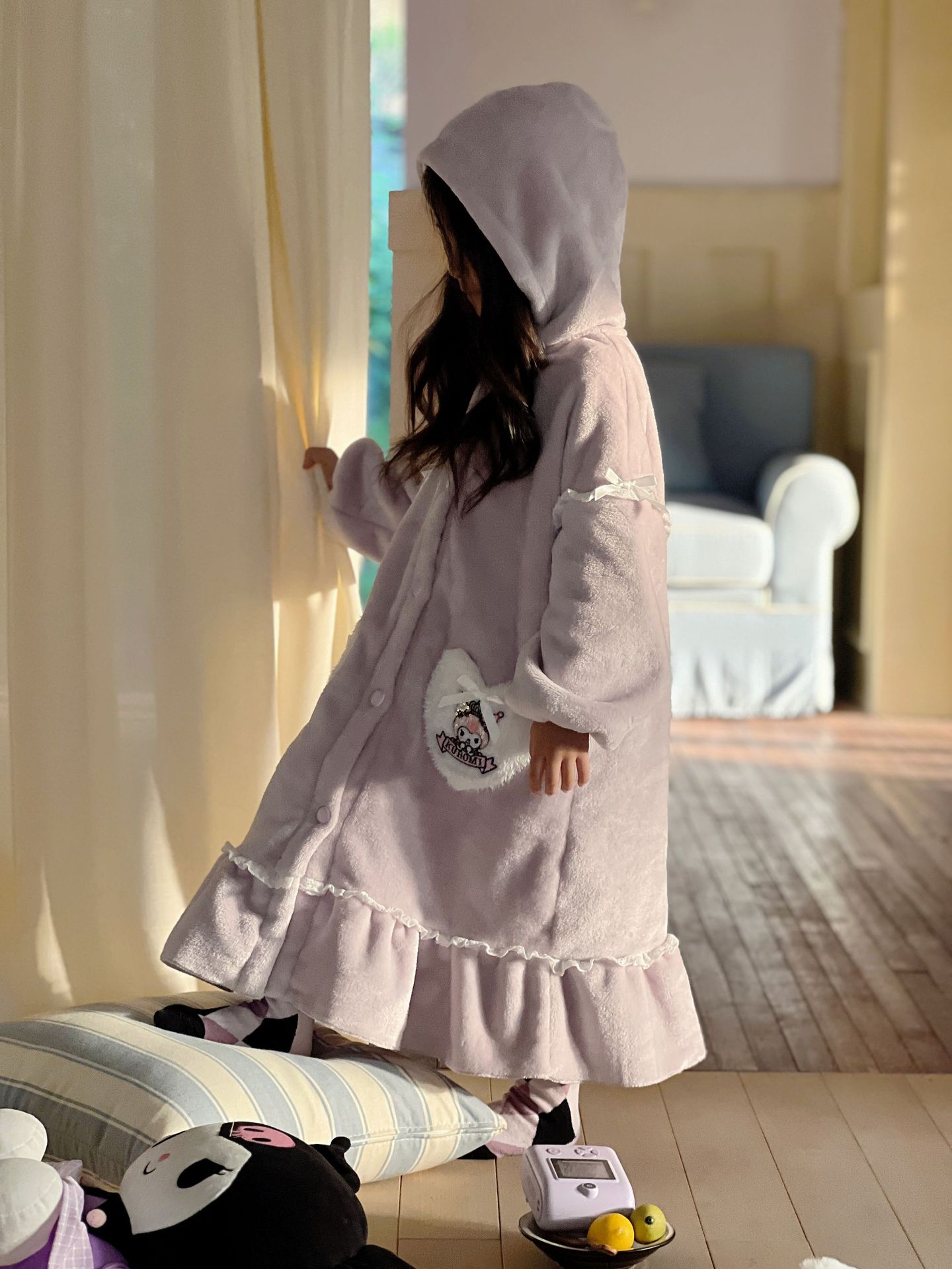 Kulomi Aisha 가을과 겨울 새로운 소녀 플란넬 산호 양털 홈 옷 잠옷 세트 잠옷 피부 친화적 인 따뜻한스토어 가기