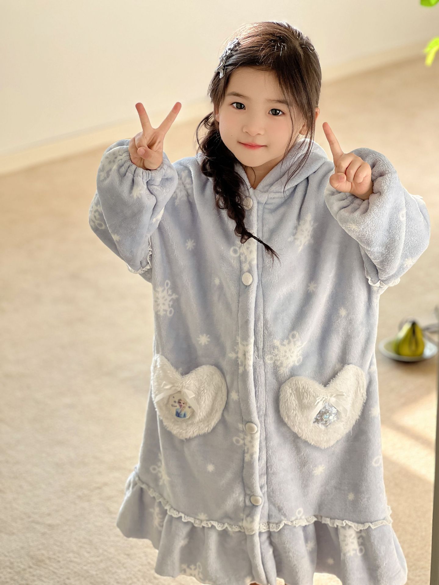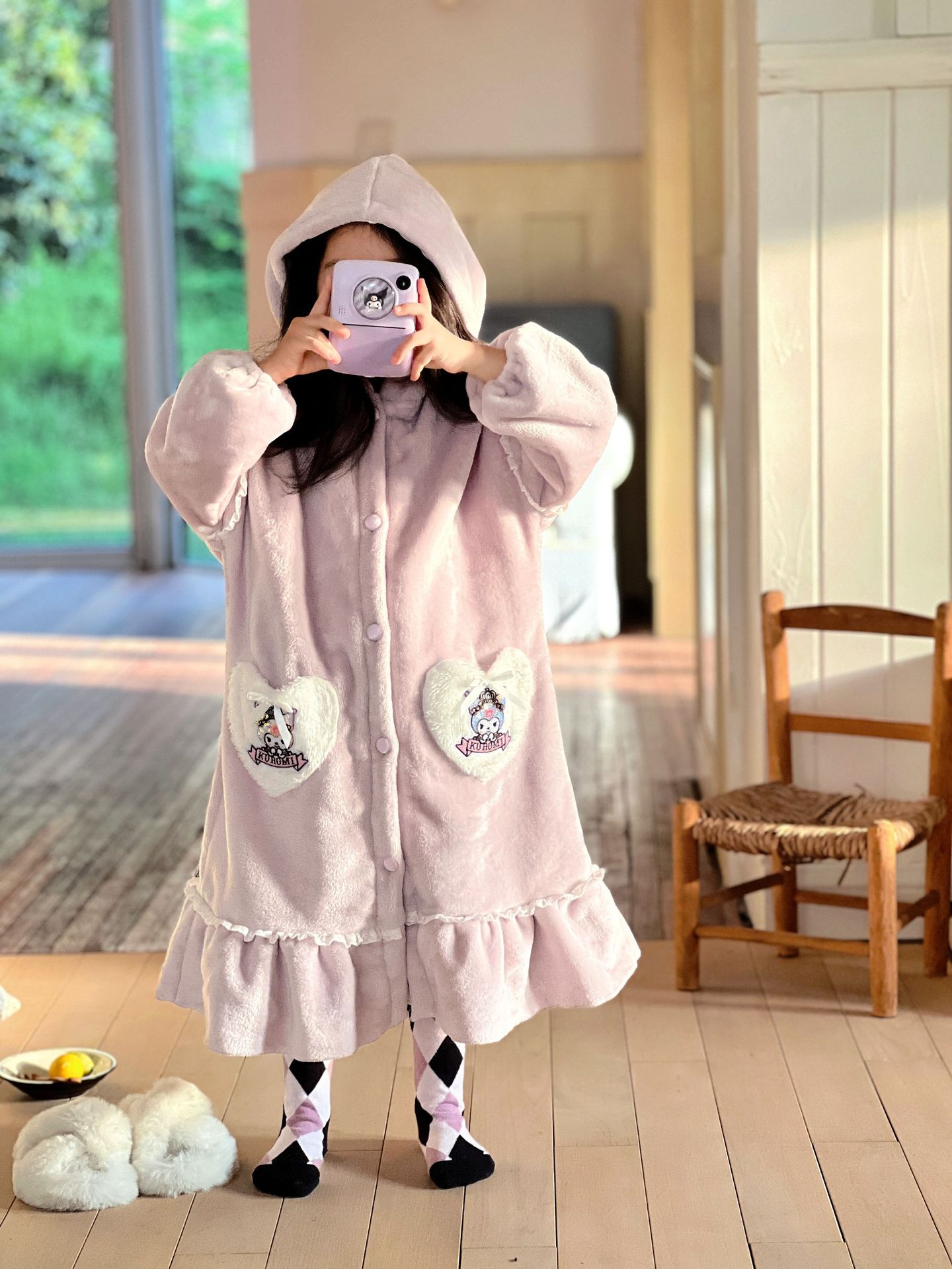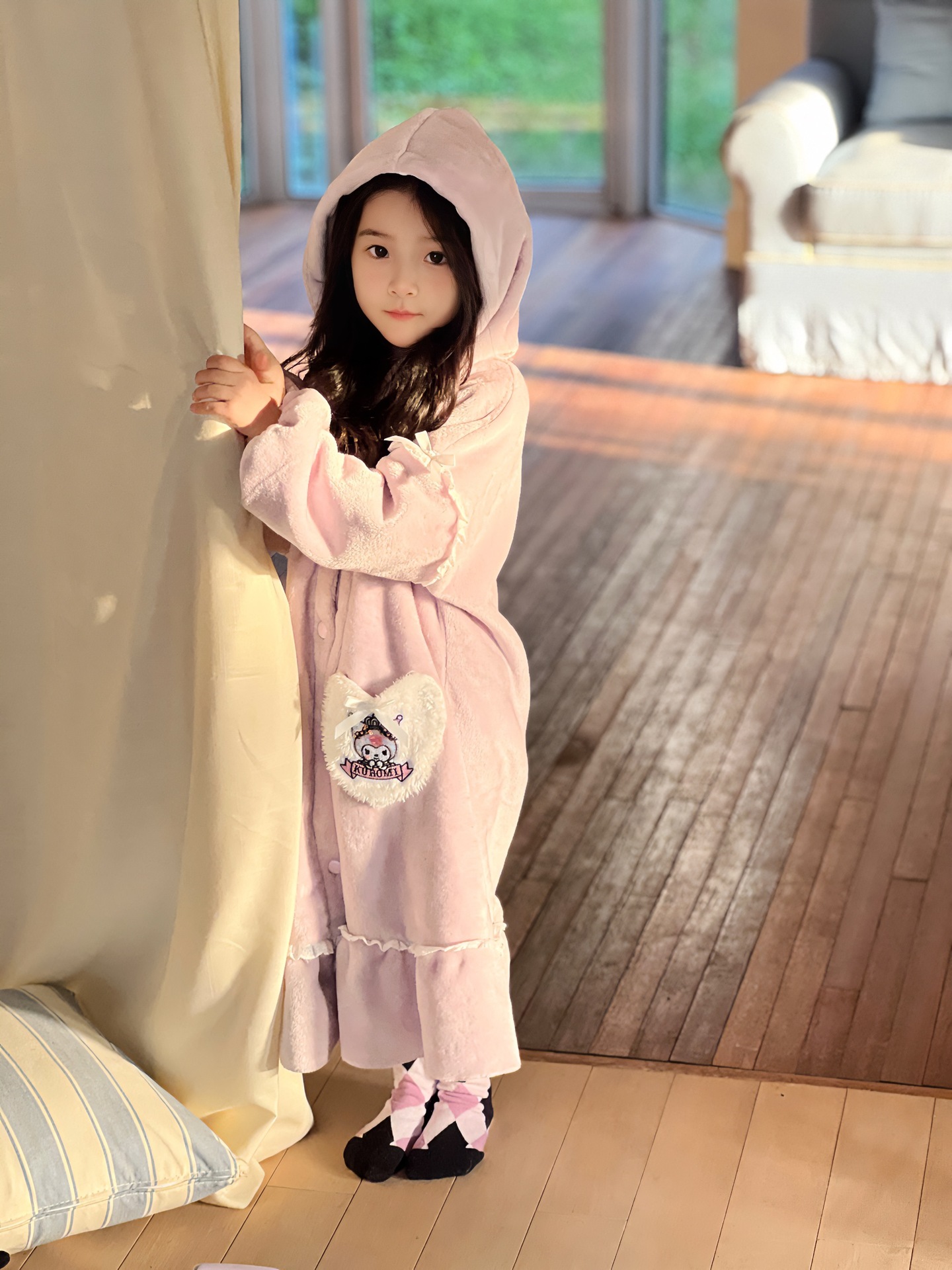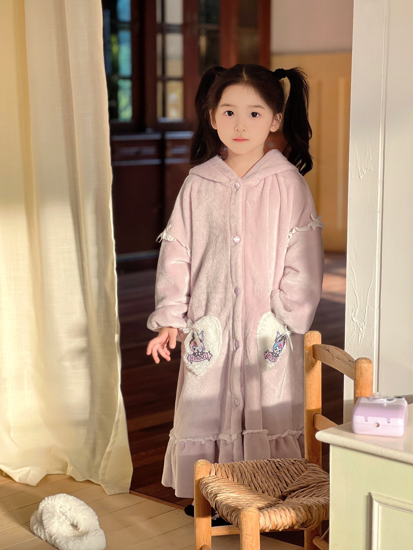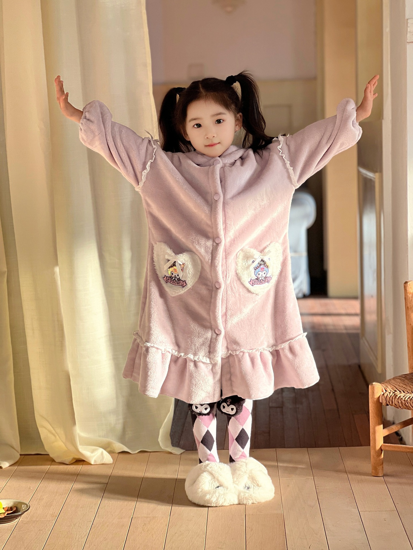 Kulomi Aisha 가을과 겨울 새로운 소녀 플란넬 산호 양털 홈 옷 잠옷 세트 잠옷 피부 친화적 인 따뜻한스토어 가기