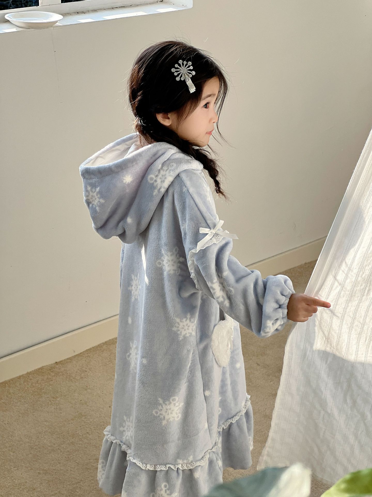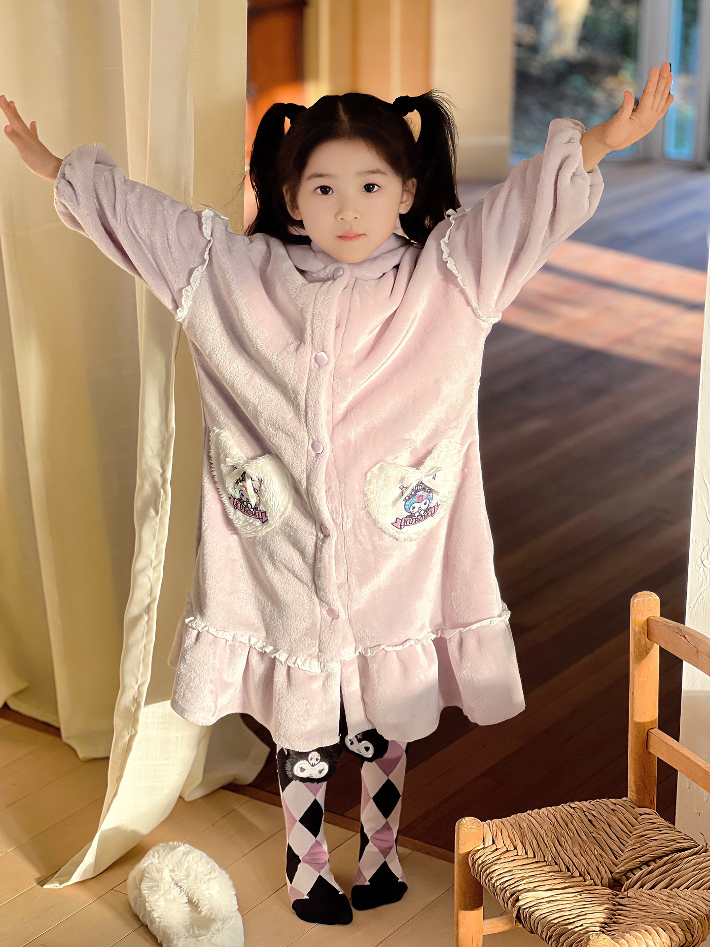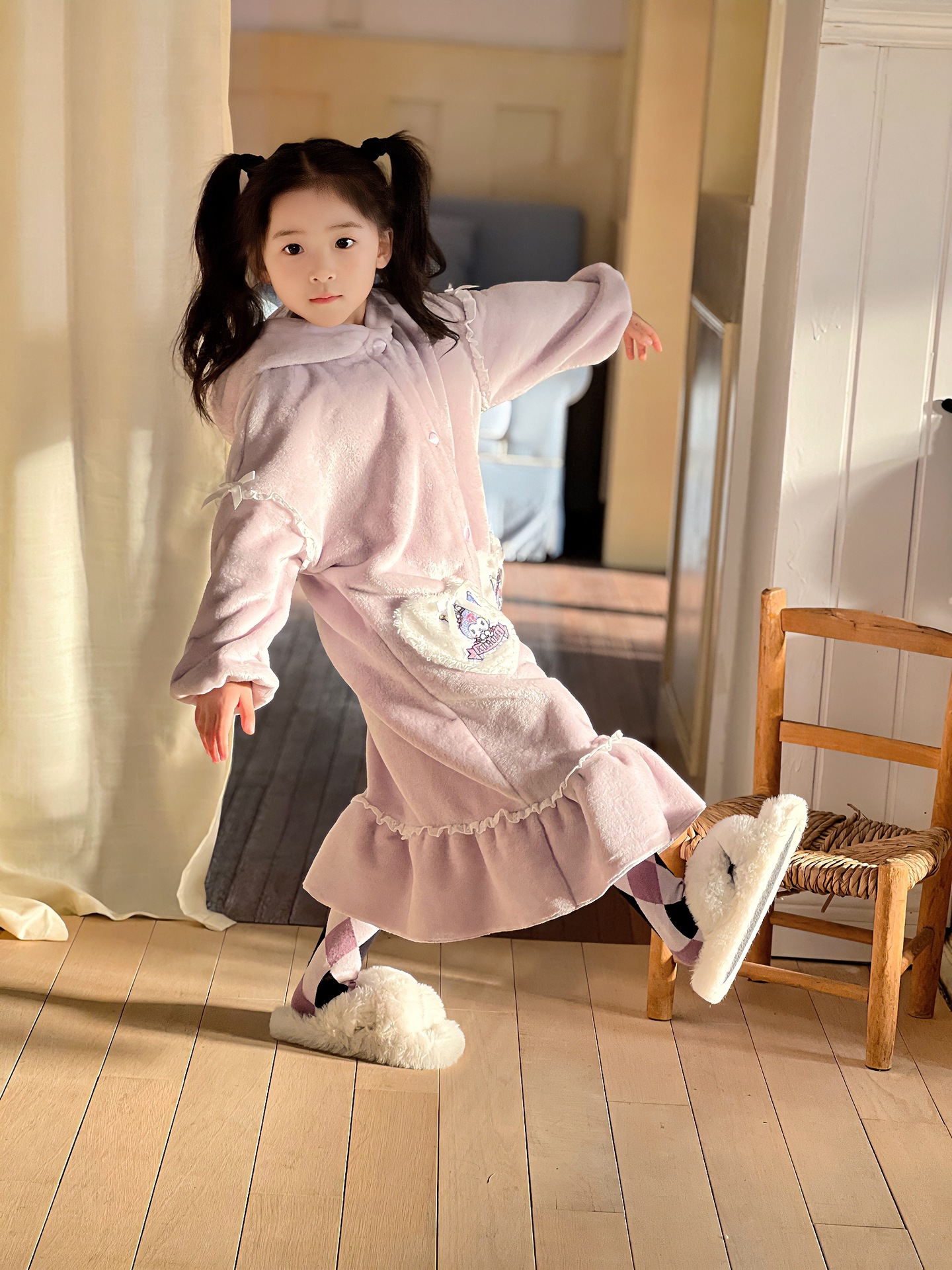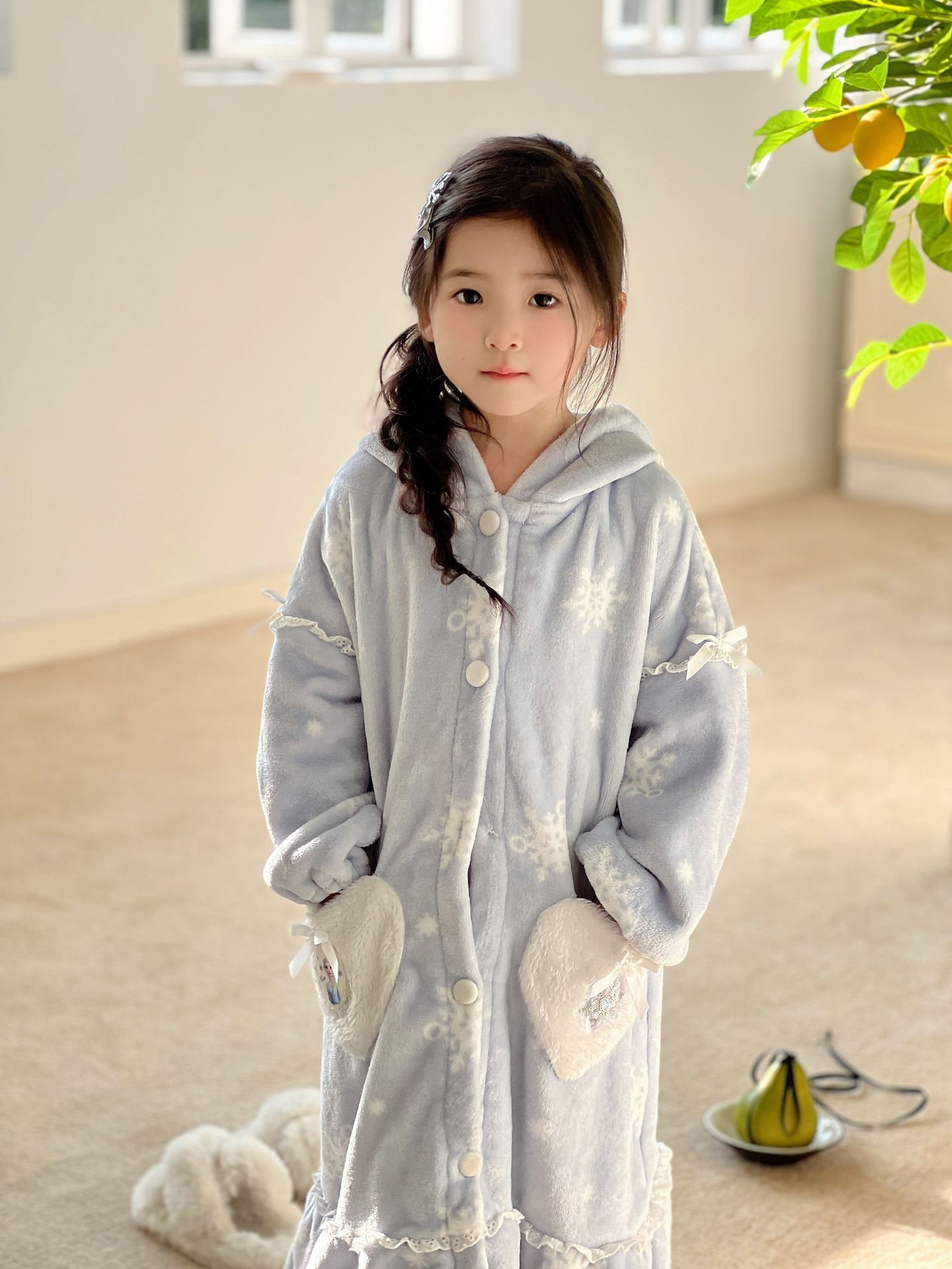Kulomi Aisha 가을과 겨울 새로운 소녀 플란넬 산호 양털 홈 옷 잠옷 세트 잠옷 피부 친화적 인 따뜻한스토어 가기