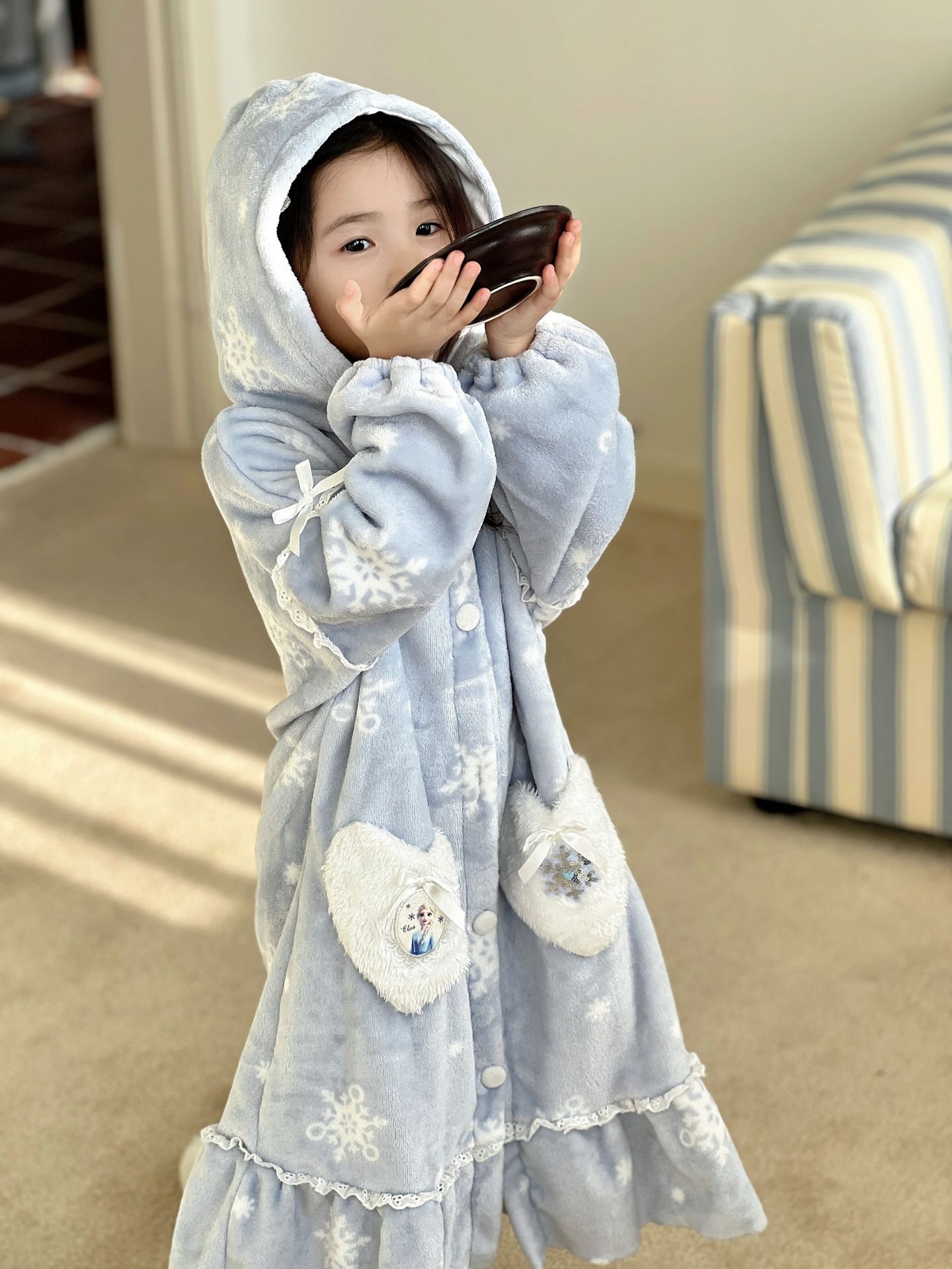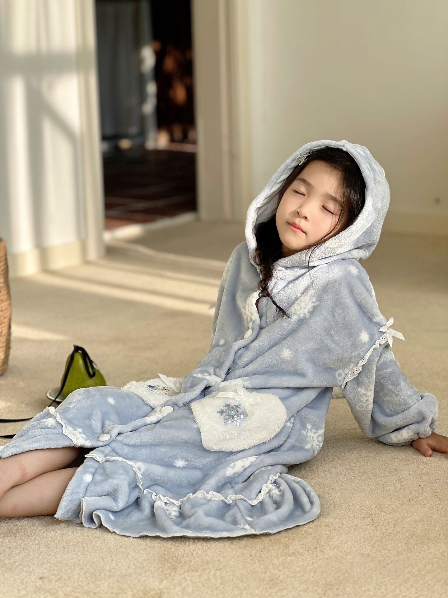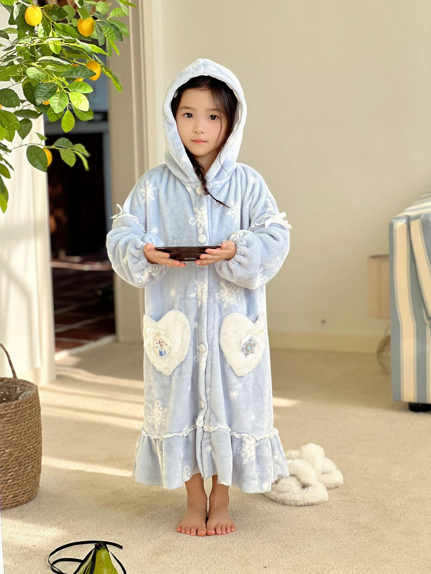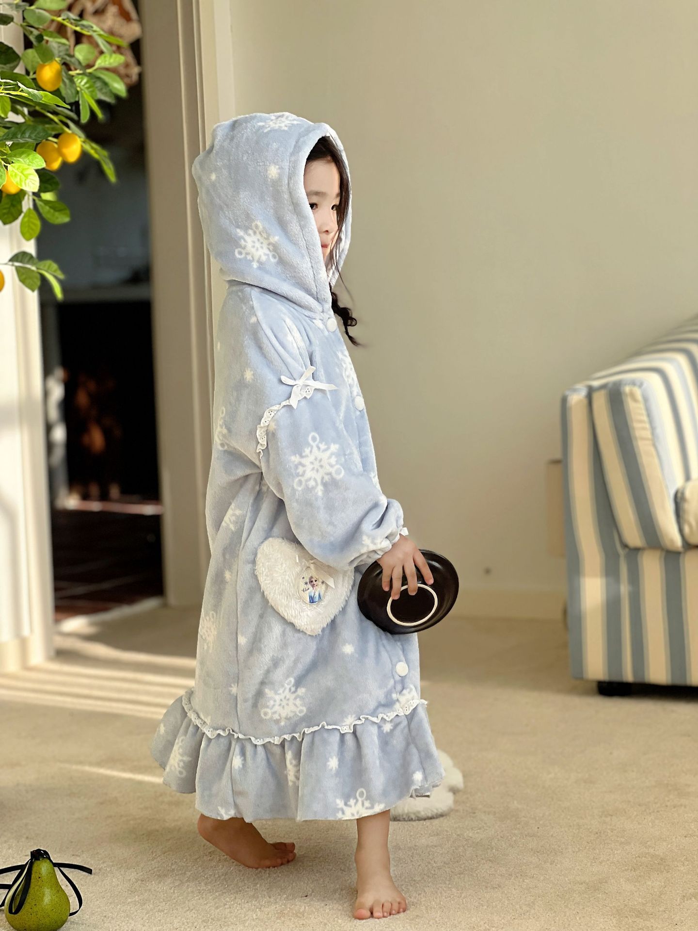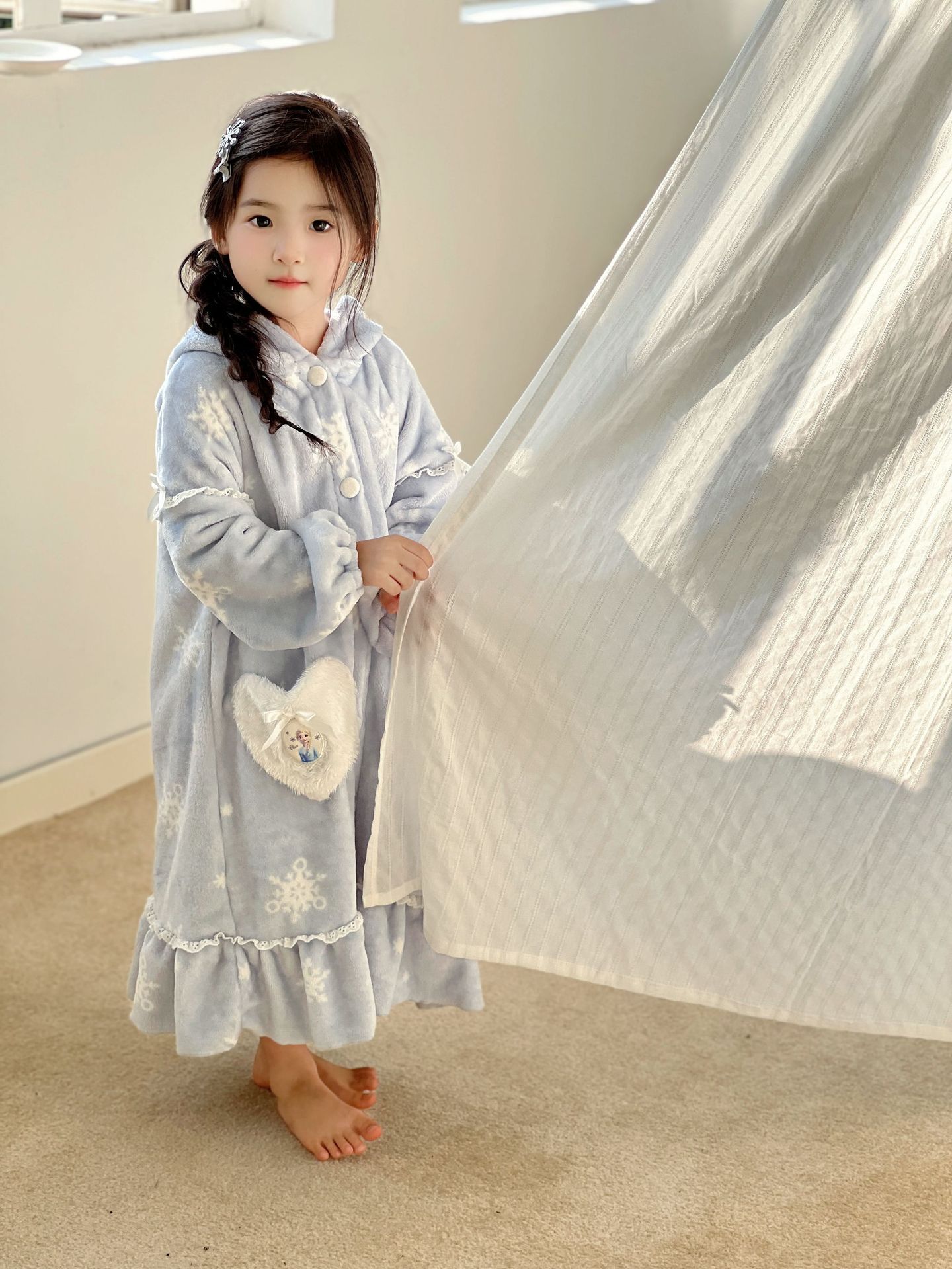 Kulomi Aisha 가을과 겨울 새로운 소녀 플란넬 산호 양털 홈 옷 잠옷 세트 잠옷 피부 친화적 인 따뜻한스토어 가기