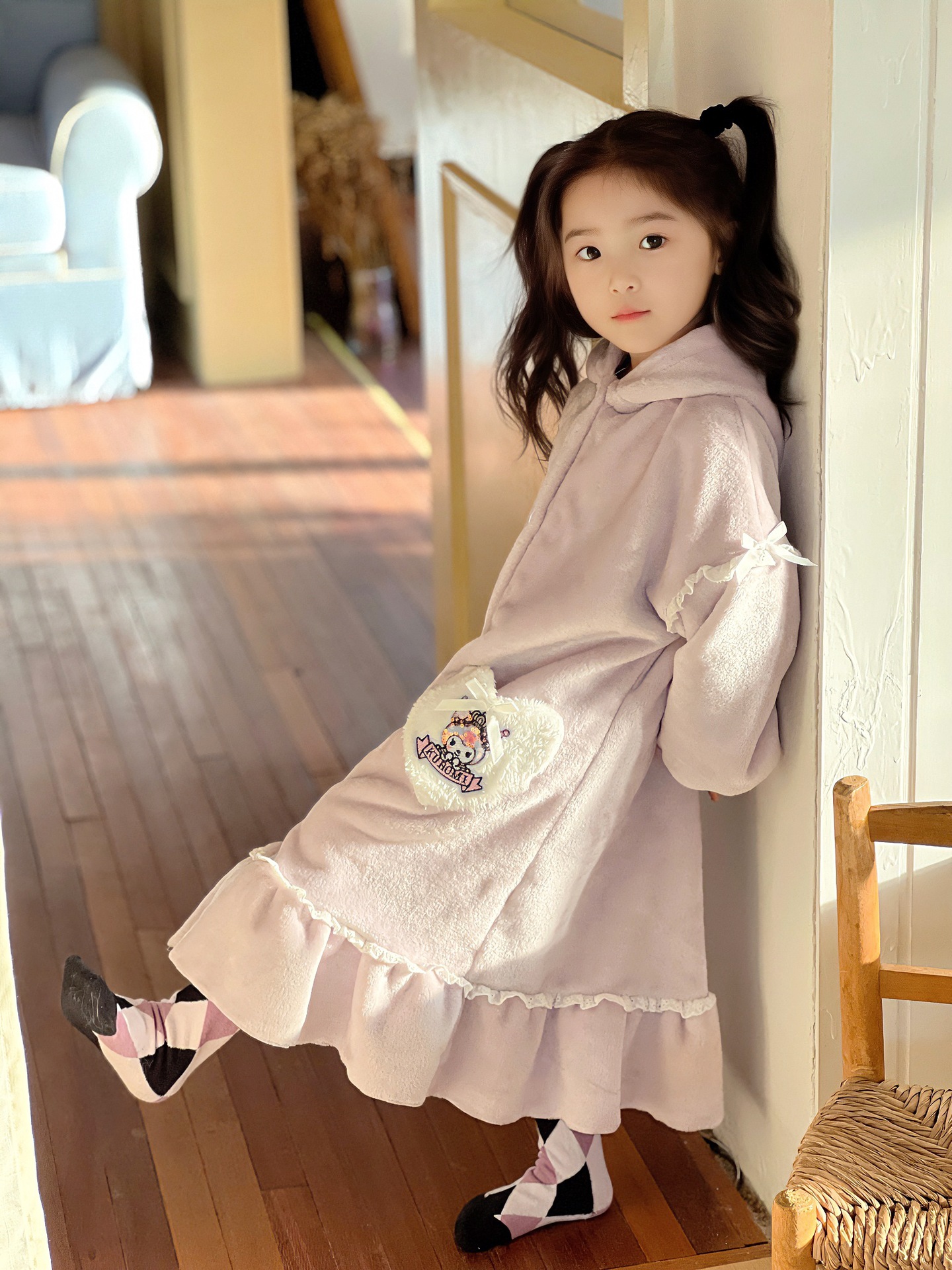 Kulomi Aisha 가을과 겨울 새로운 소녀 플란넬 산호 양털 홈 옷 잠옷 세트 잠옷 피부 친화적 인 따뜻한