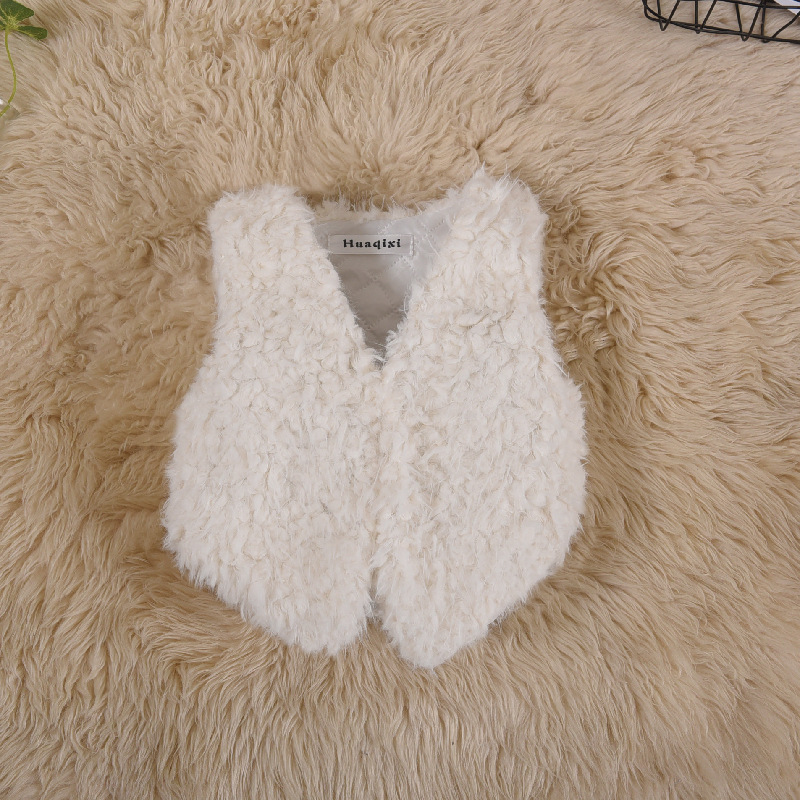 새로운 어린이 한국 소녀 조끼 2024 년 가을과 겨울 새로운 아우터 착용 어린이 겨울 양고기 양모 코트 웨스턴 스타일