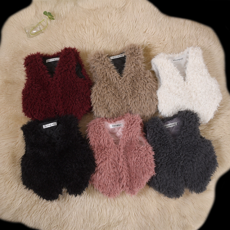 새로운 어린이 한국 소녀 조끼 2024 년 가을과 겨울 새로운 아우터 착용 어린이 겨울 양고기 양모 코트 웨스턴 스타일스토어 가기
