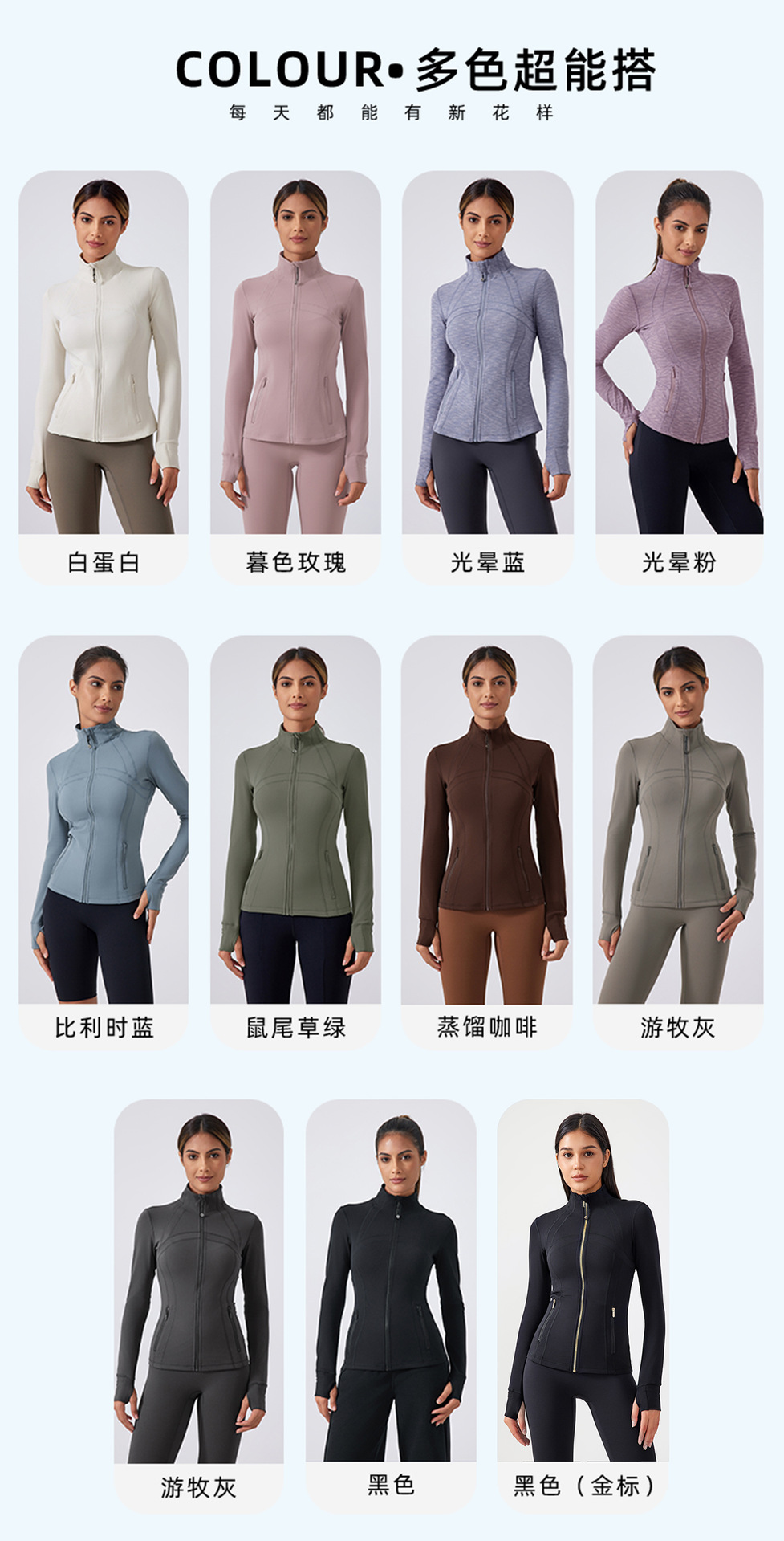 새로운 수직 칼라 지퍼 요가 옷 여성용 재킷 슬림 핏 슬림 핏 야외 달리기 스포츠 피트니스 재킷 DAW182