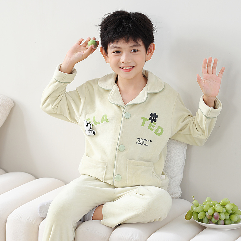 남아용 섬 벨벳 잠옷 세트 가을 겨울 신상 중대형 어린이 얇은 벨벳 홈웨어 아동용 플란넬 투피스 세트