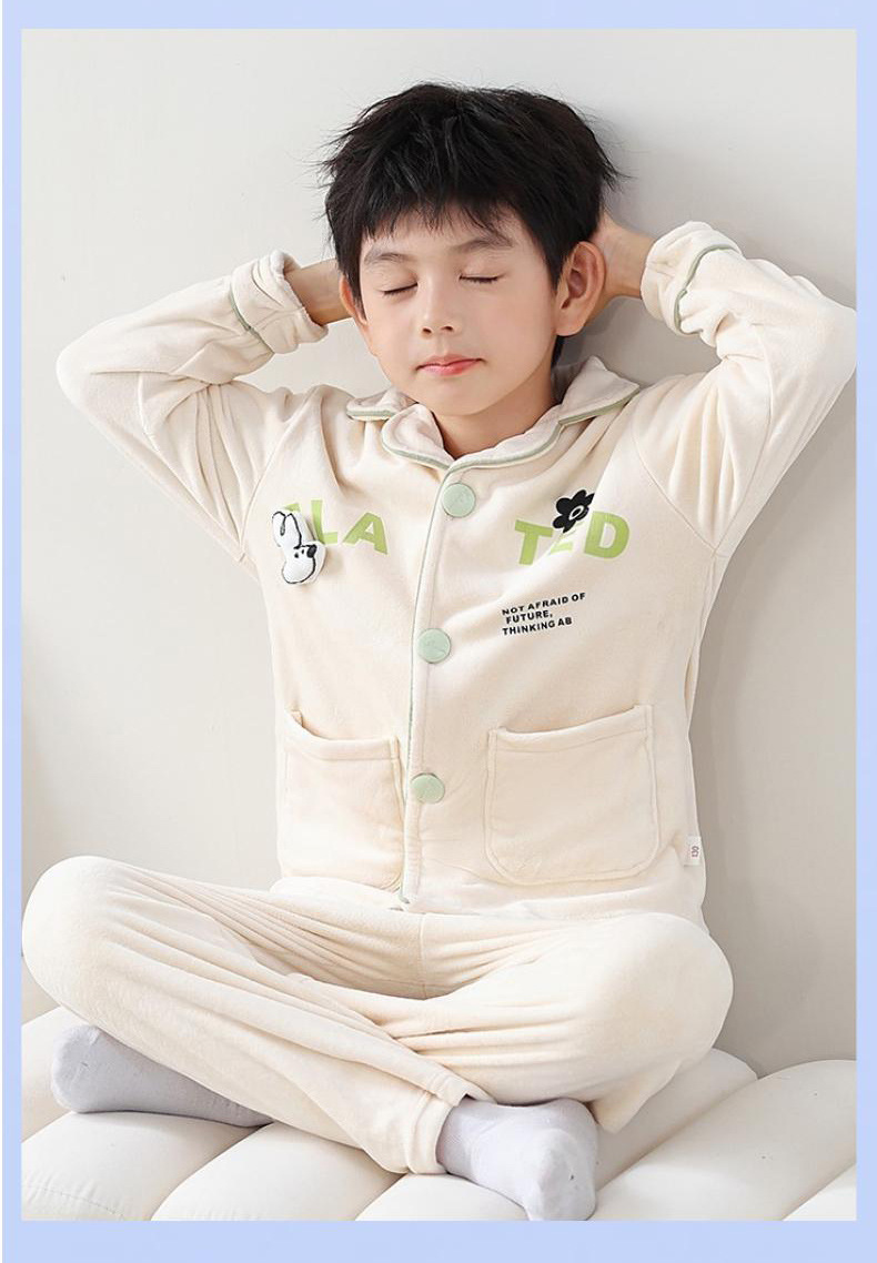 남아용 섬 벨벳 잠옷 세트 가을 겨울 신상 중대형 어린이 얇은 벨벳 홈웨어 아동용 플란넬 투피스 세트스토어 가기