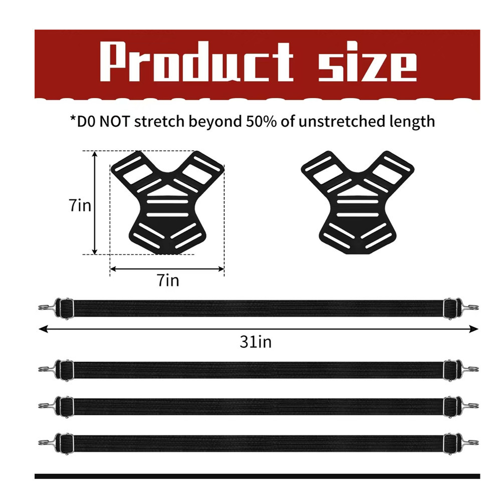후크 조절 가능한 넥타이 탄성 로프 번지 벨트 자전거 랙 고정 벨트가있는 4 방향 평면 탄성 로프