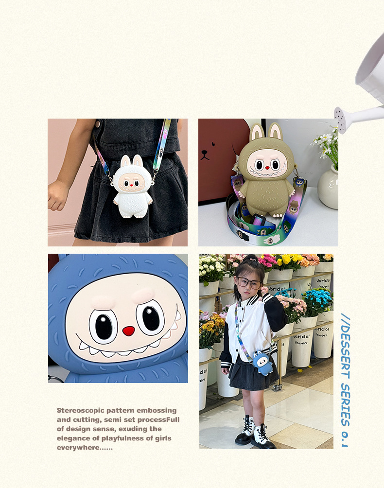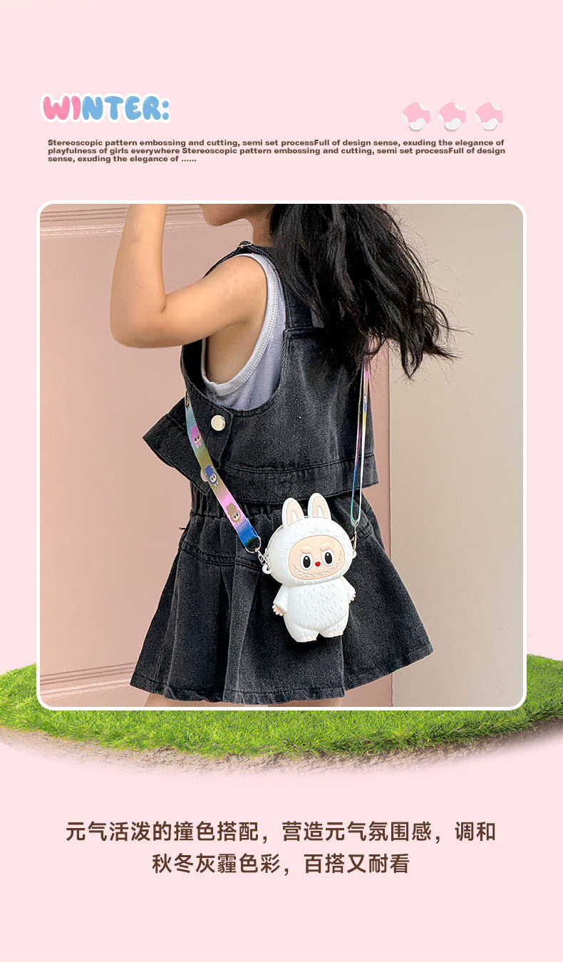 버블마트 라부부 만화 실리콘 가방 어린이 크로스백 동전 지갑 남녀 공용 동전 보관 가방스토어 가기