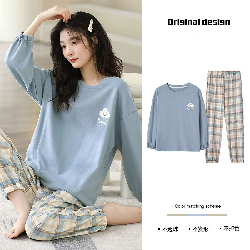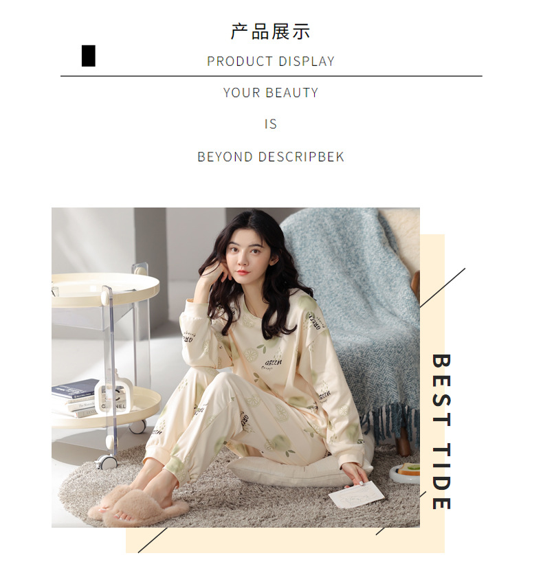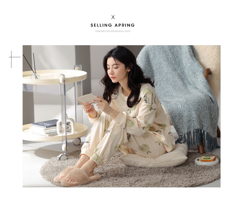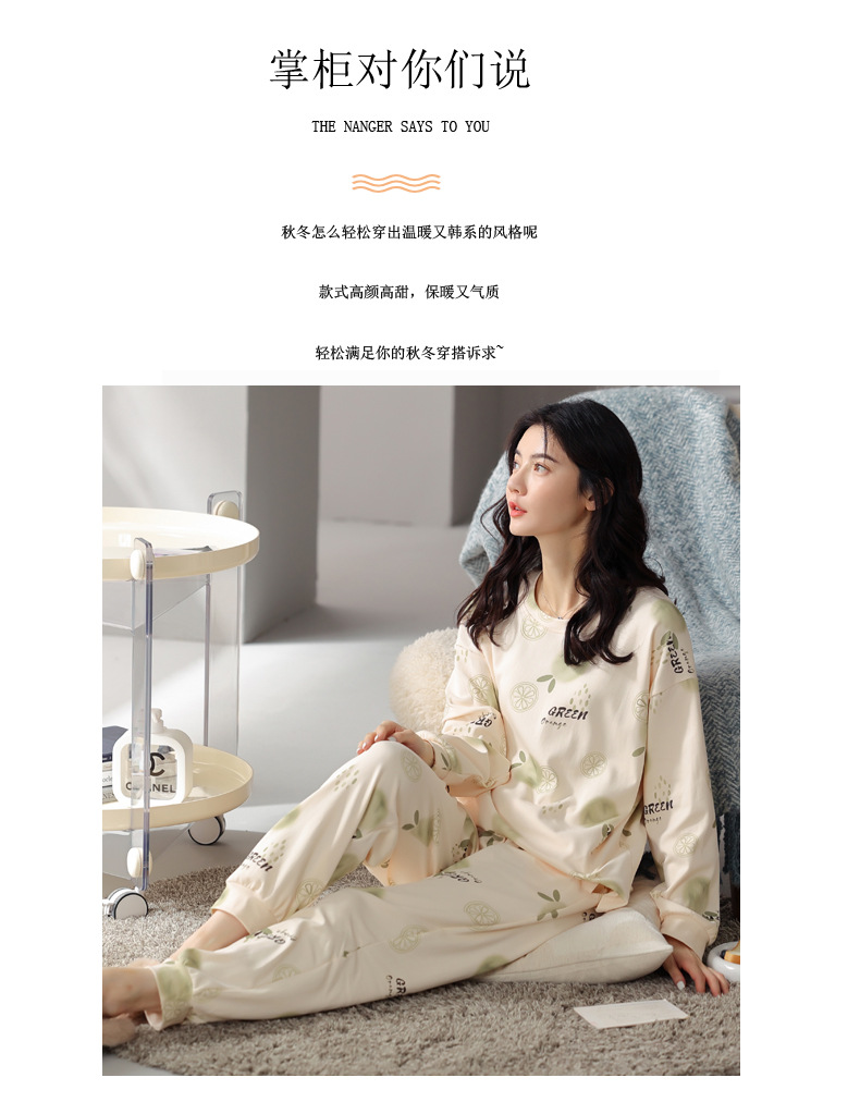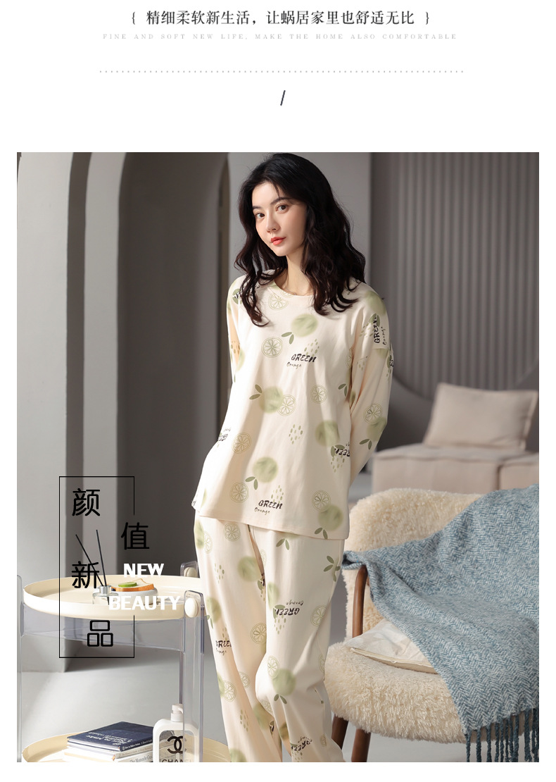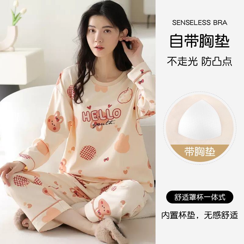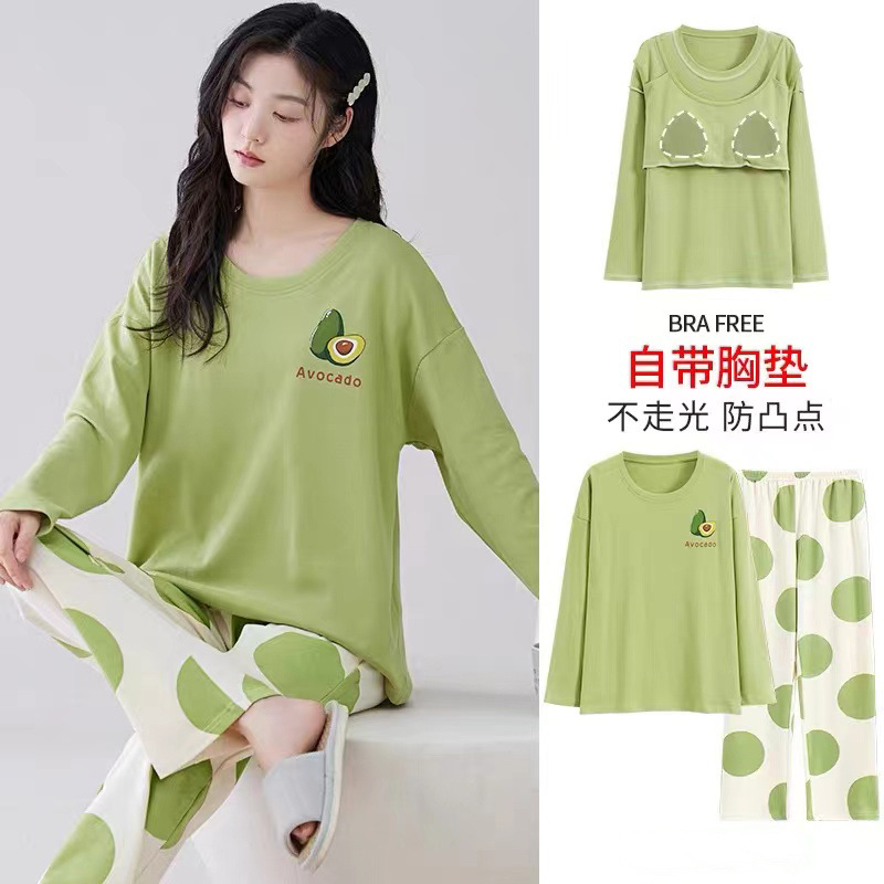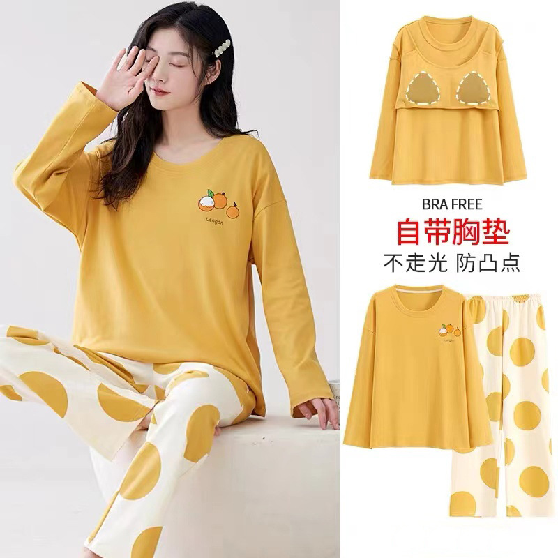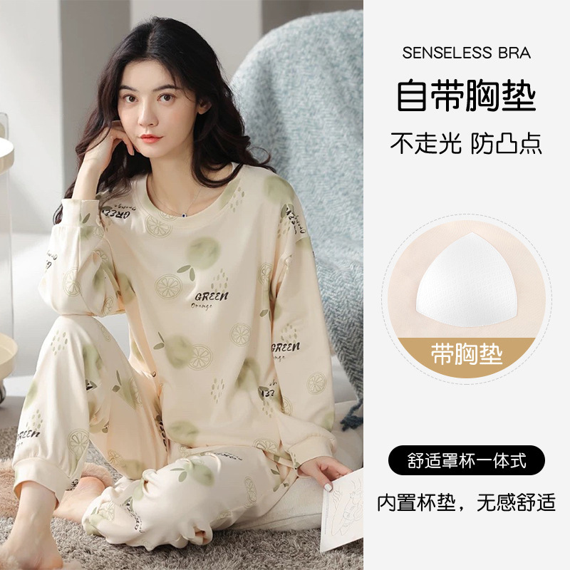 파자마 여성의 봄과 가을 외부 가정 옷을 입고 2024 플러스 사이즈 가슴 패드 긴 소매 바지 세트 새로운 스타일스토어 가기