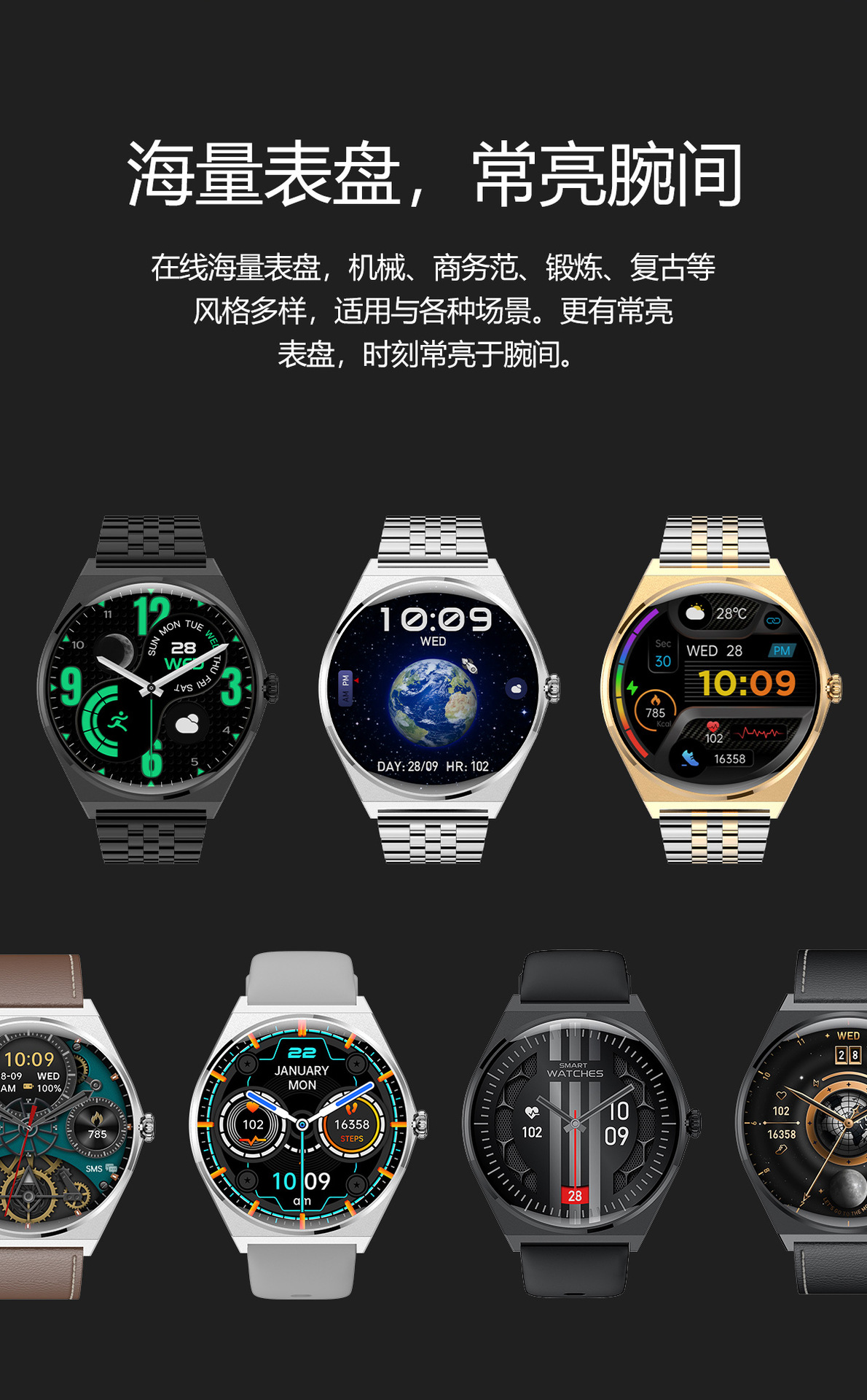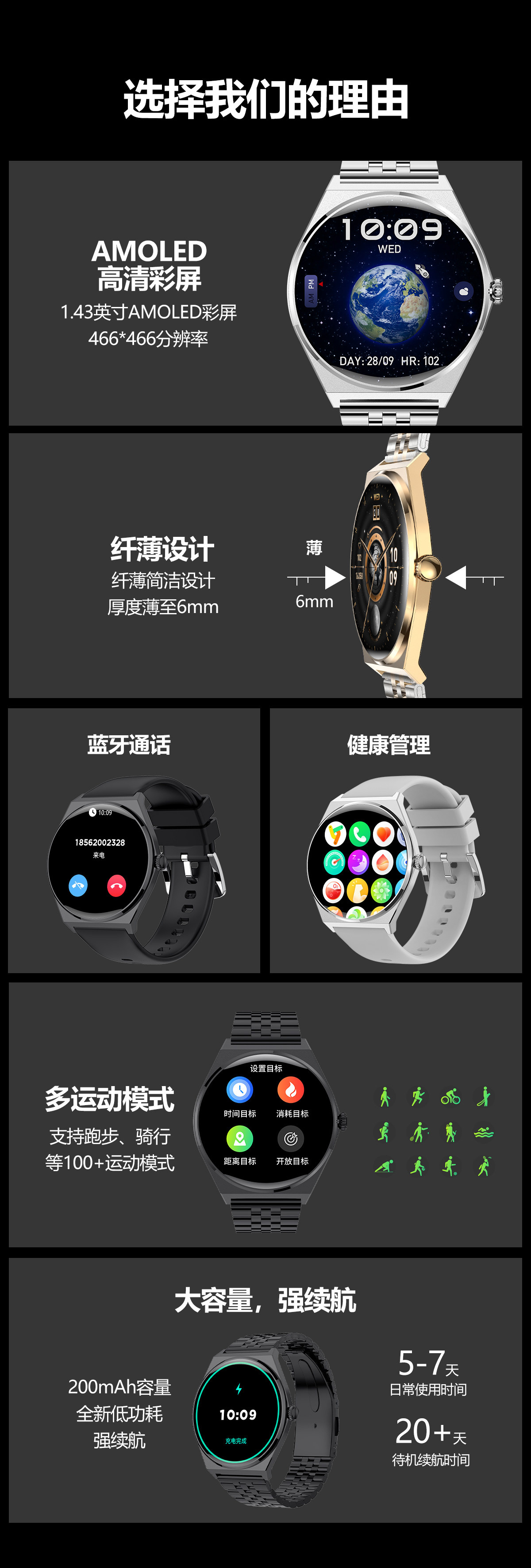 국경 간 새로운 MT56 스마트 시계 슬림 1.43AMOLED HD 화면 블루투스 IP68 깊이 방수 호출스토어 가기