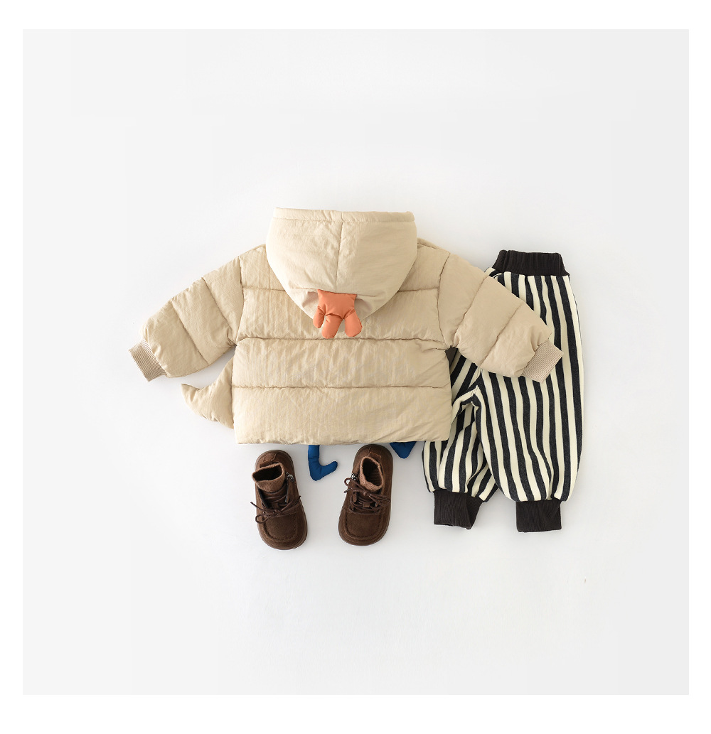 儿童冬装棉衣新款宝宝防风连帽卡通小恐龙棉服婴儿加厚外套50011