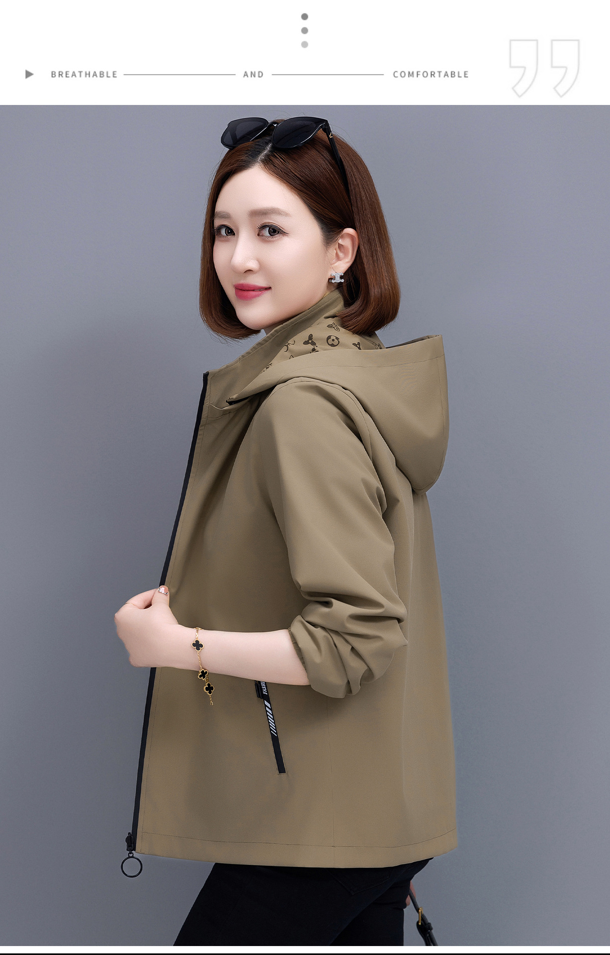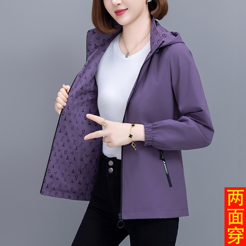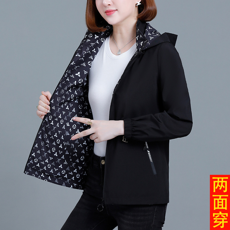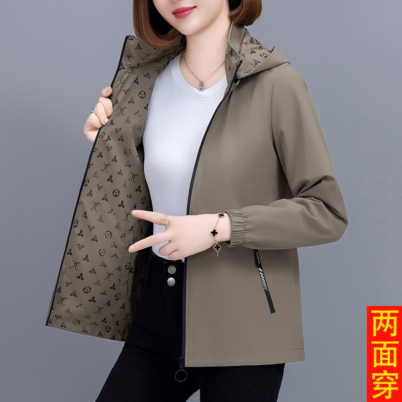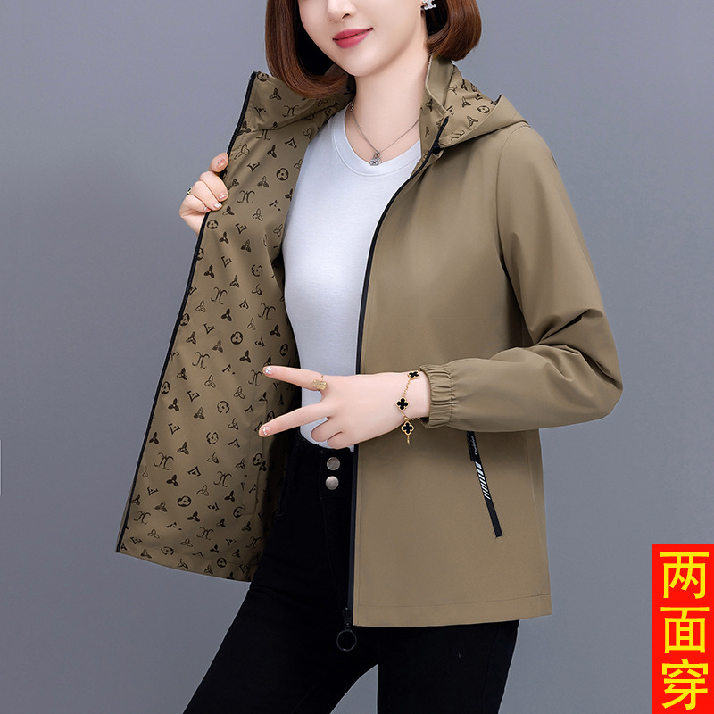 중년 어머니를위한 양면 재킷 여성 쇼트 2024 가을 새로운 패션 캐주얼 느슨한 올 매치 재킷 탑스토어 가기