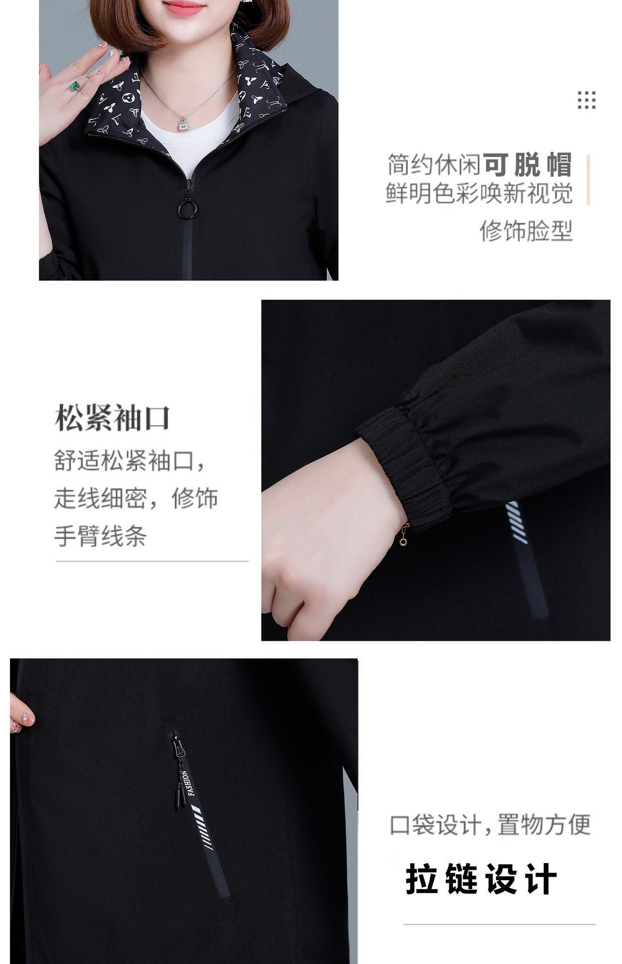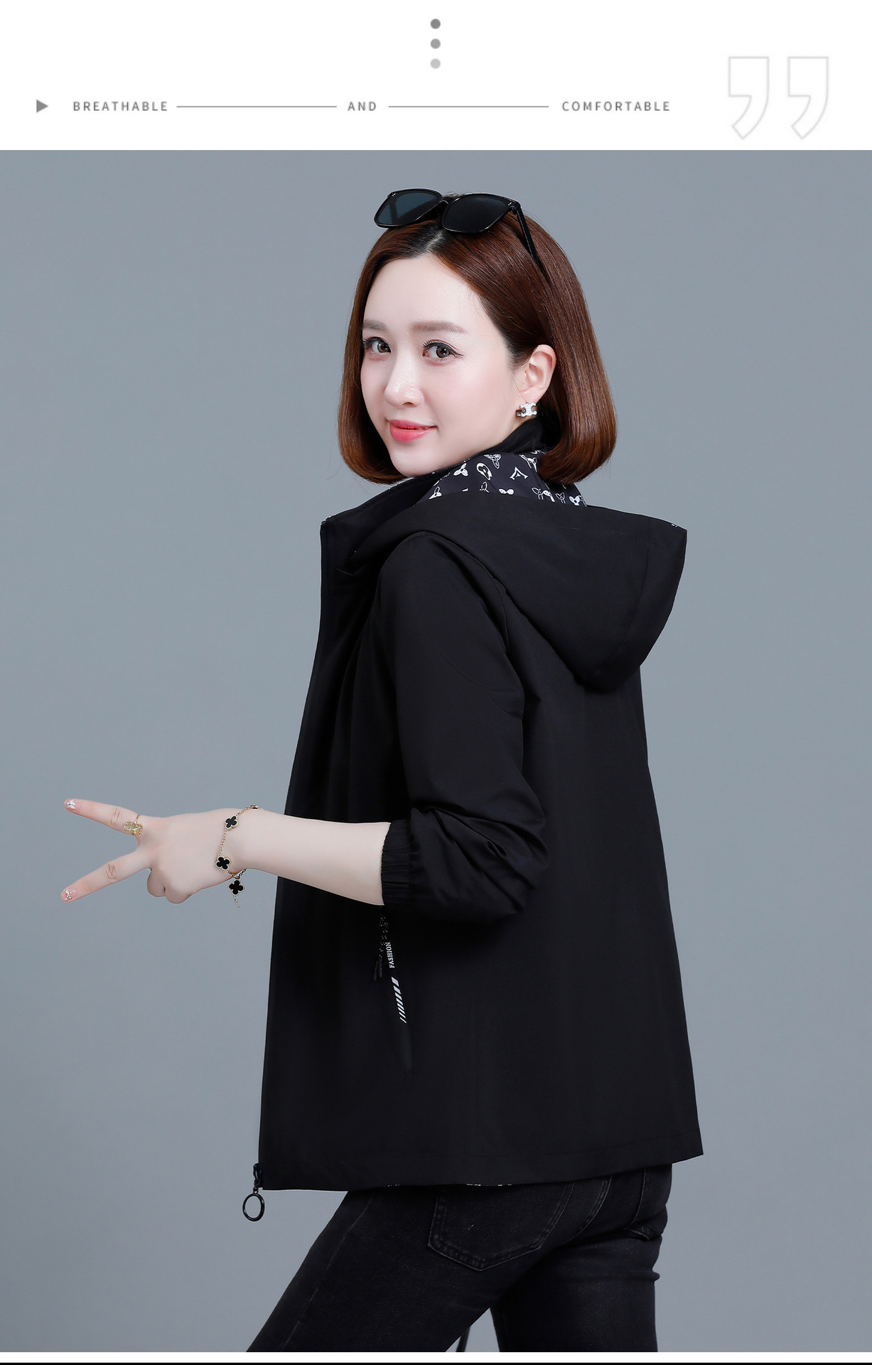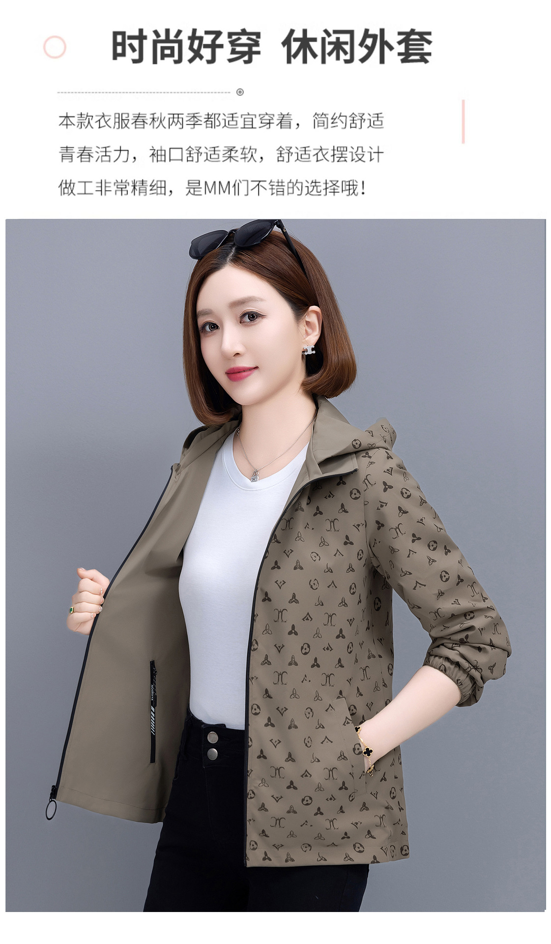 중년 어머니를위한 양면 재킷 여성 쇼트 2024 가을 새로운 패션 캐주얼 느슨한 올 매치 재킷 탑