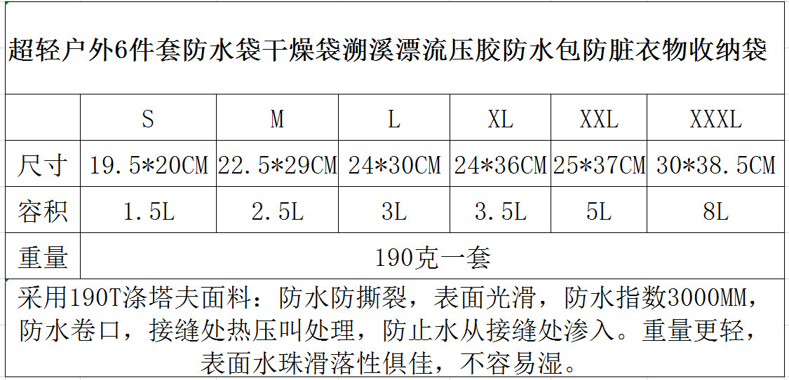 다기능 경량 야외 래프팅 6종 세트 방수 가방 수납 가방 정리 건조용품 도매