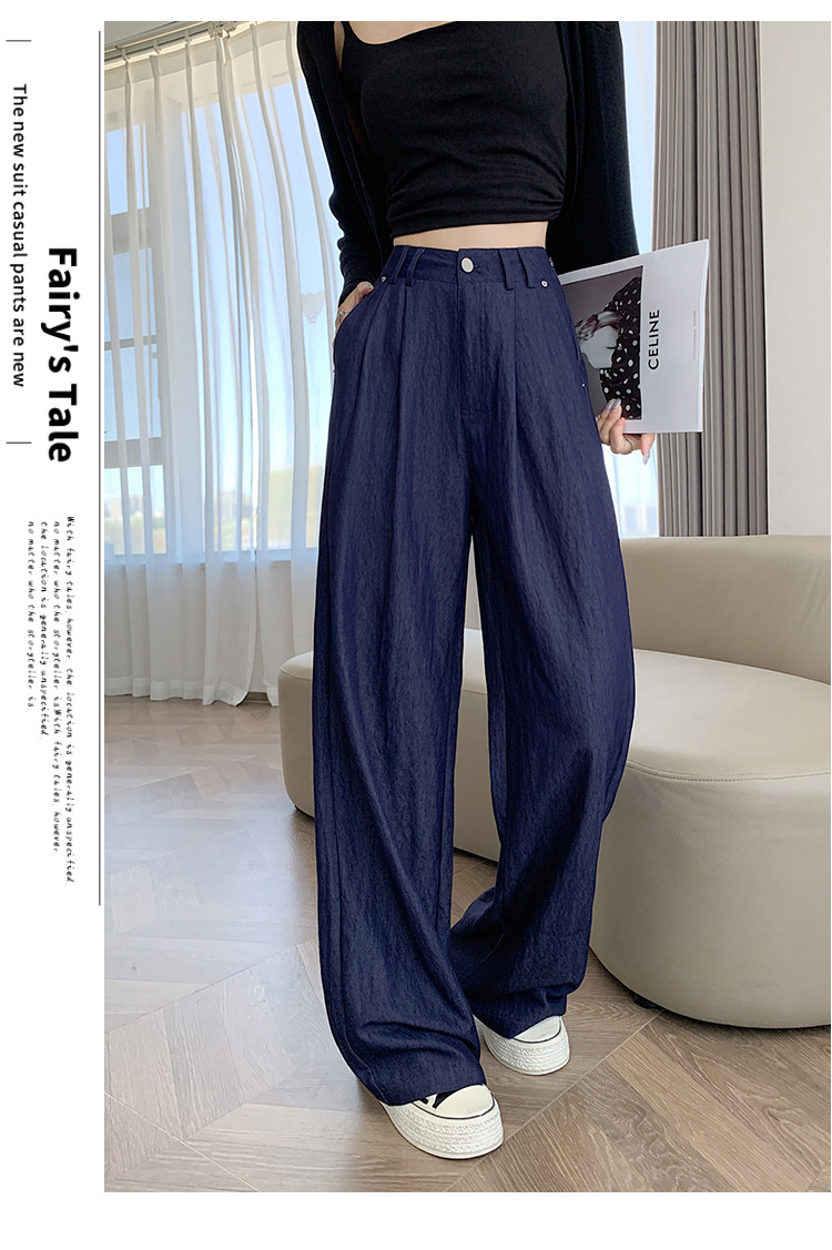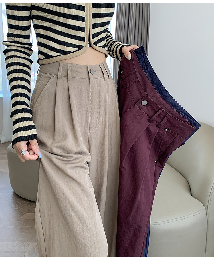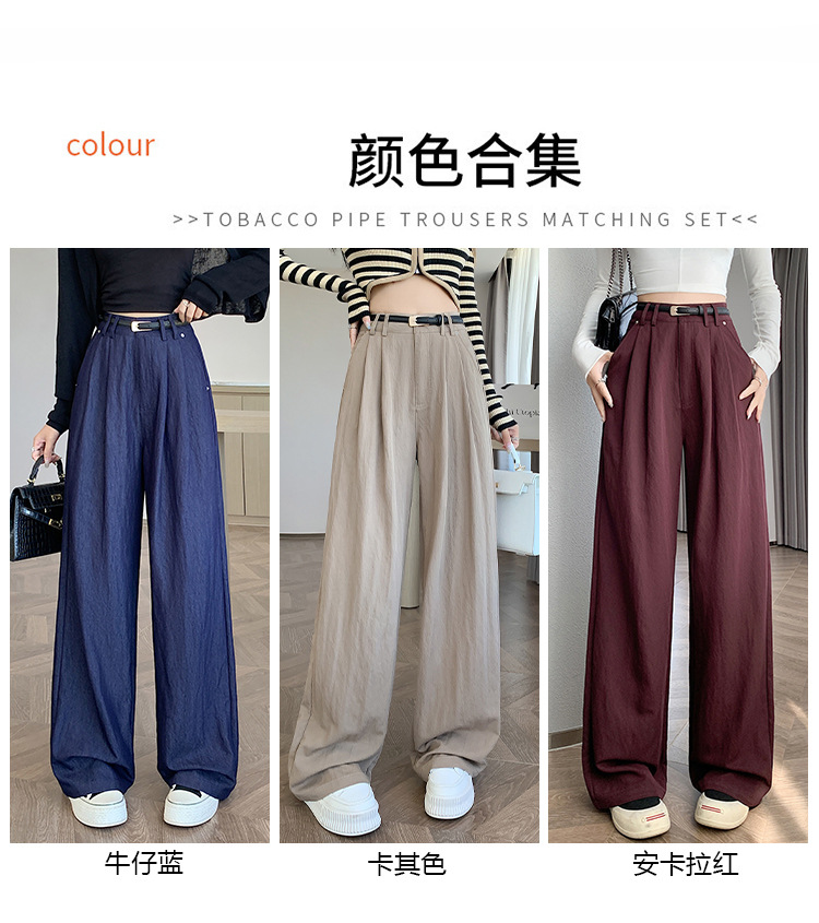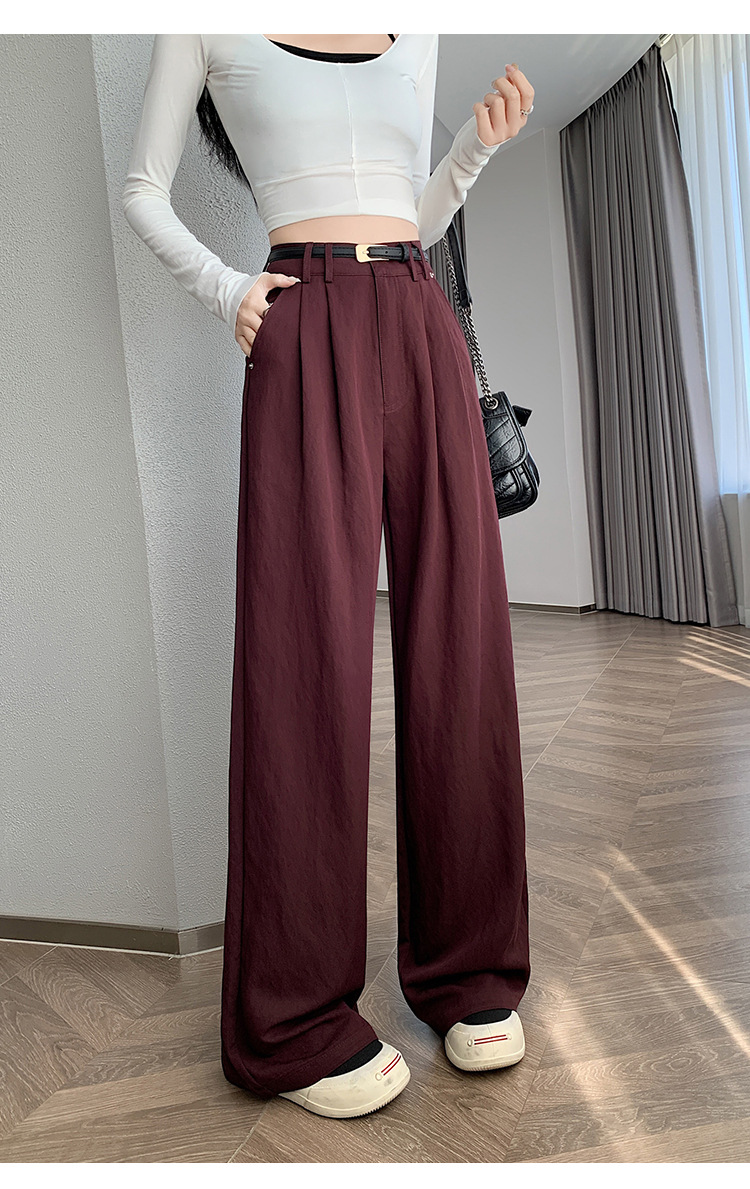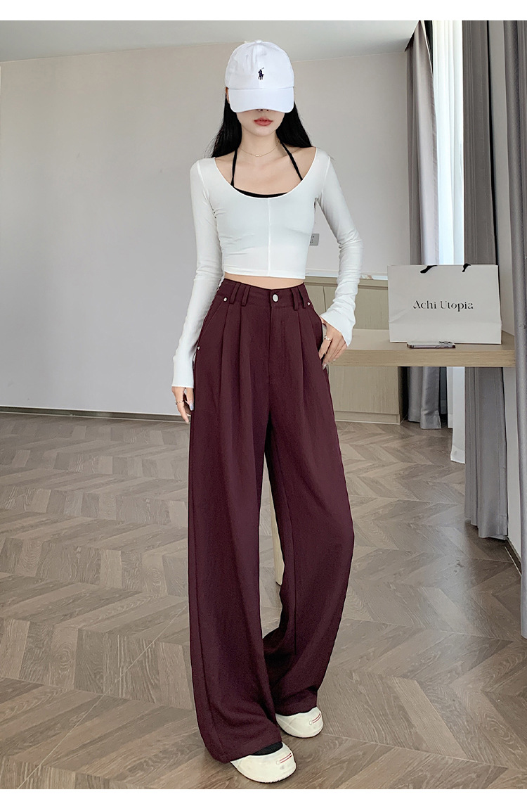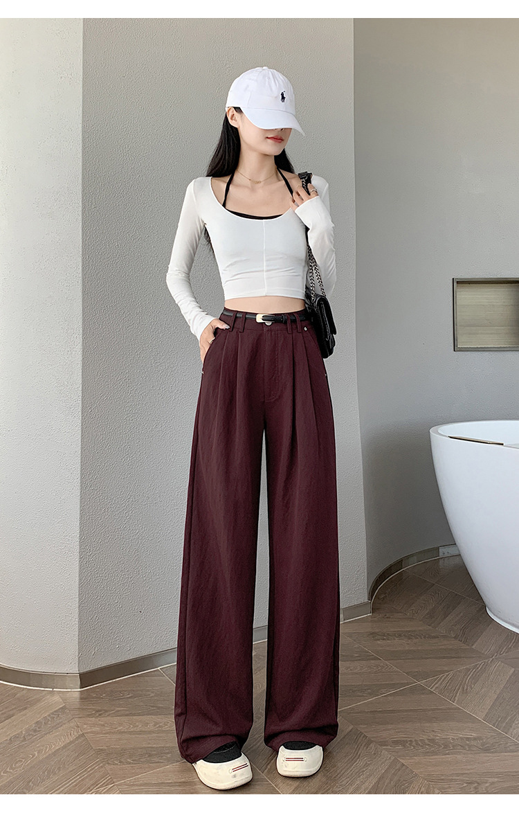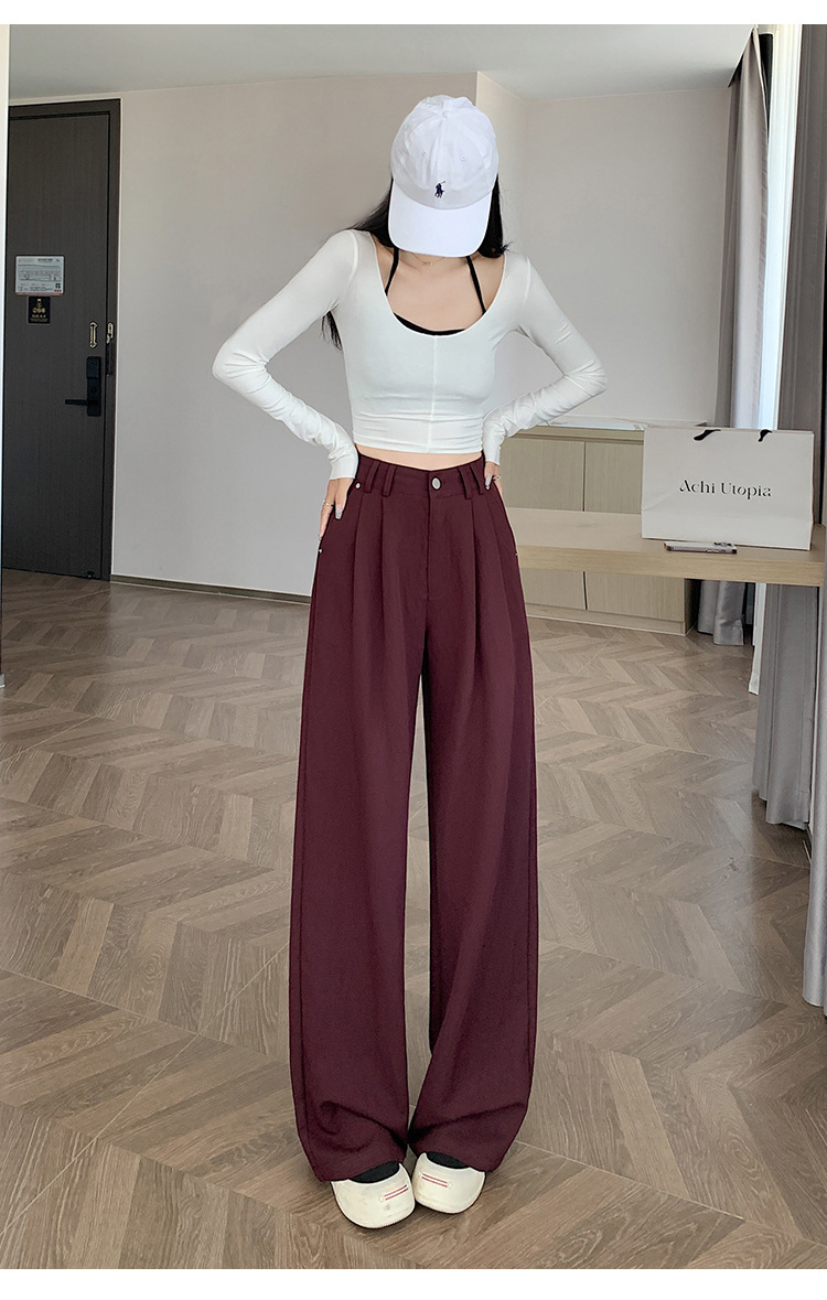 레드 하이 엔드 센스 좁은 스타일 와이드 레그 세트 바지 여성용 가을 새로운 하이 웨이스트 더미 슬림 핏 캐주얼 바지 스트레이트 바지스토어 가기