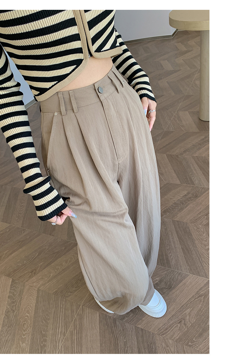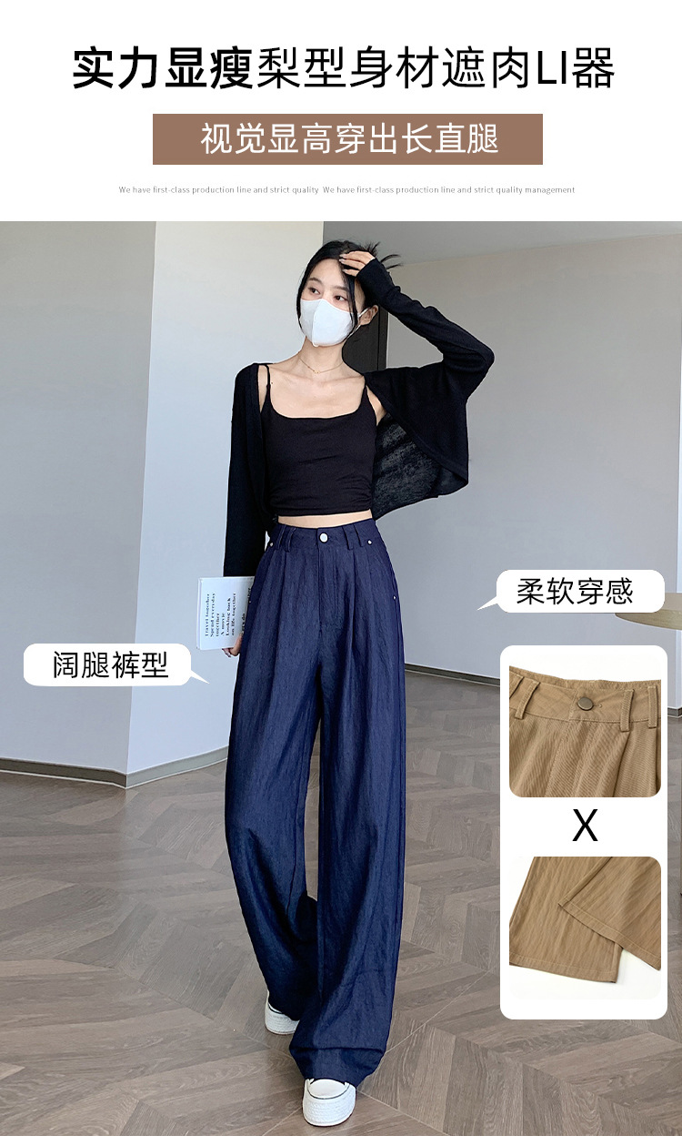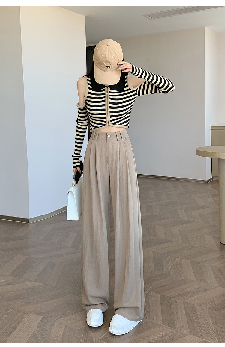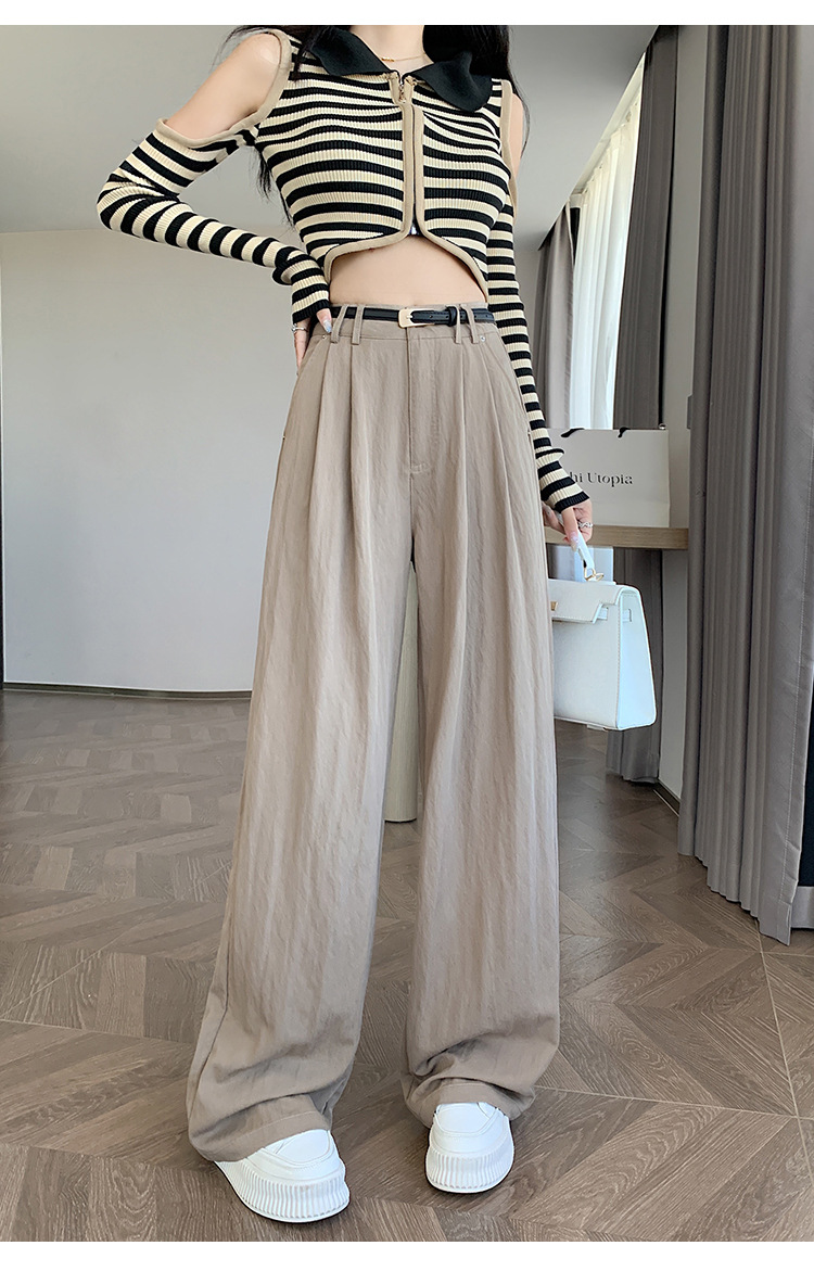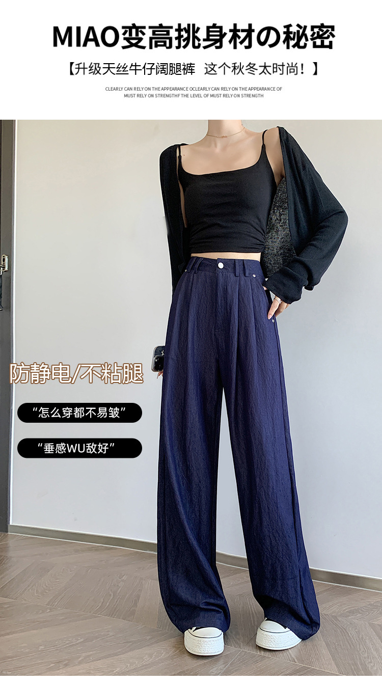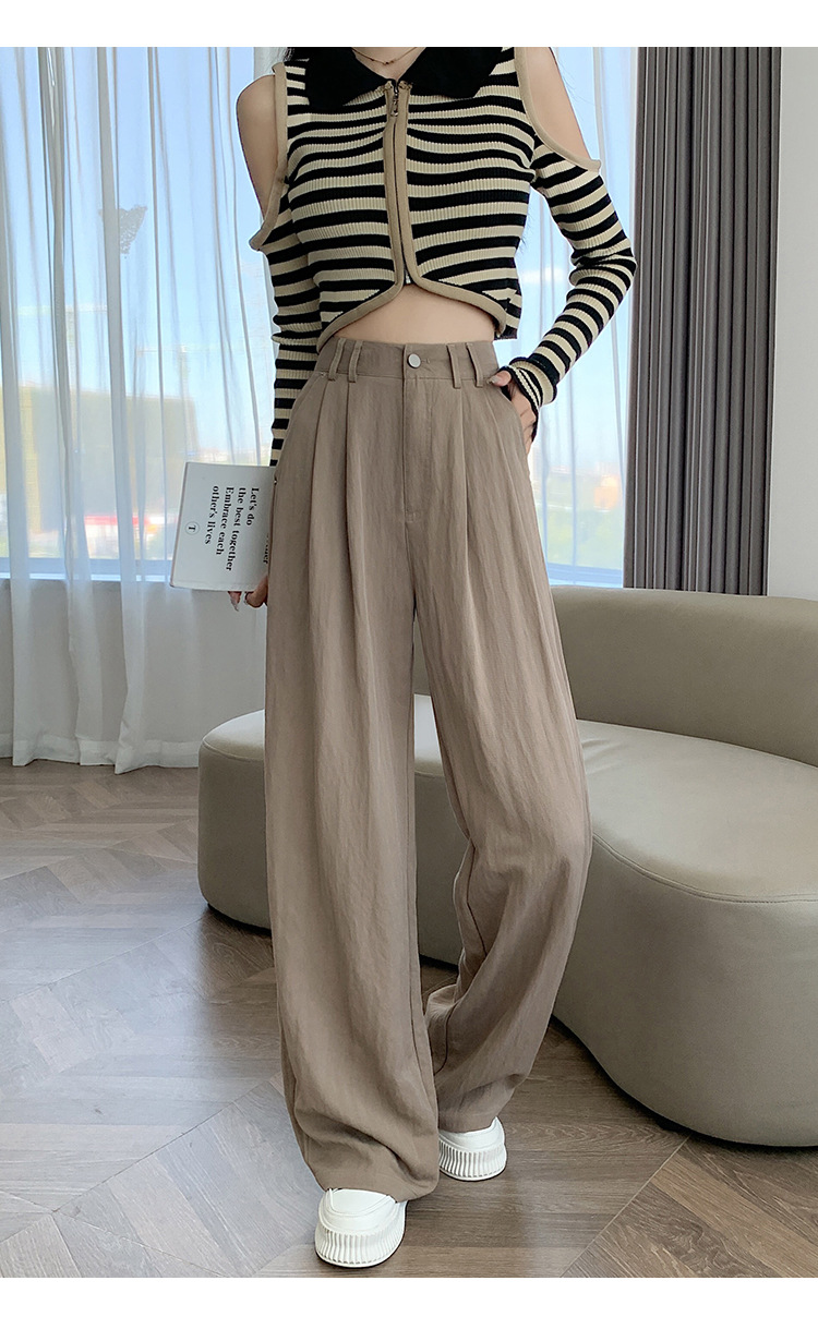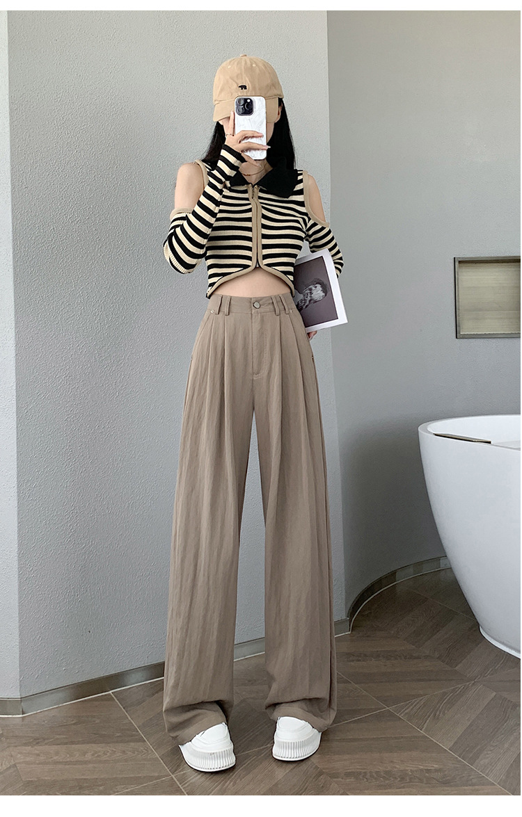 레드 하이 엔드 센스 좁은 스타일 와이드 레그 세트 바지 여성용 가을 새로운 하이 웨이스트 더미 슬림 핏 캐주얼 바지 스트레이트 바지스토어 가기