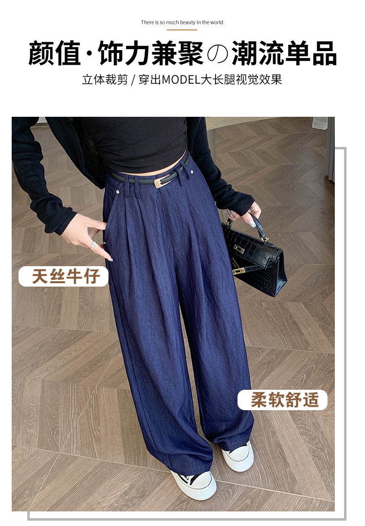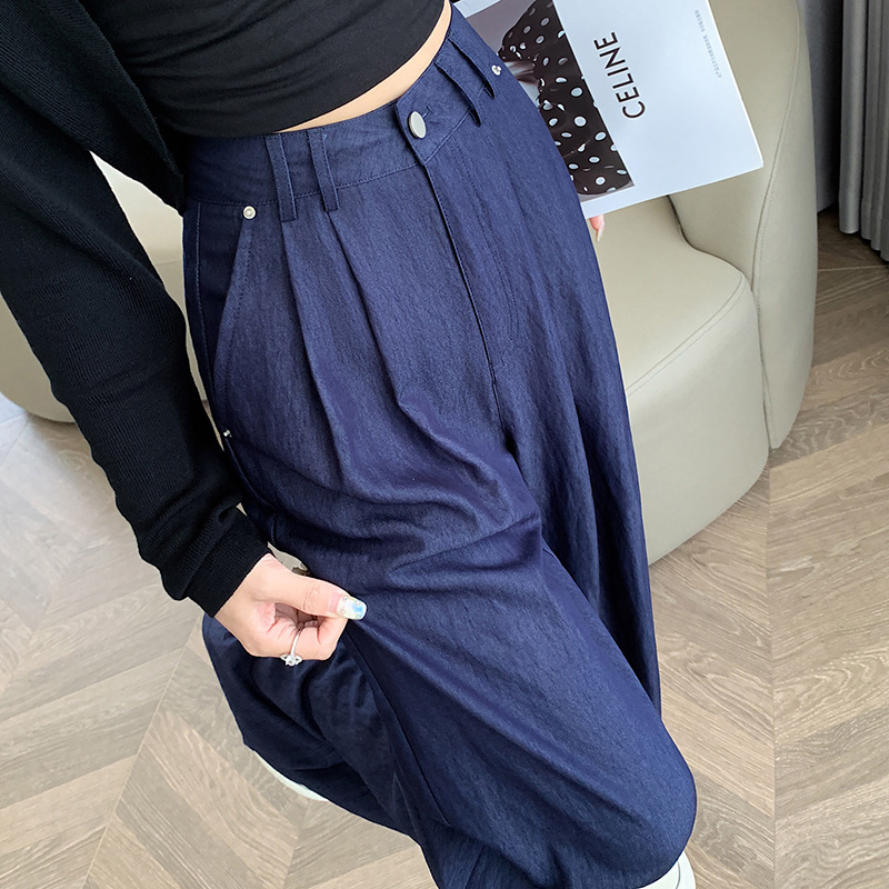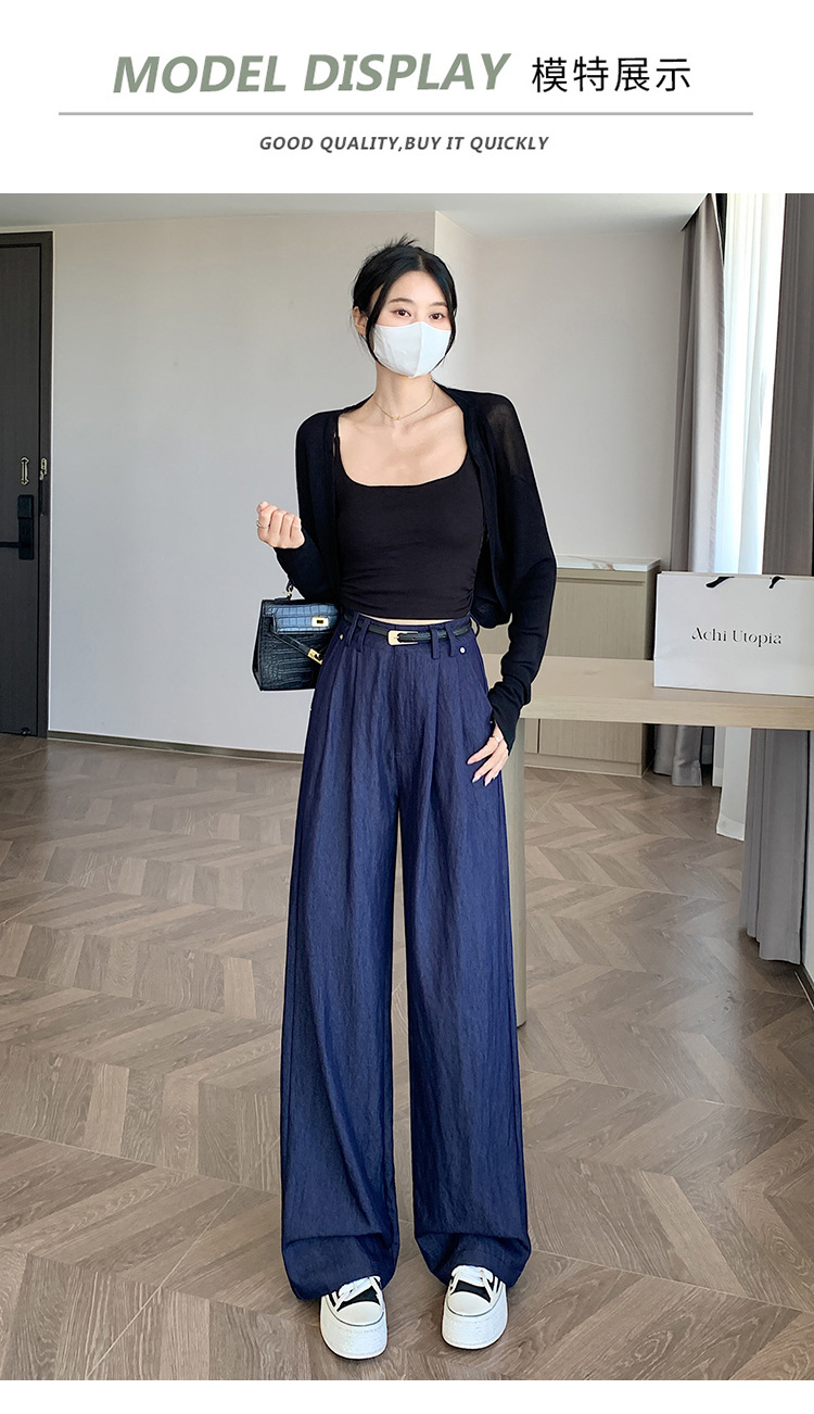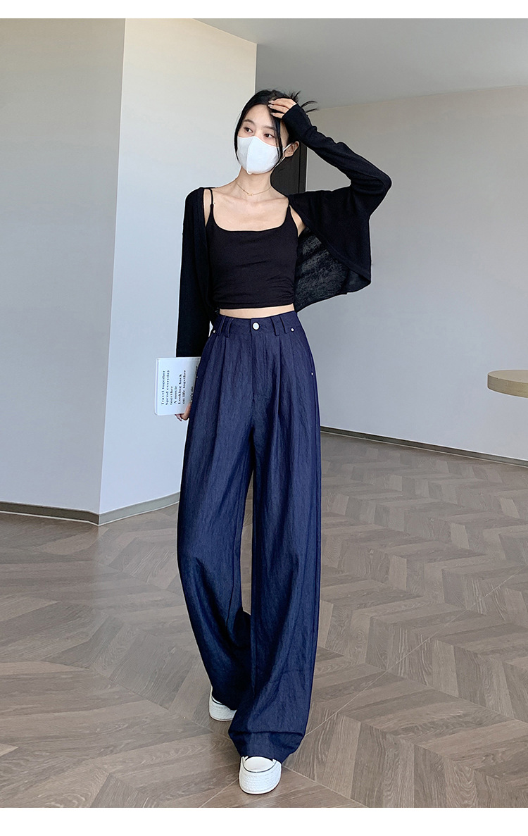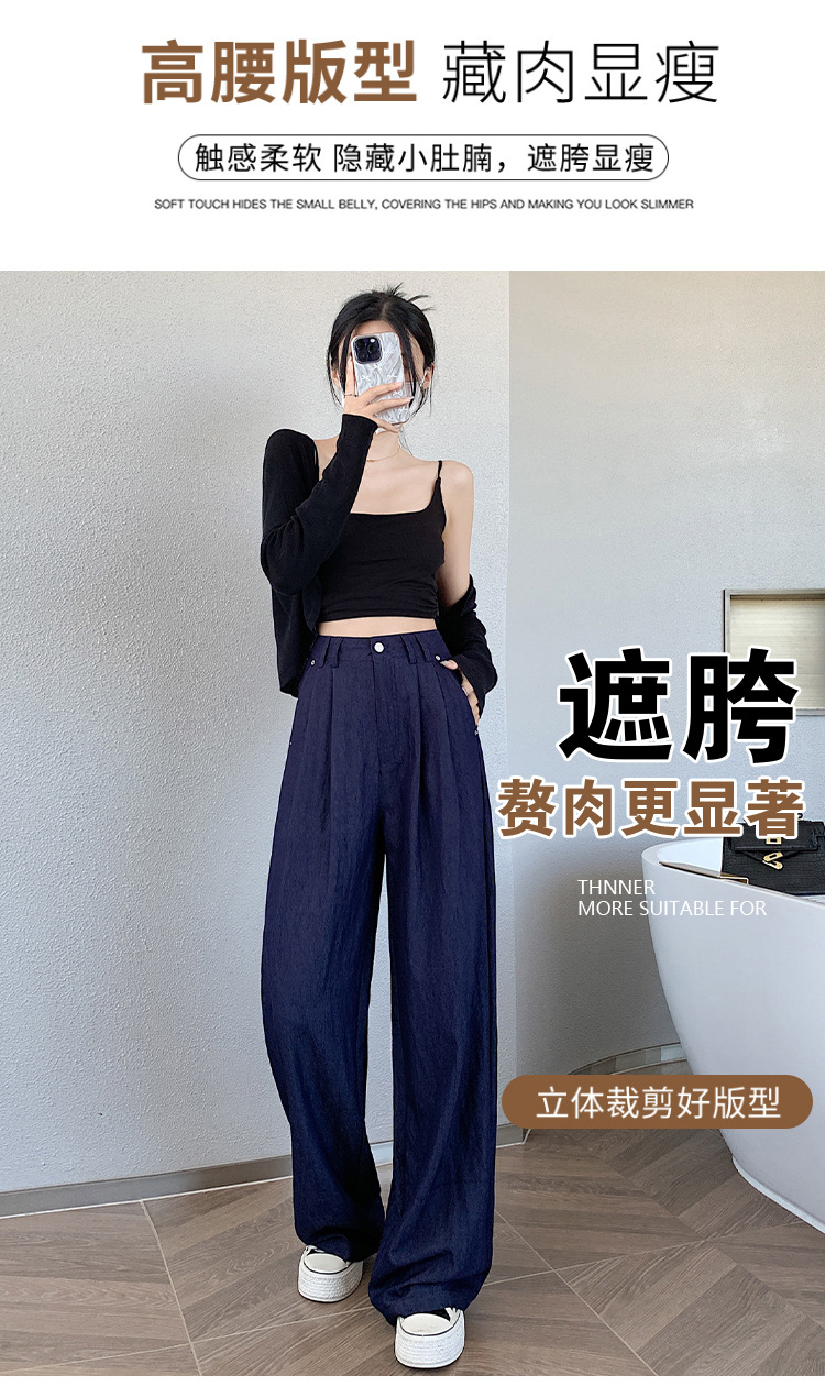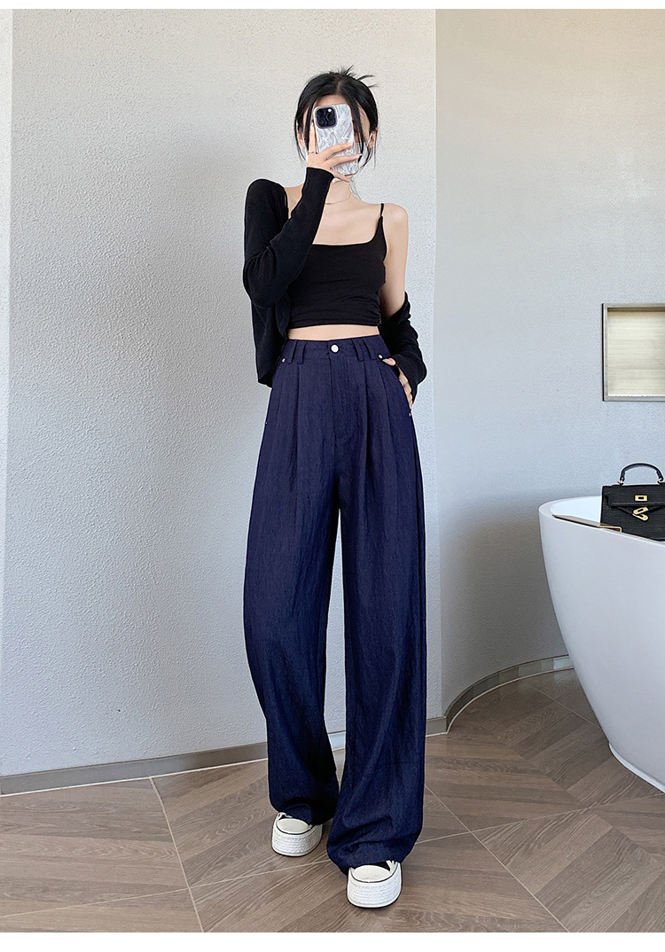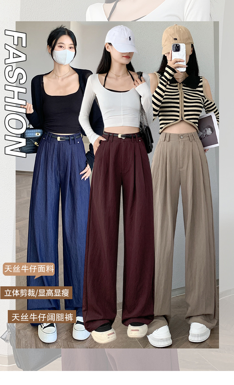 레드 하이 엔드 센스 좁은 스타일 와이드 레그 세트 바지 여성용 가을 새로운 하이 웨이스트 더미 슬림 핏 캐주얼 바지 스트레이트 바지스토어 가기