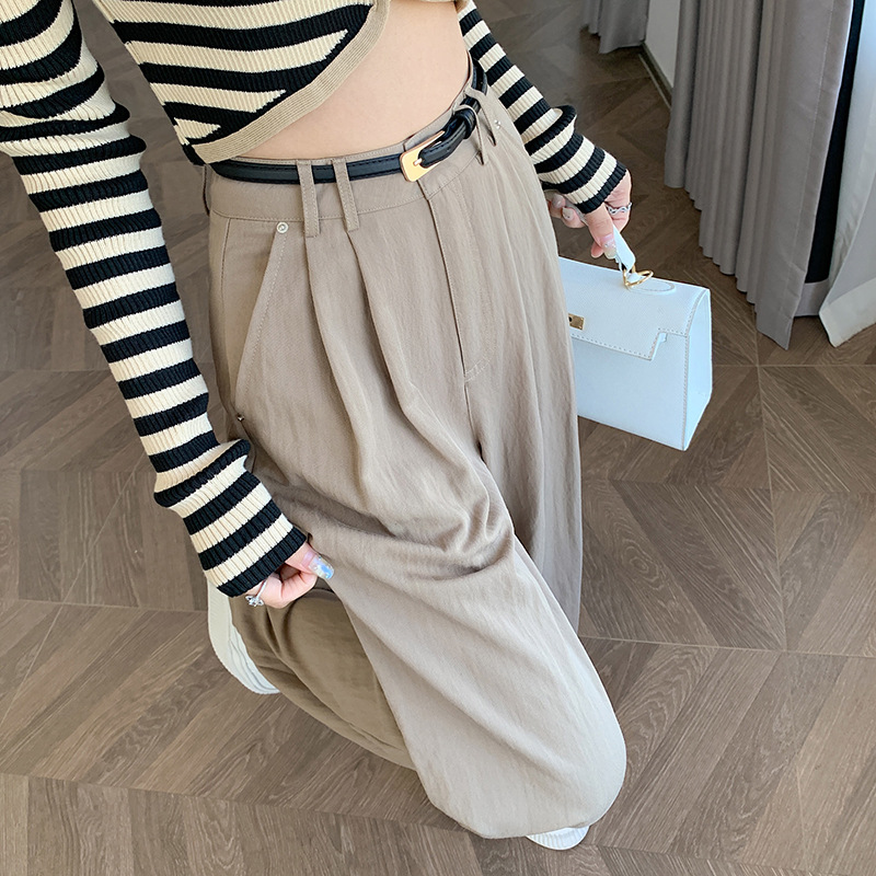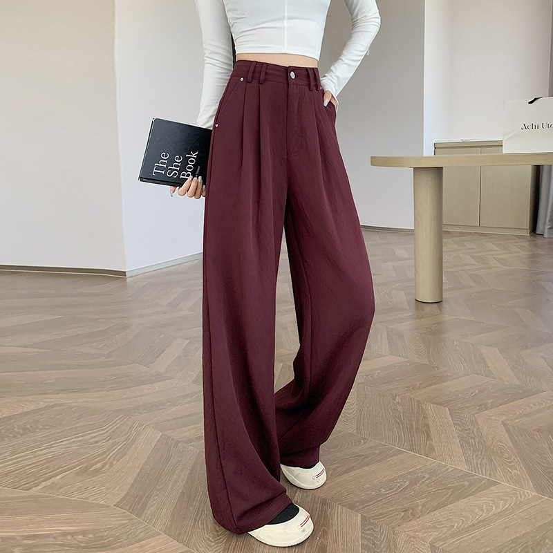 레드 하이 엔드 센스 좁은 스타일 와이드 레그 세트 바지 여성용 가을 새로운 하이 웨이스트 더미 슬림 핏 캐주얼 바지 스트레이트 바지