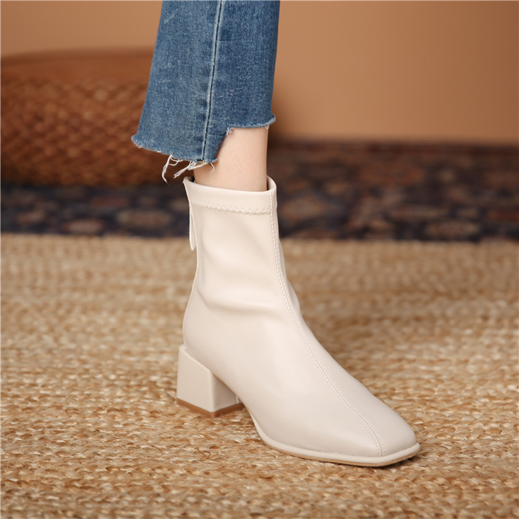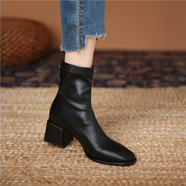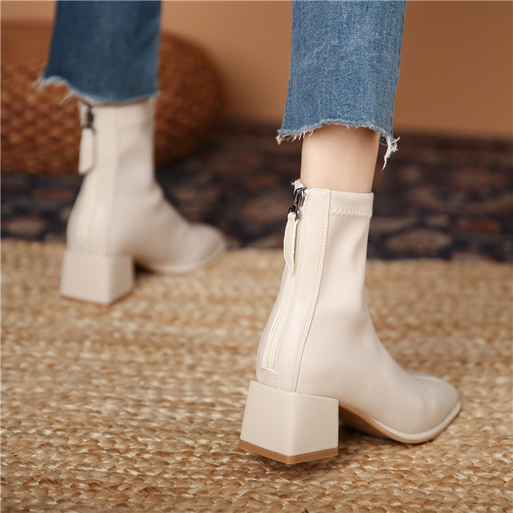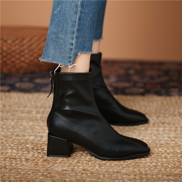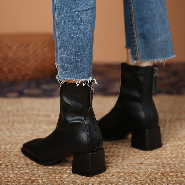 영국 스타일 패션 부츠 여성의 2024 새로운 가을과 겨울 작은 하이힐 마틴 부츠 부드러운 가죽 지퍼 세련된 힐 발목 부츠스토어 가기