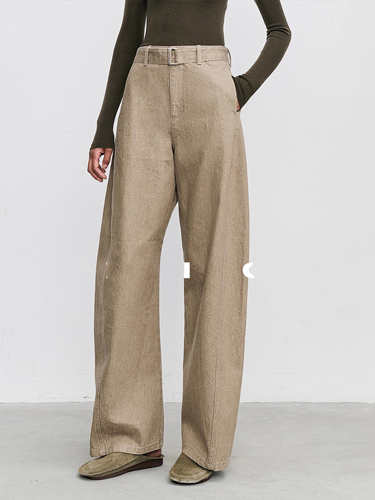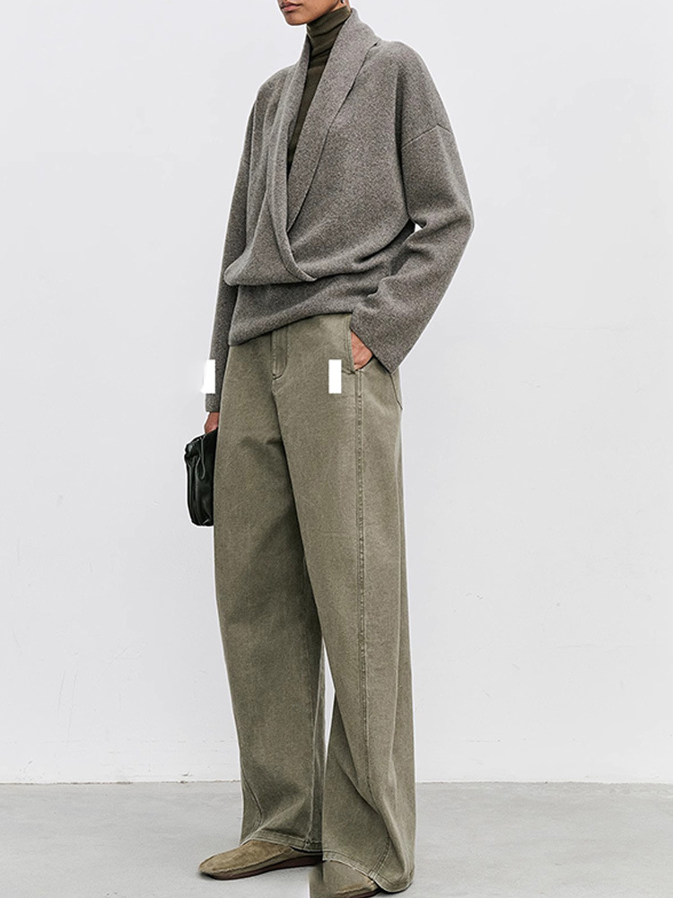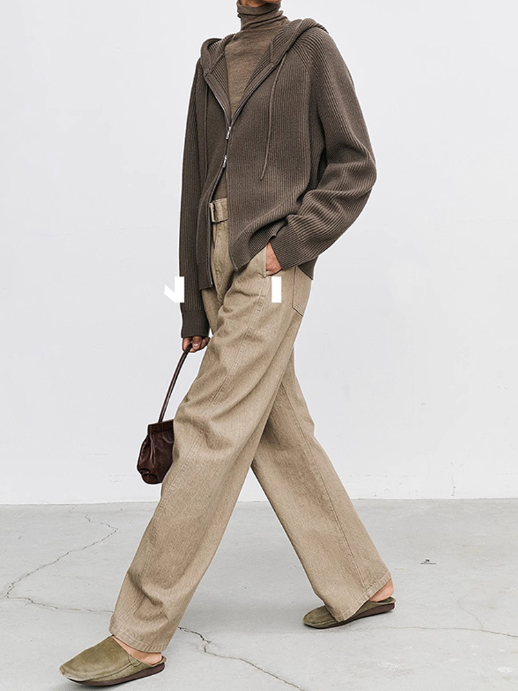 여성용 캐주얼 팬츠 빈티지 스타일 2025 가을 겨울 데님 패션 웨이브 팬츠 하이웨이스트 바나나 팬츠 슬림 데님 팬츠스토어 가기