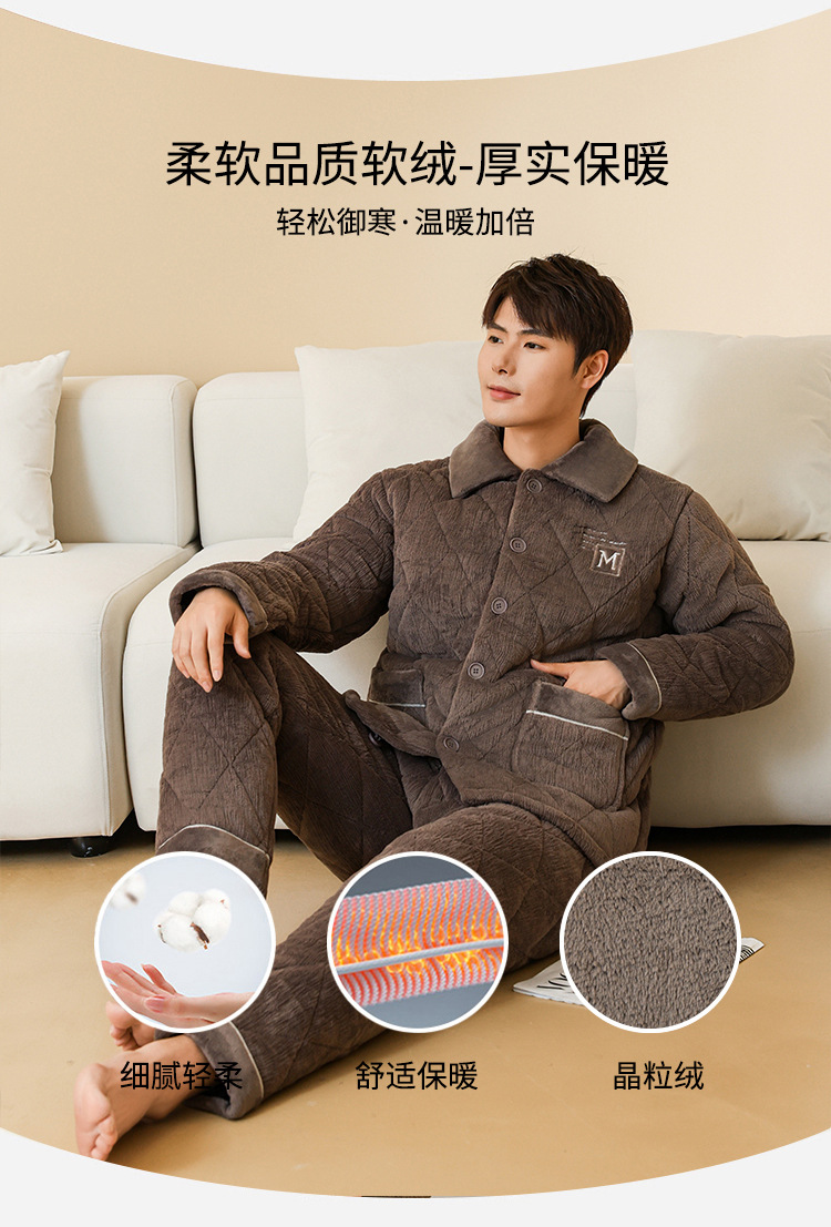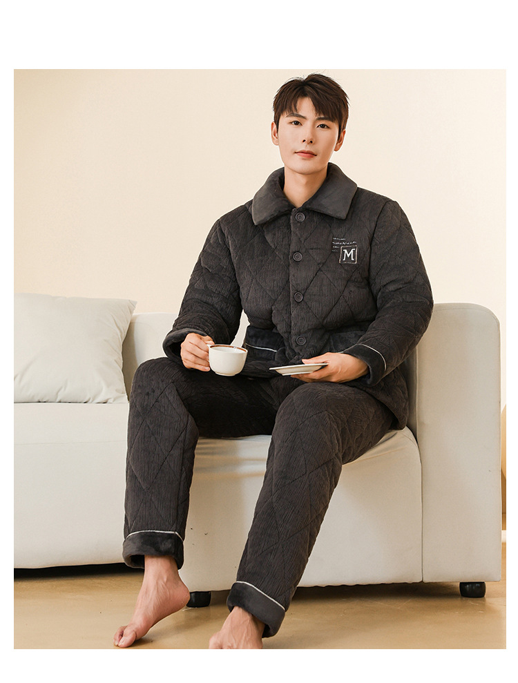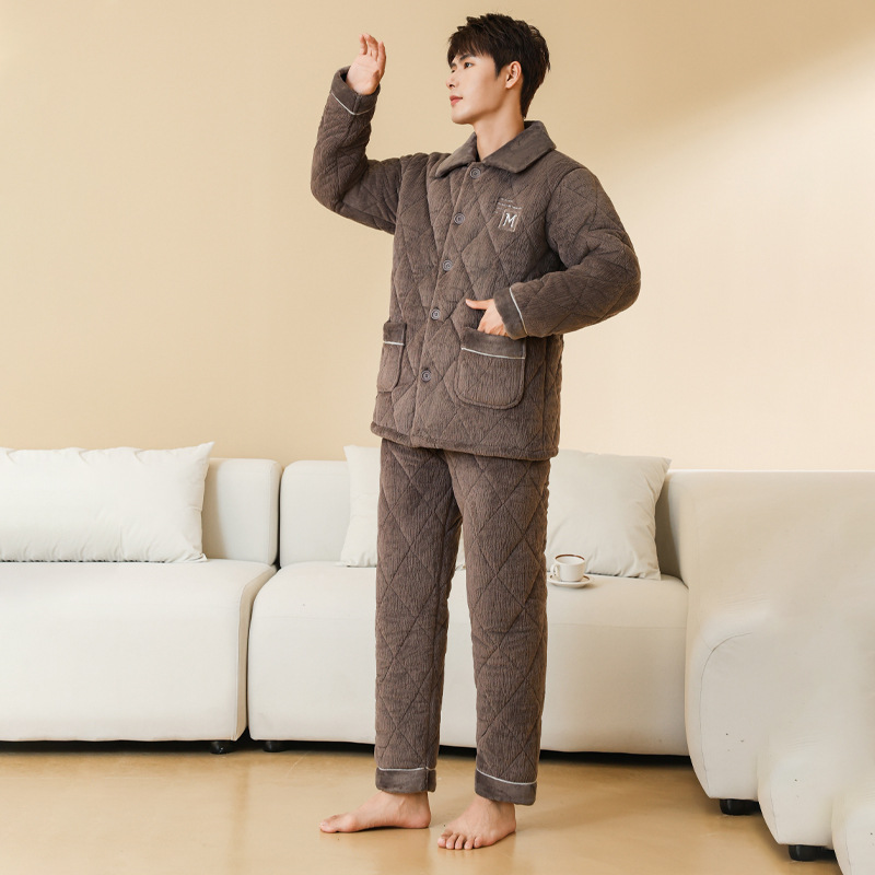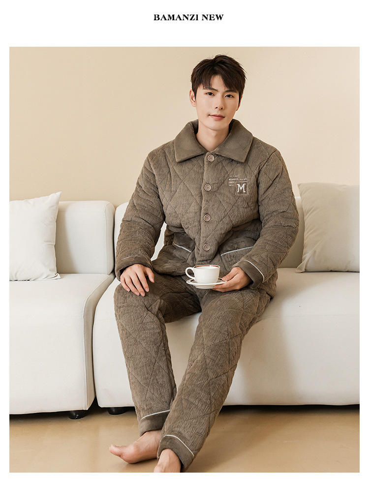 Bamanzi 남성 잠옷 겨울면 패딩 홈 의류 세트 밀크 벨벳 느슨한 간단한 바람 제조 업체 도매