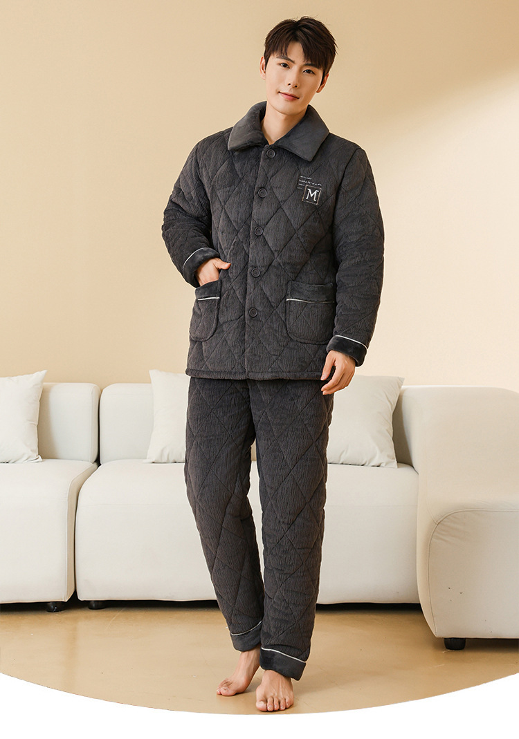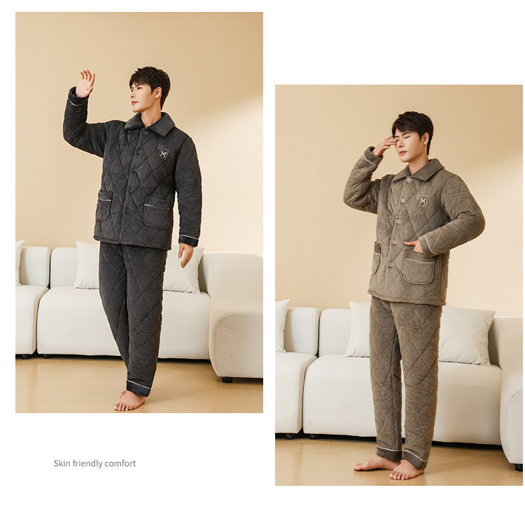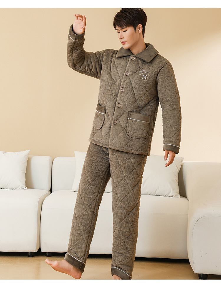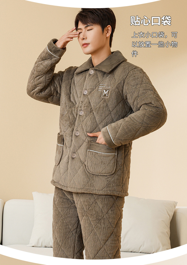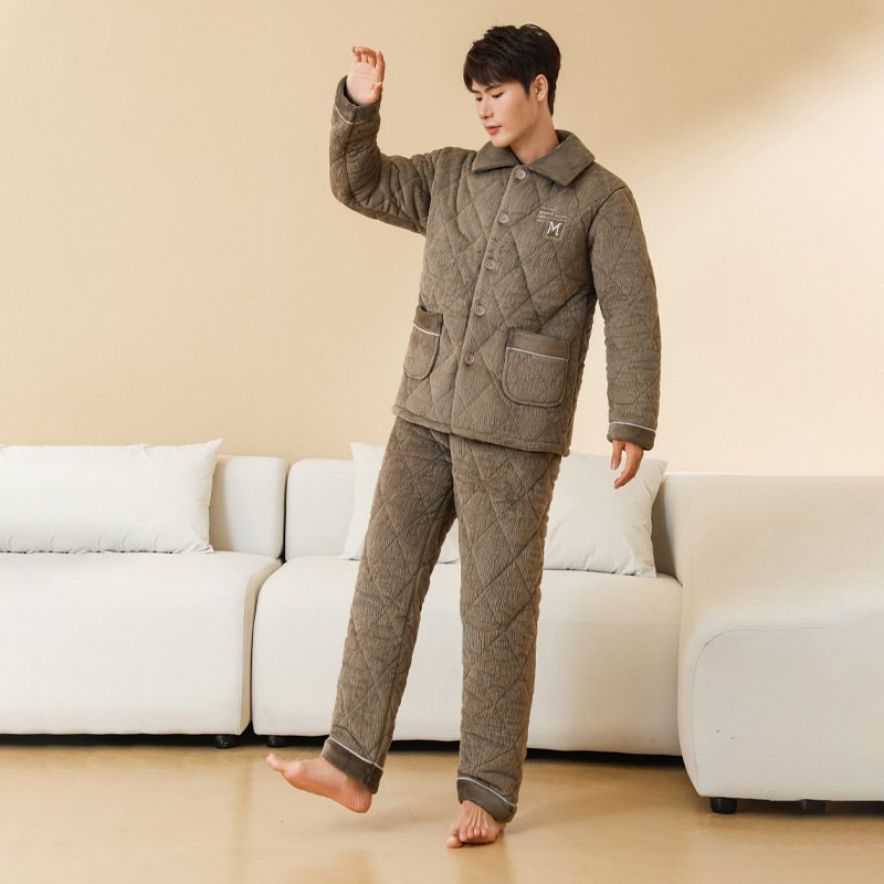 Bamanzi 남성 잠옷 겨울면 패딩 홈 의류 세트 밀크 벨벳 느슨한 간단한 바람 제조 업체 도매