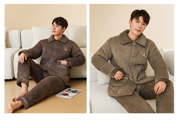 Bamanzi 남성 잠옷 겨울면 패딩 홈 의류 세트 밀크 벨벳 느슨한 간단한 바람 제조 업체 도매스토어 가기