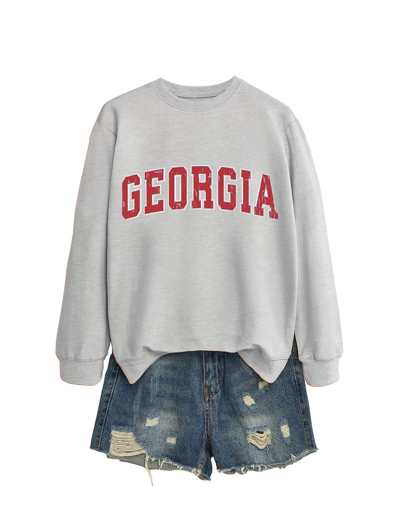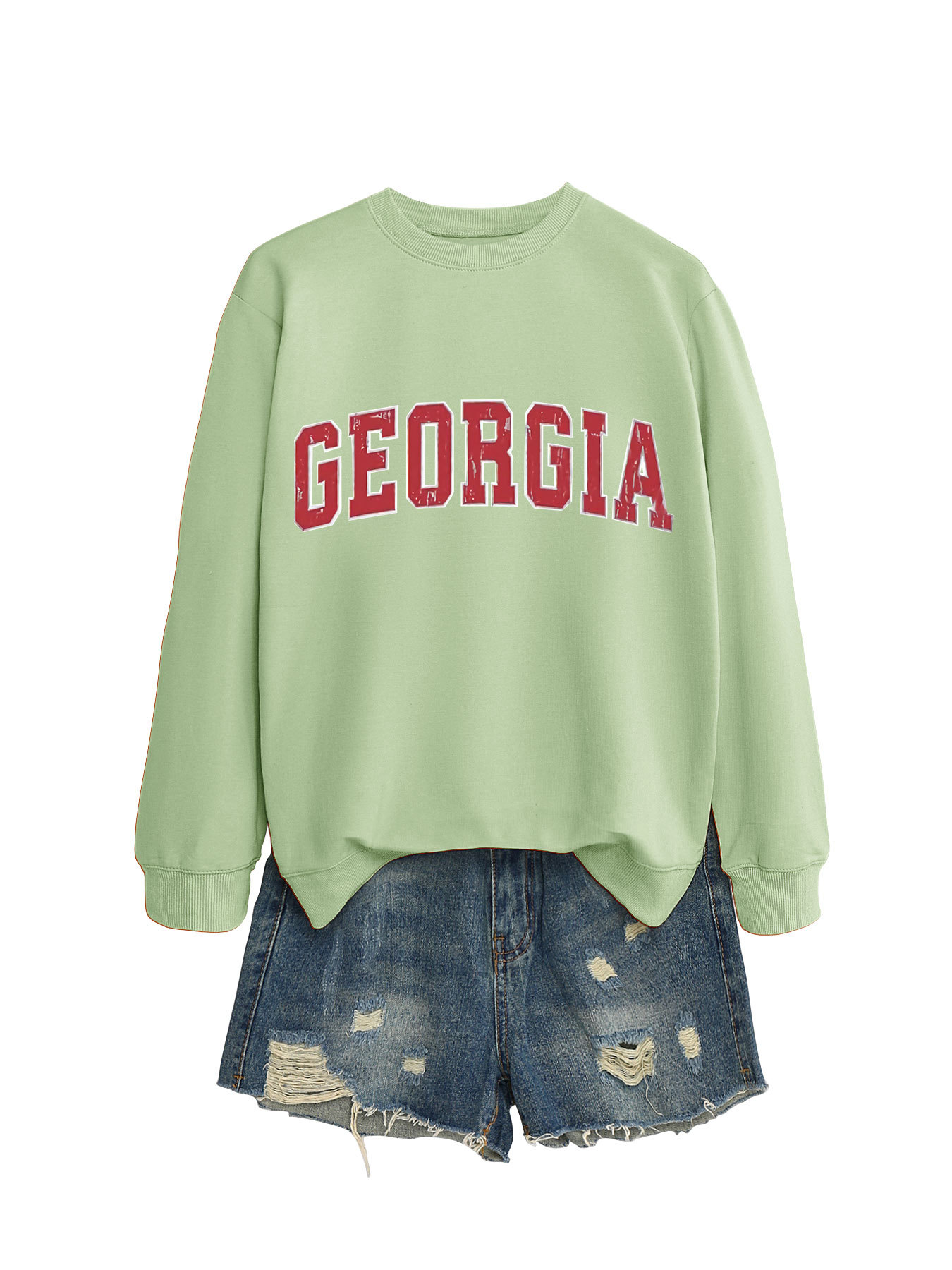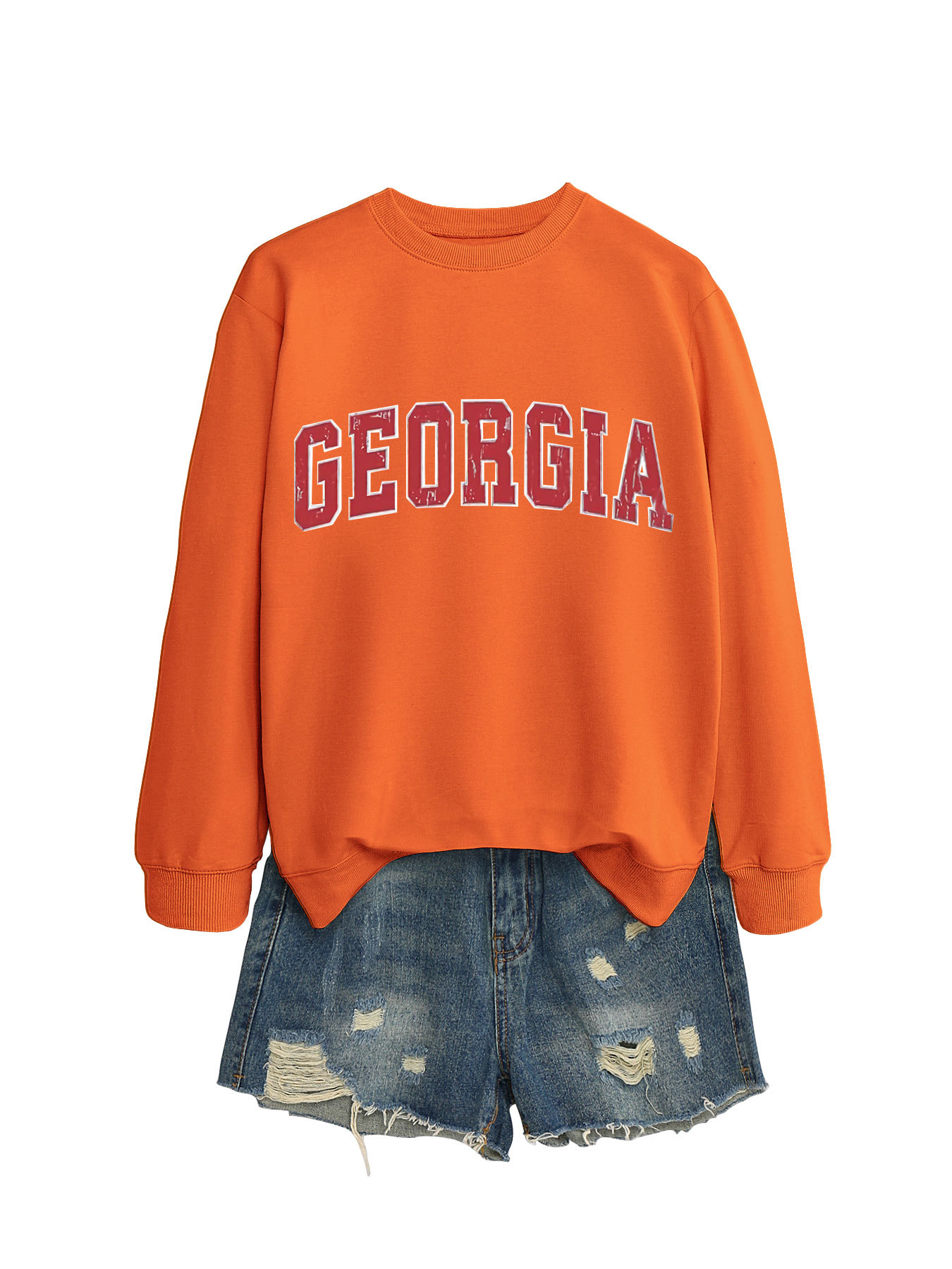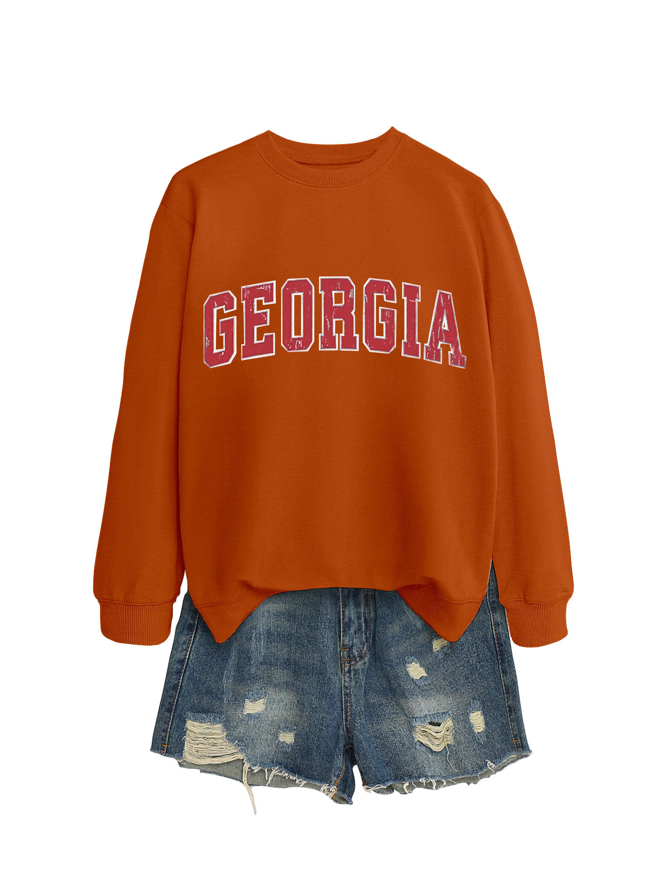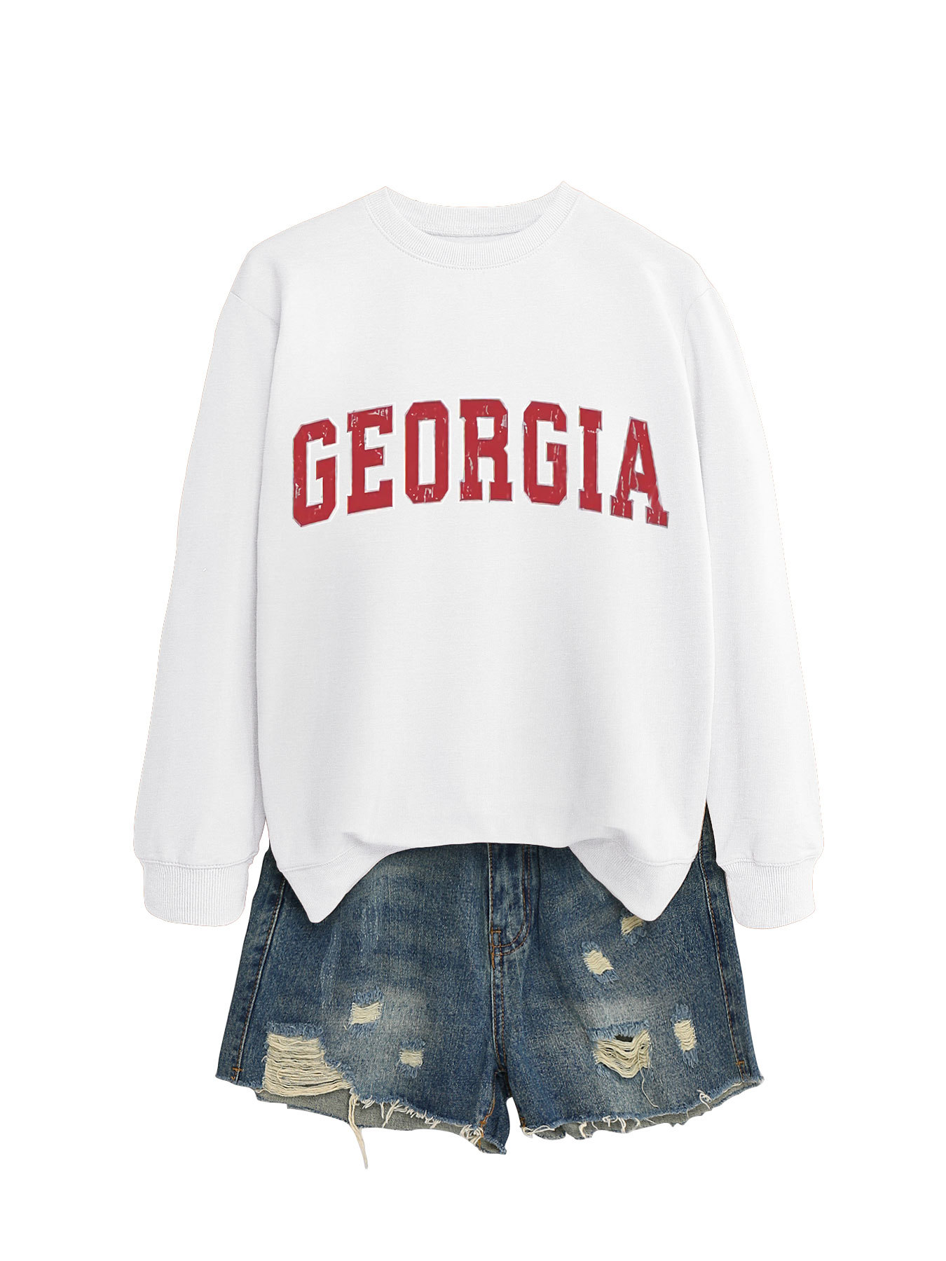 유럽과 미국의 대외 무역 국경 패션 라운드 넥 재미 땀 GEORGIA 루즈 캐주얼 올 매치 여자 톱 롱 슬리브스토어 가기