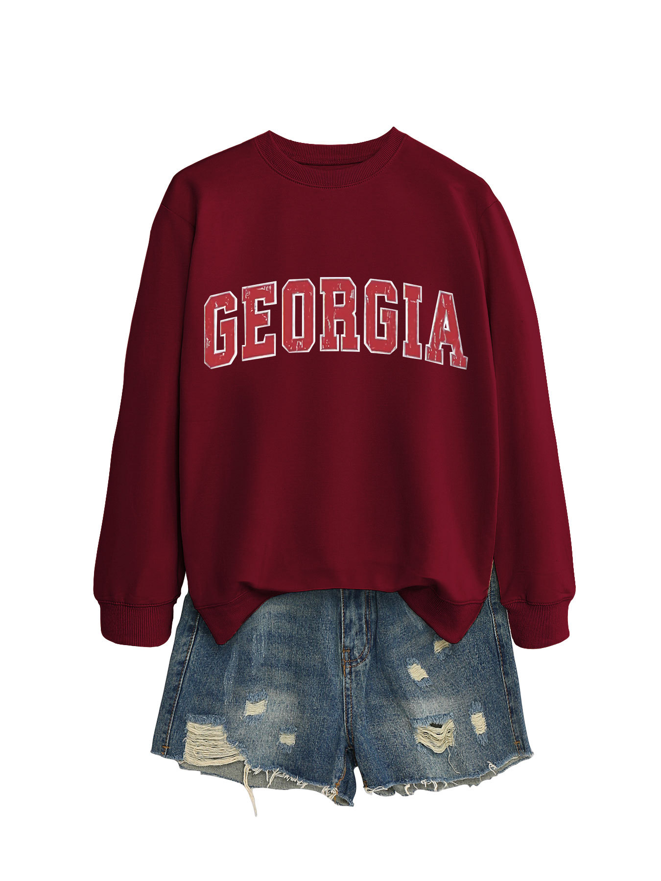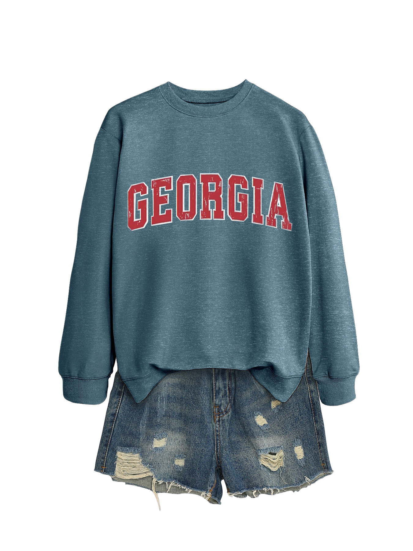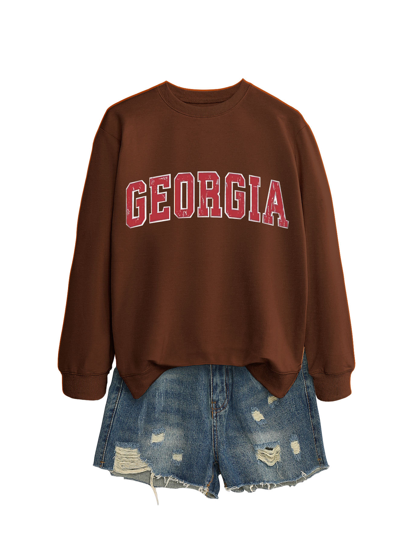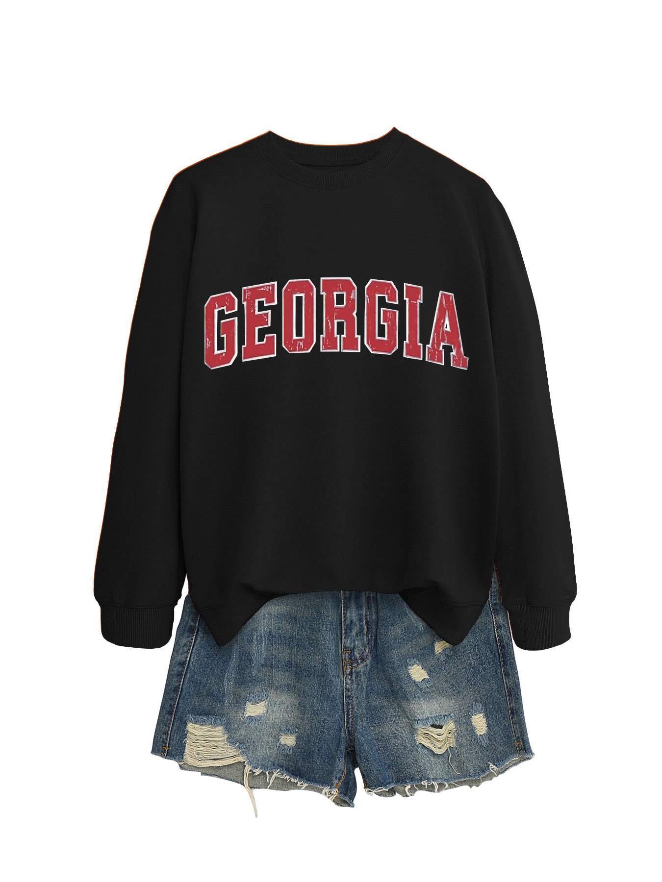유럽과 미국의 대외 무역 국경 패션 라운드 넥 재미 땀 GEORGIA 루즈 캐주얼 올 매치 여자 톱 롱 슬리브스토어 가기