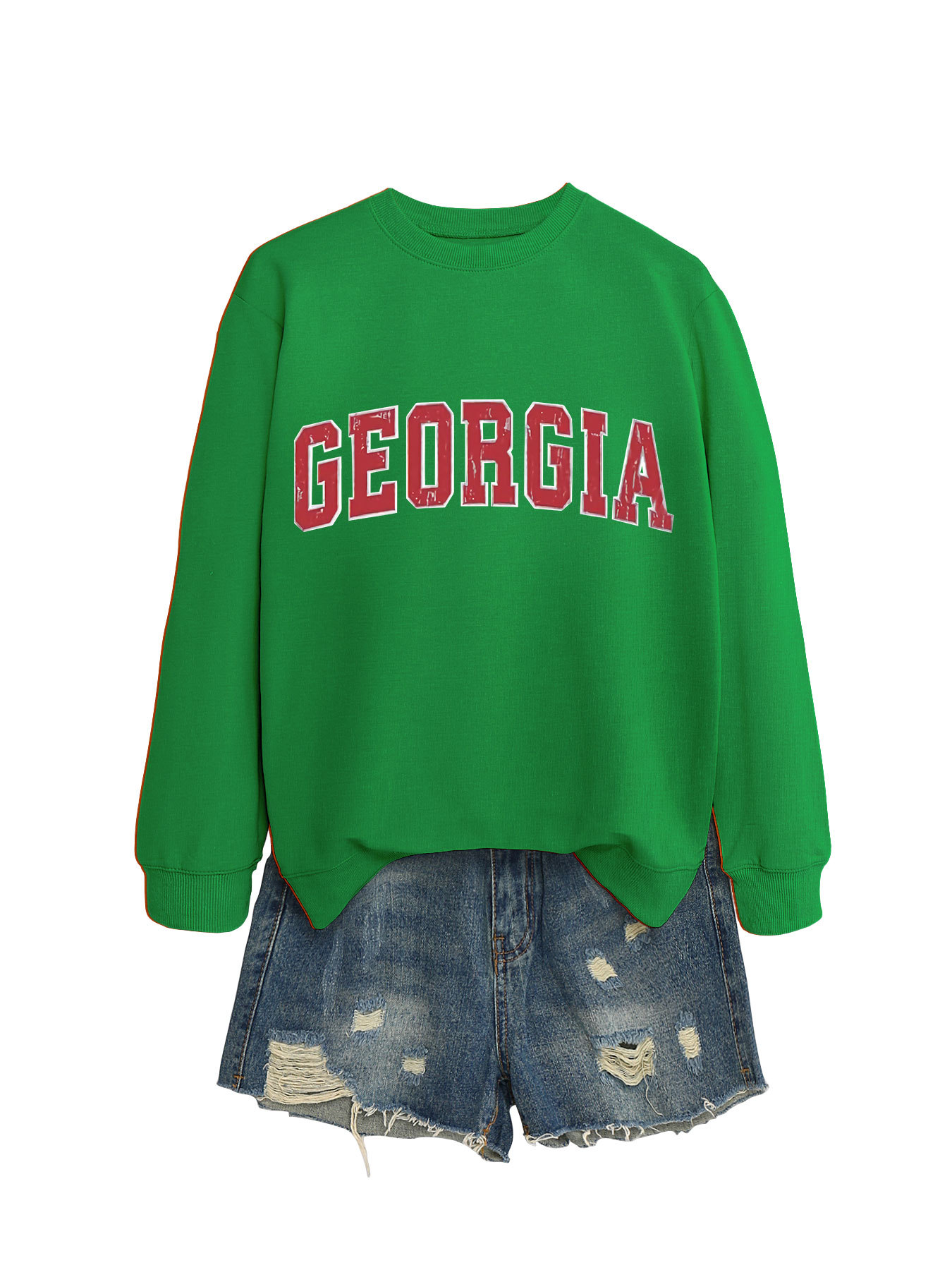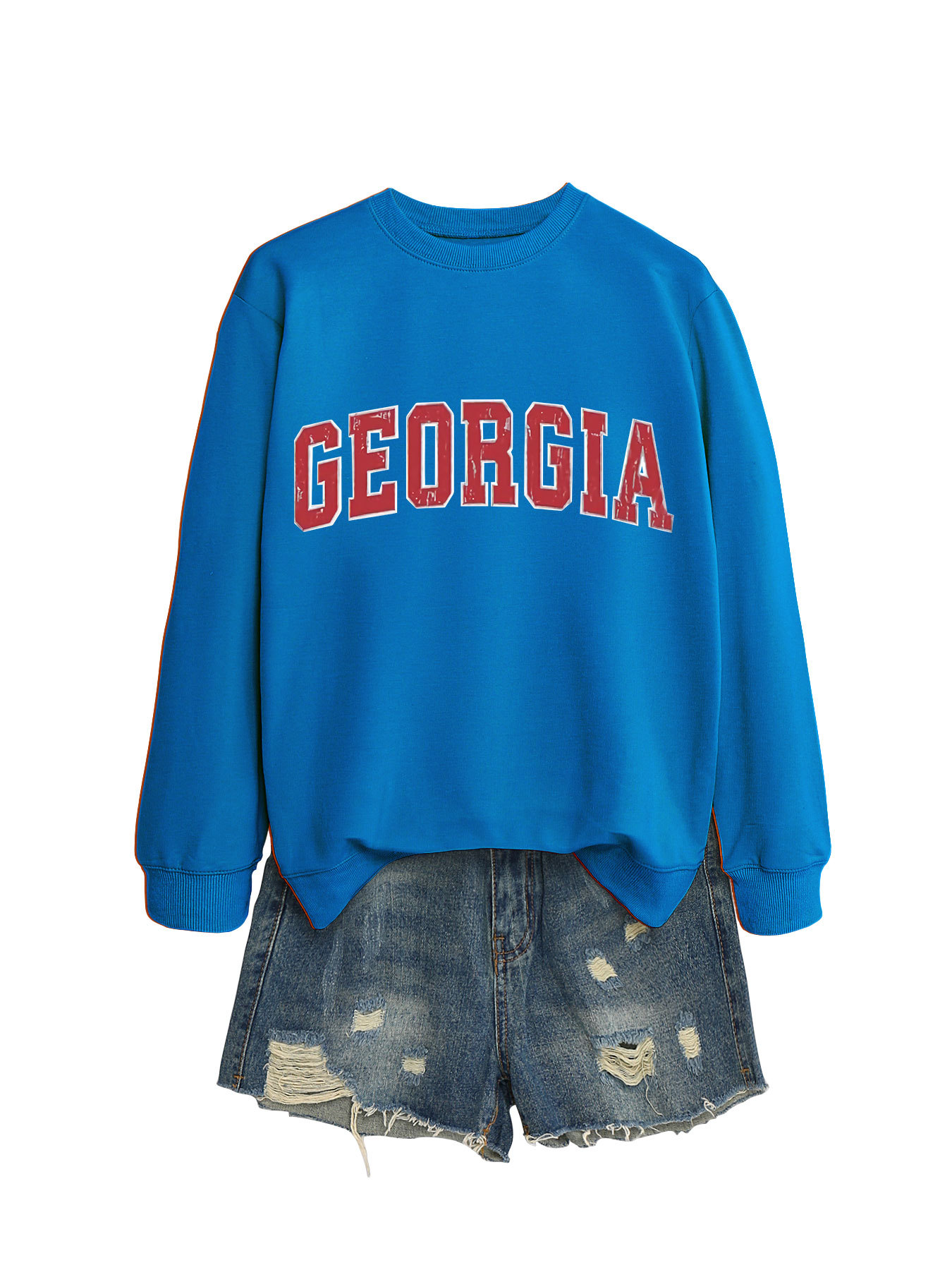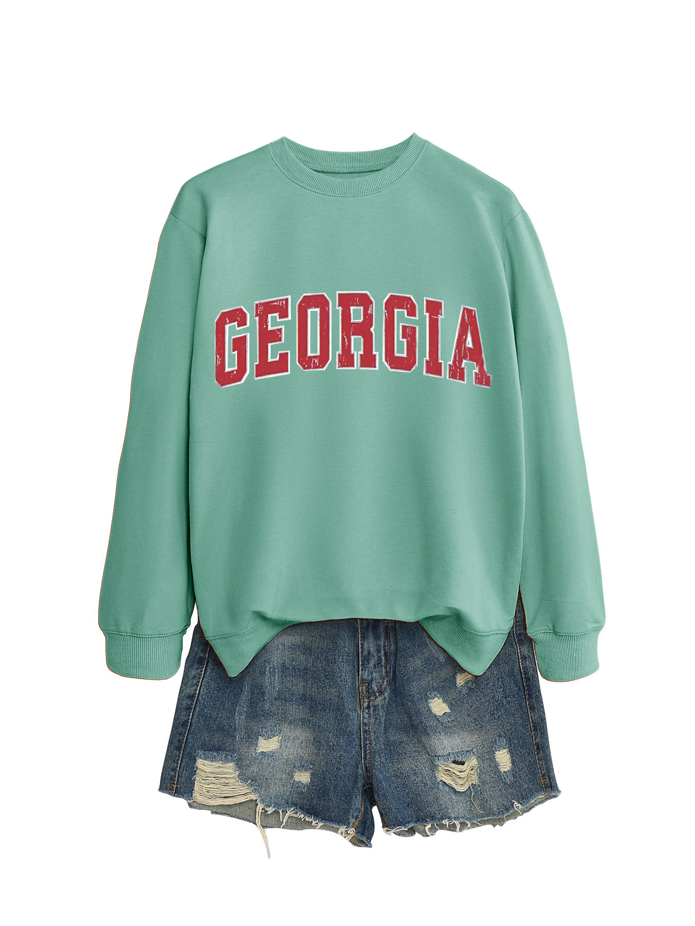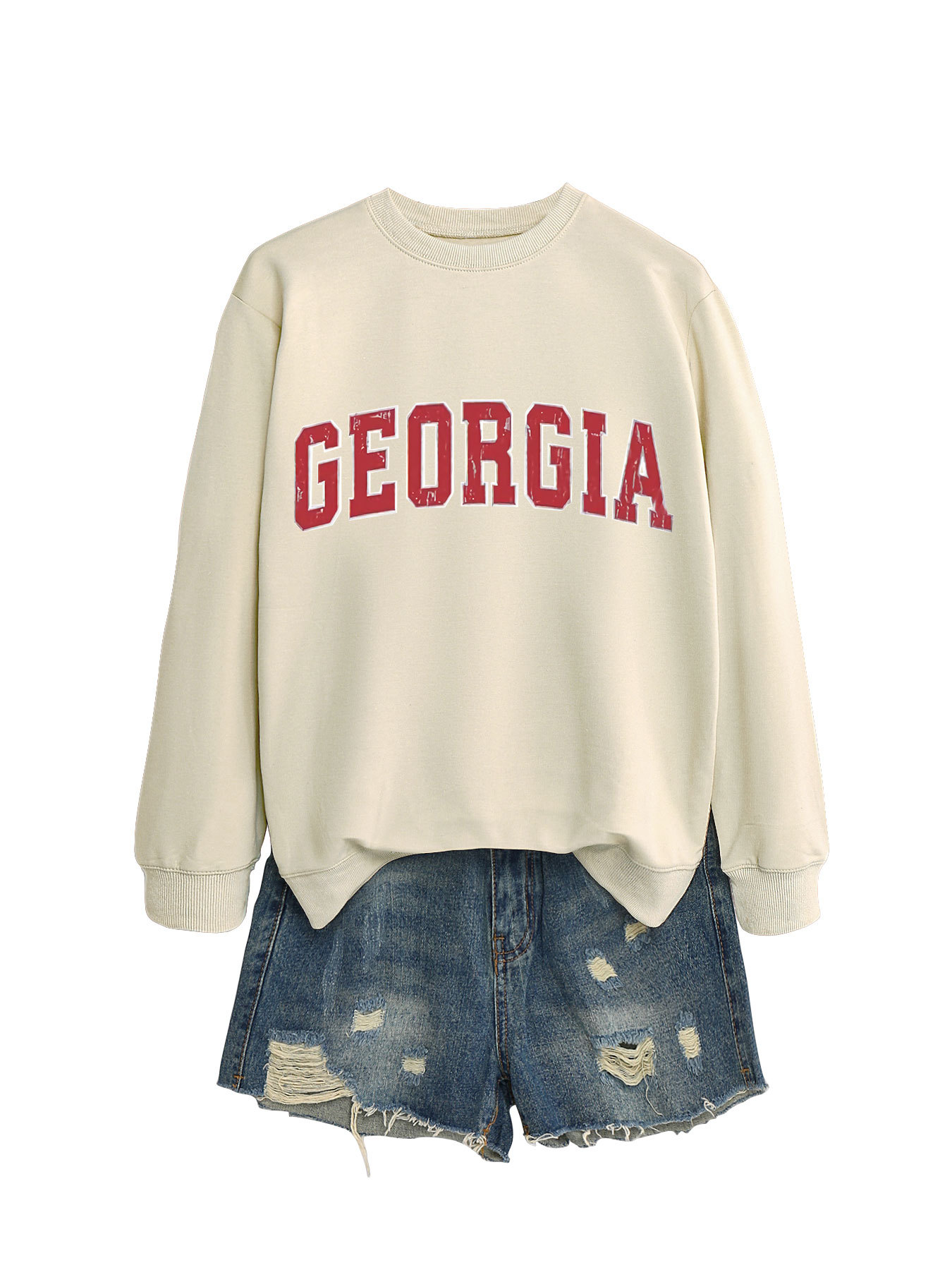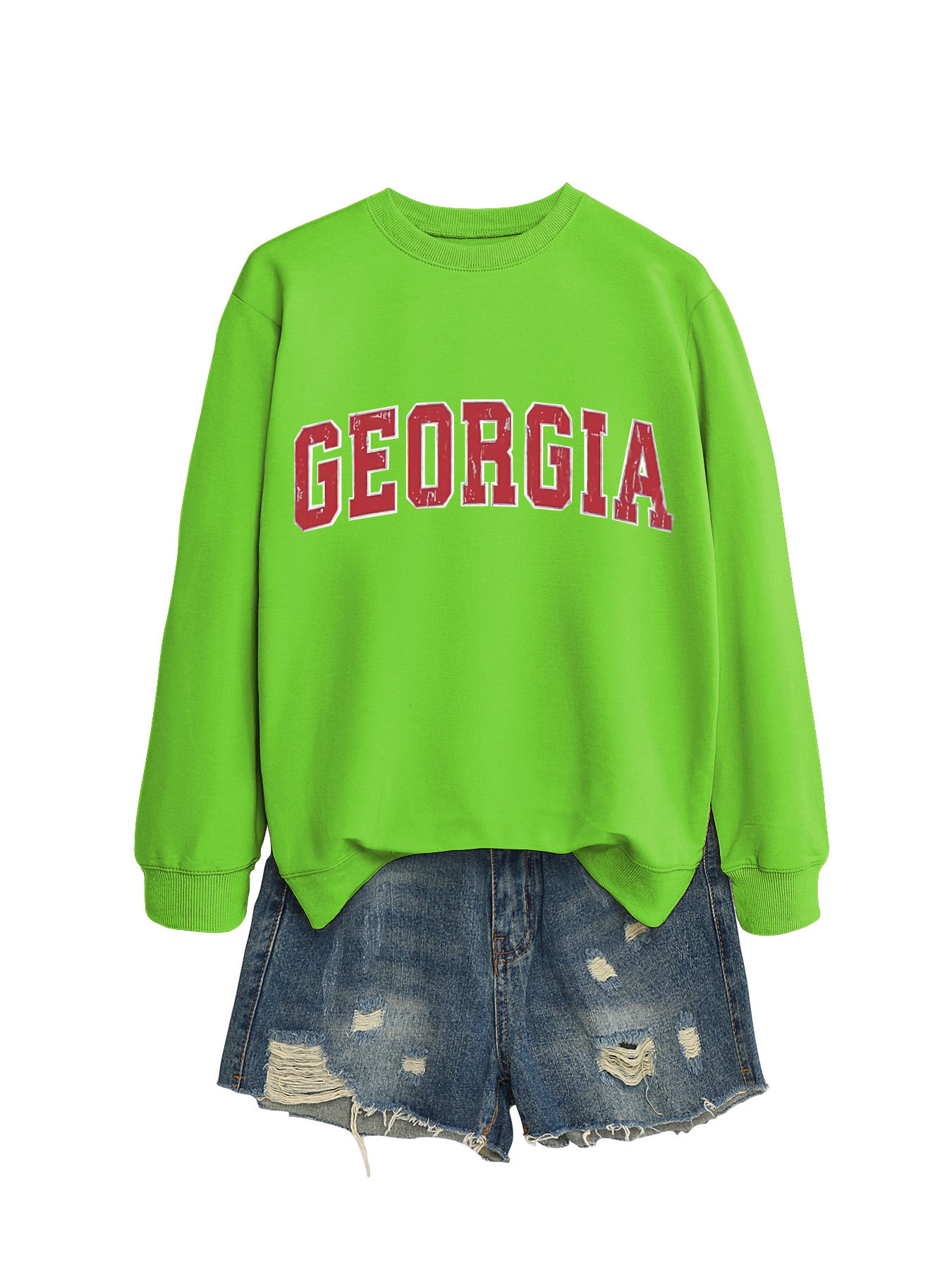 유럽과 미국의 대외 무역 국경 패션 라운드 넥 재미 땀 GEORGIA 루즈 캐주얼 올 매치 여자 톱 롱 슬리브스토어 가기