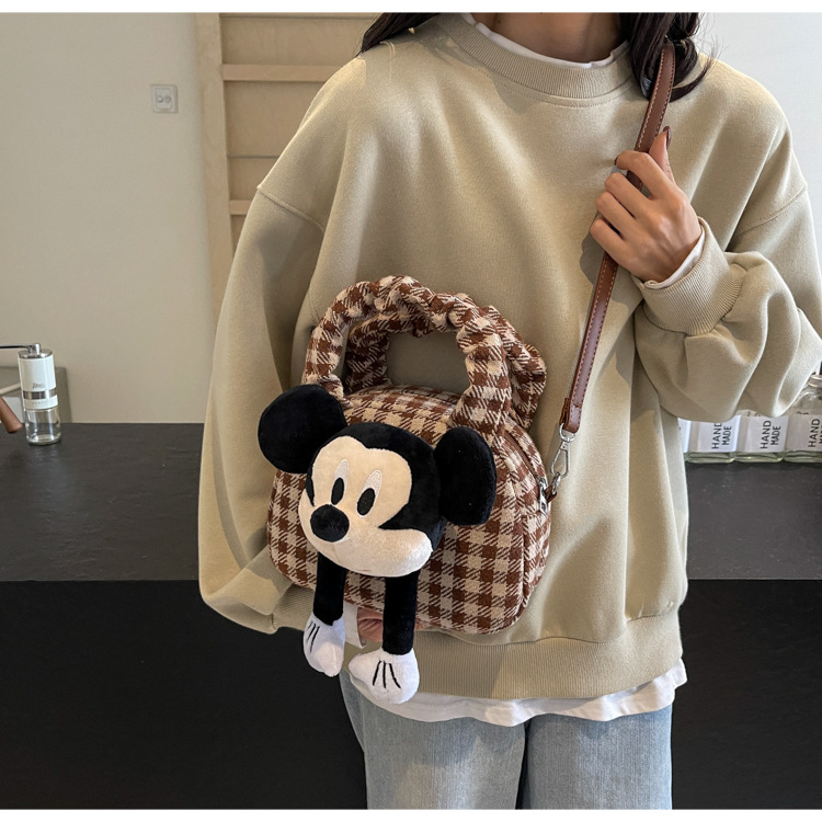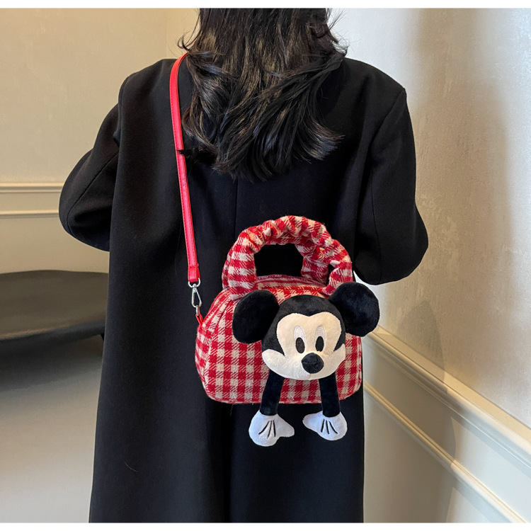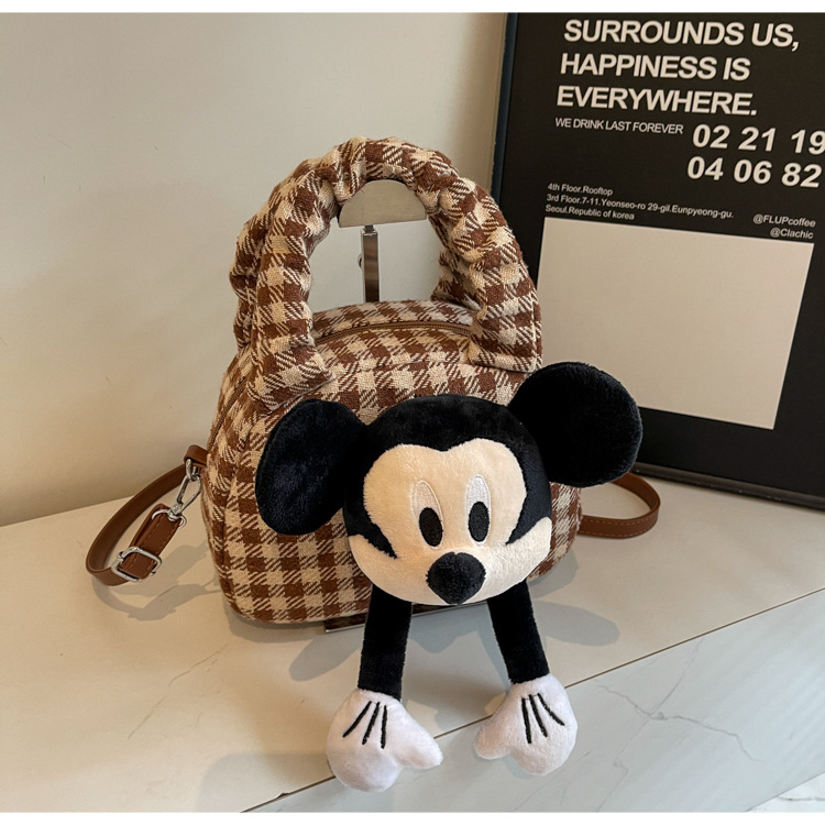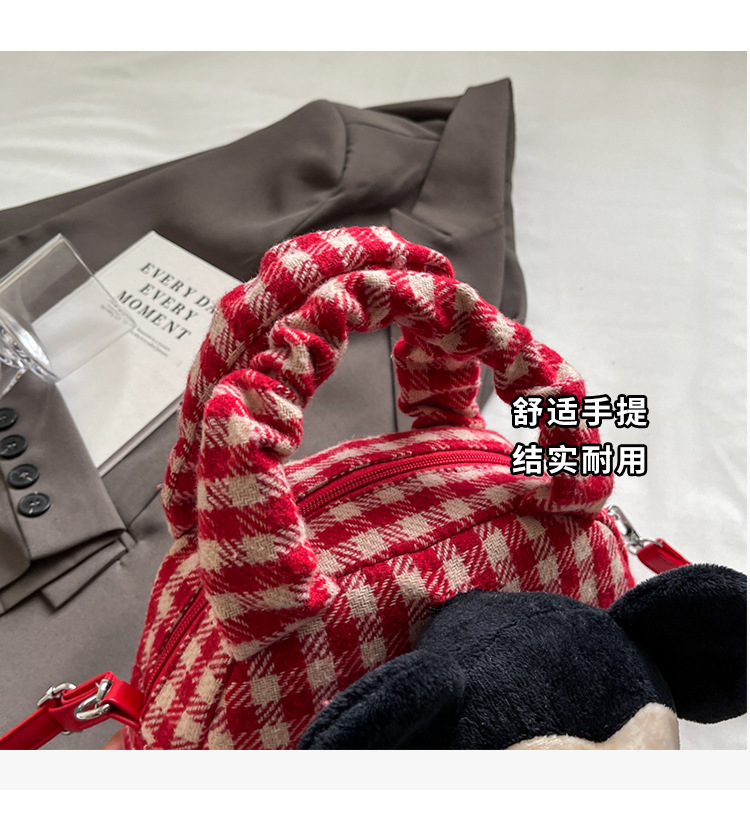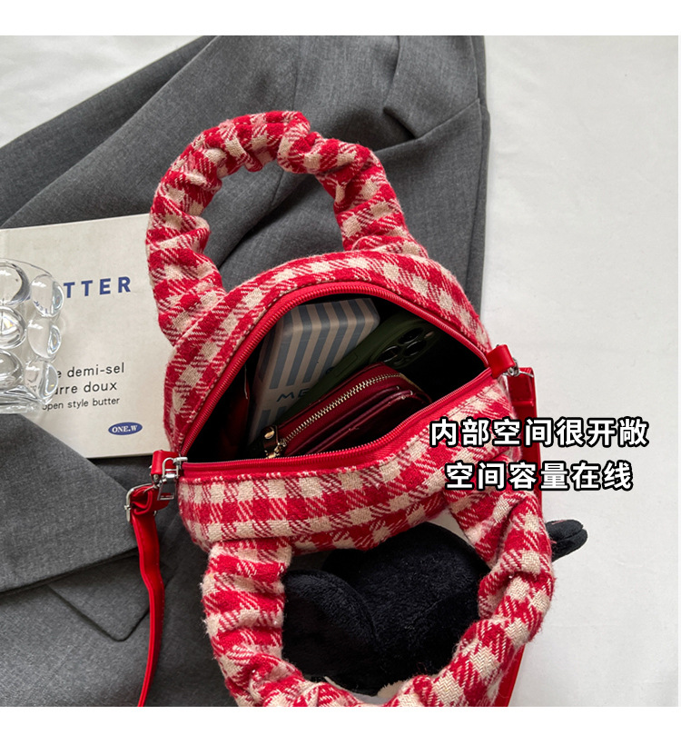 가을과 겨울 새로운 울 체크 무늬 핸드백 여성 2024 유행 귀여운 대용량 볼링 어깨 크로스 백스토어 가기