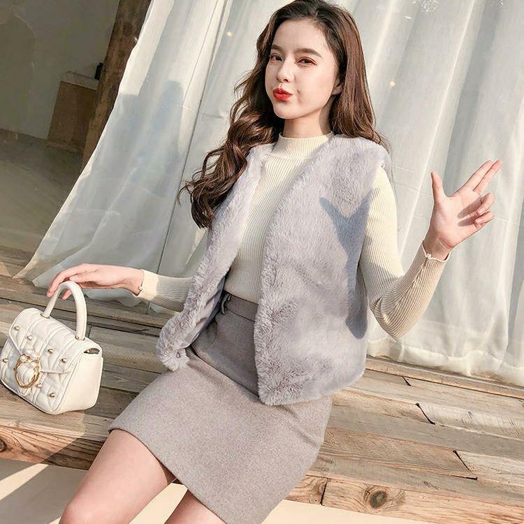 2024 새로운 가을, 겨울 패션 다목적 조끼 여성 짧은 모조 토끼 모피 조끼 플러시 모피 조끼스토어 가기