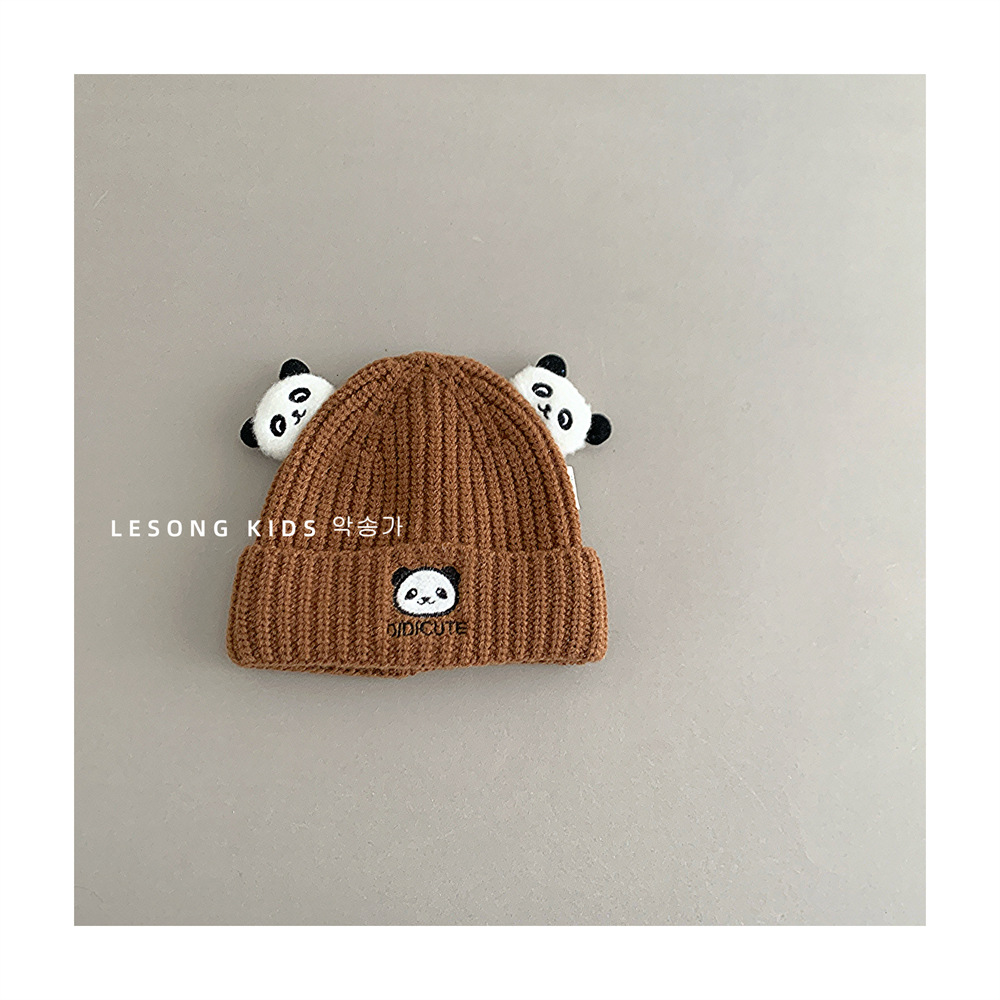 귀여운 만화 팬더 아기 모자 가을과 겨울 따뜻한 두꺼운 양모 모자 유행 아기 남자와 여자의 풀오버 모자스토어 가기