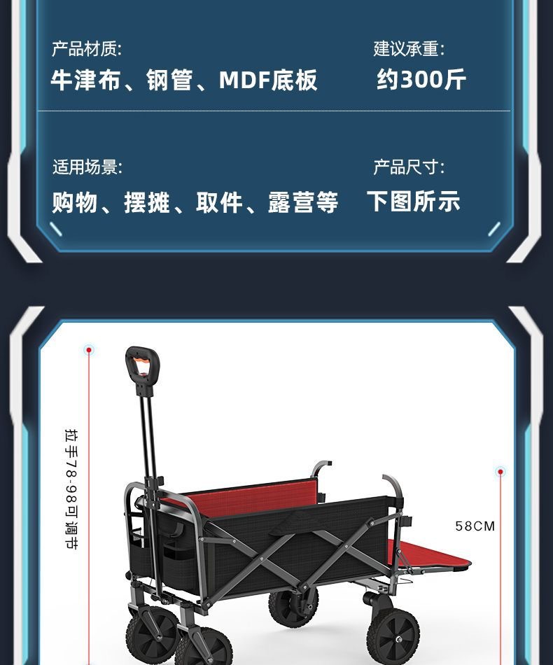 전기 캠프 자동차 대형 캠핑 트레일러 야외 캠핑 자동차 접히는 피크닉 자동차 스톨 카트 성인