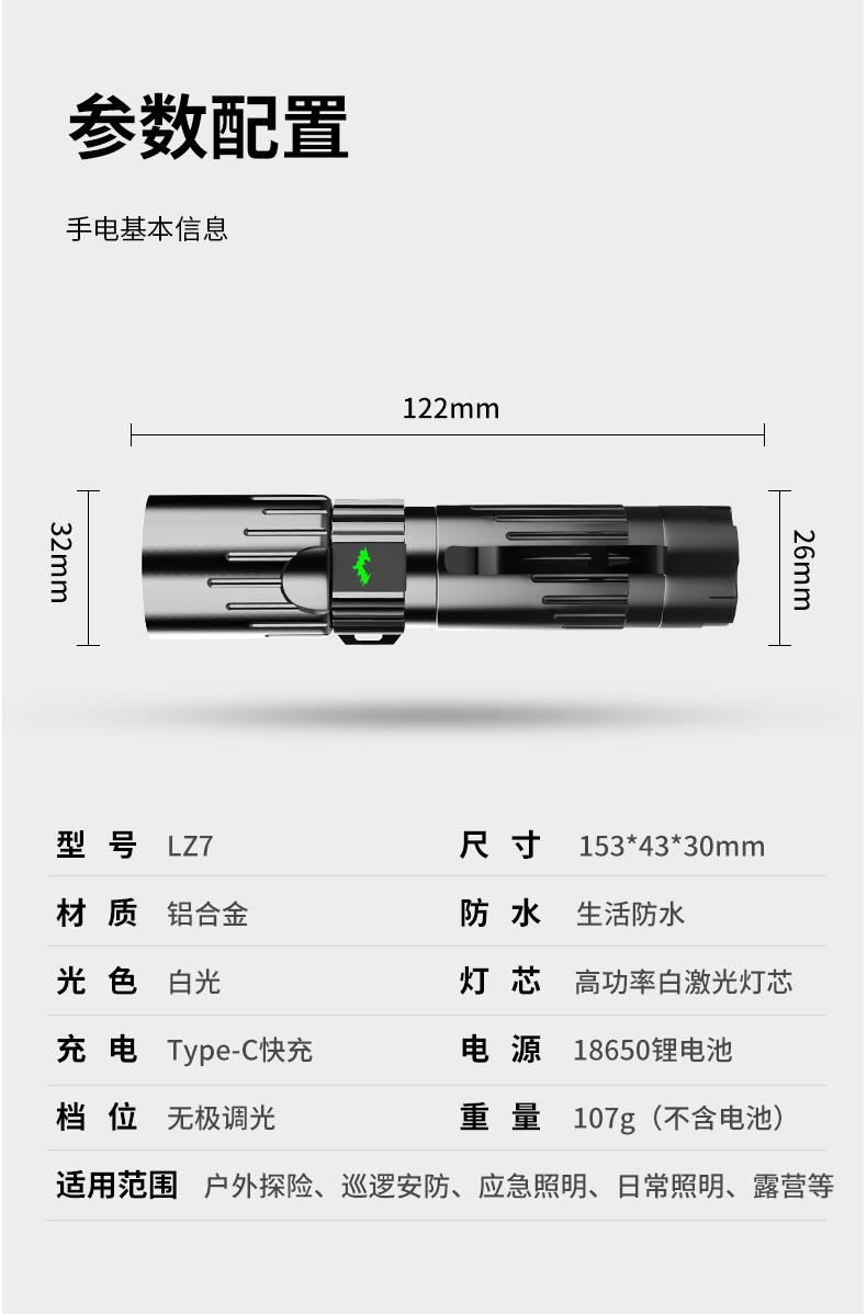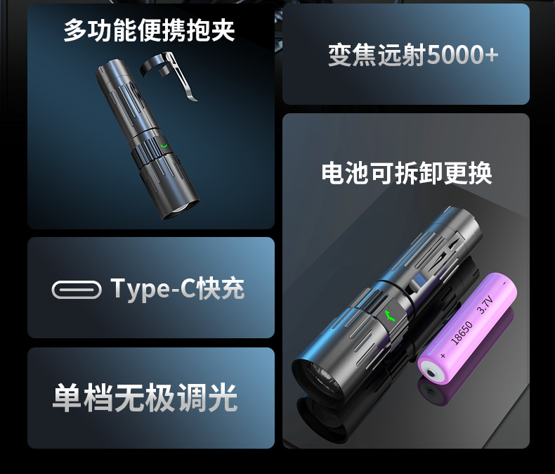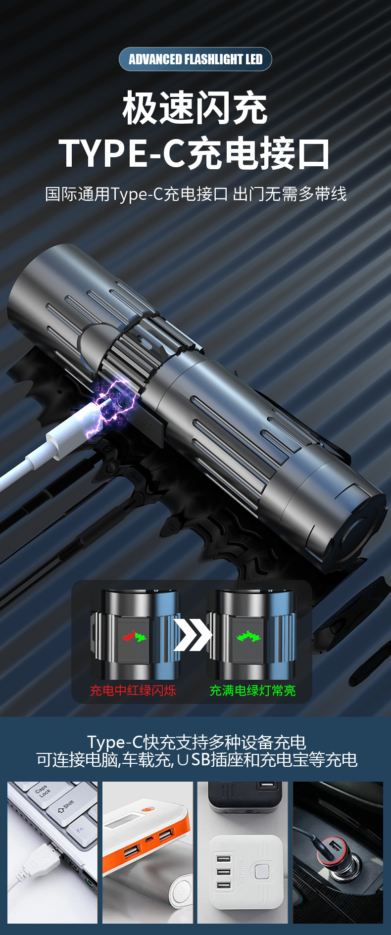 • 미니 휴대용 [단일 손전등] Type-C 고속 충전