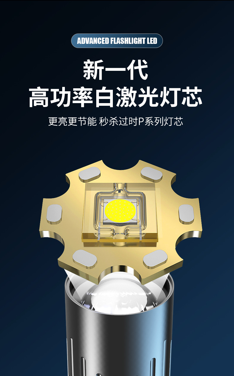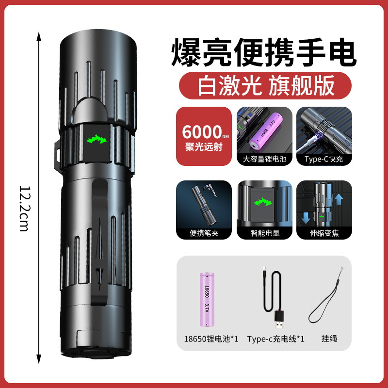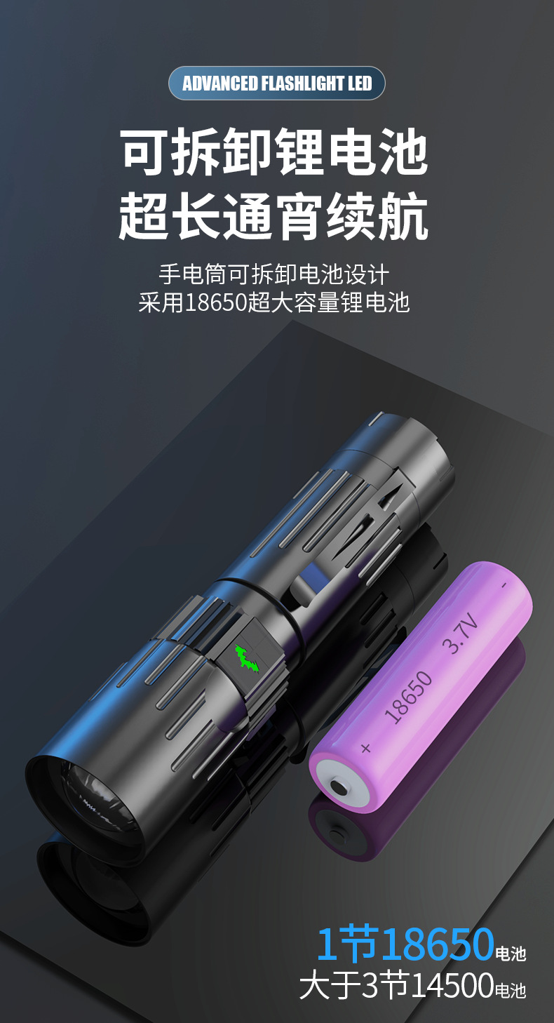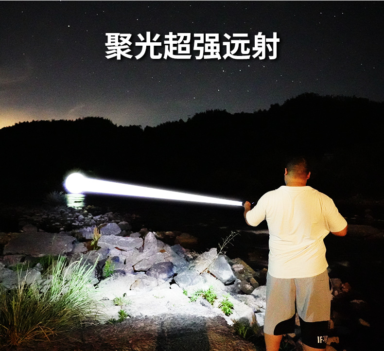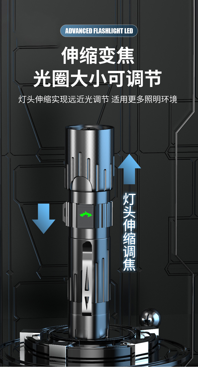 국경 공장 직접 슈퍼 밝은 손전등 led 텔레스코픽 줌 충전 밝은 야외 손전등 도매스토어 가기