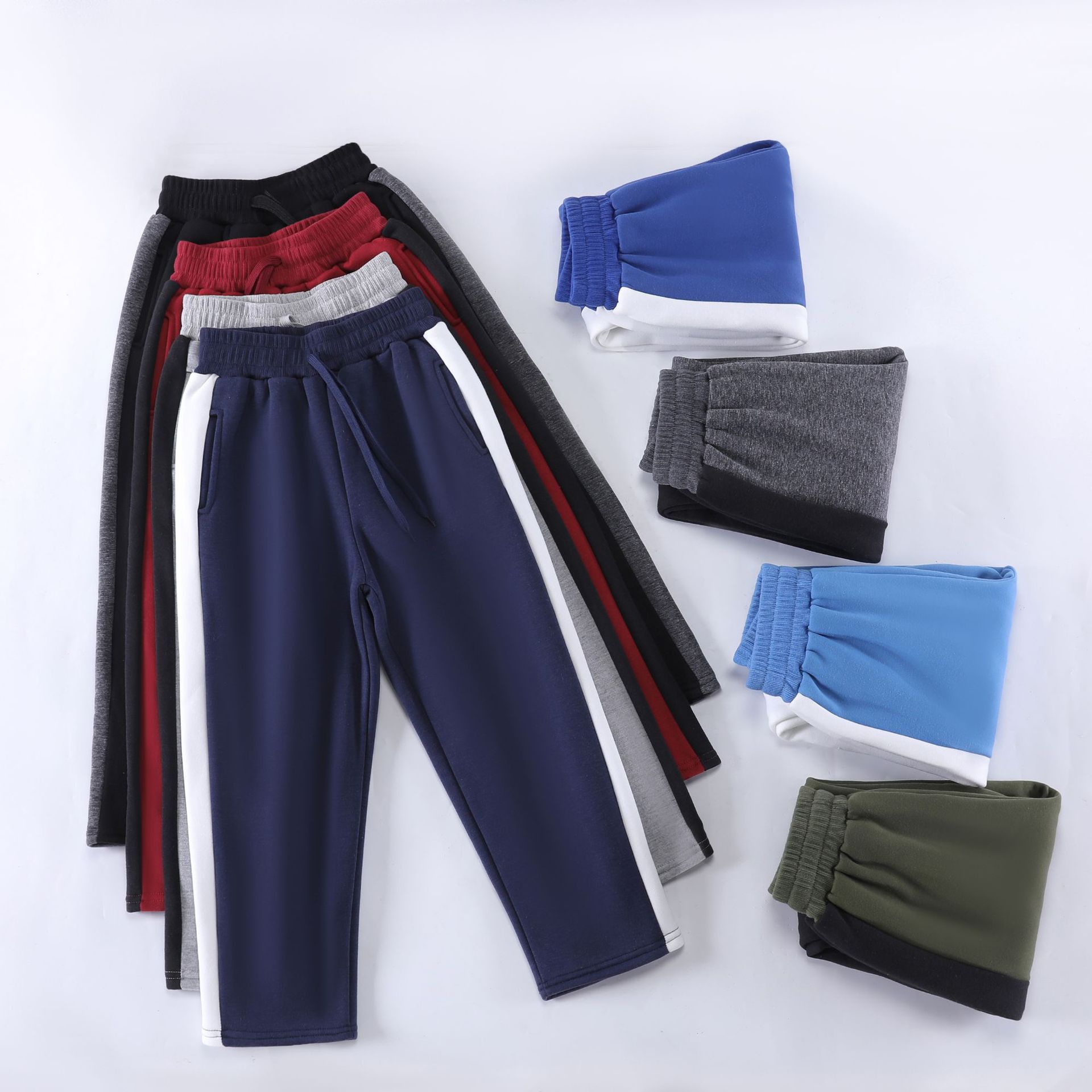 어린이 발 바인딩 바지 가을과 겨울 기모 두꺼운 스포츠 바지 학생 학교 바지 솔리드 컬러 사이드 맞춤법 서양식 캐주얼 바지스토어 가기