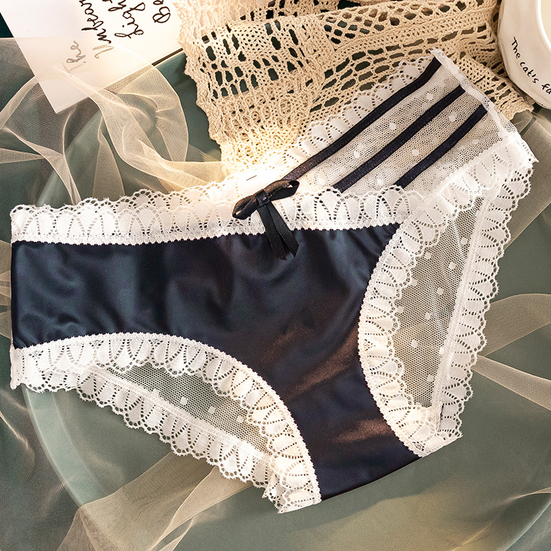 일본식 여성용 속옷 아이스 실크 투명 레이스 핫 코튼 크로트 얇은 바디-핏 트레이스 섹시한 통기성 여성 트라이앵글