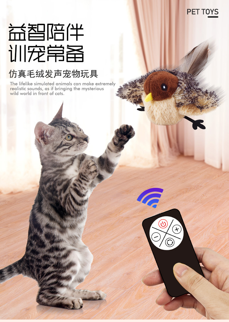 국경을 넘는 고양이 장난감 아마존 전동 새 소리 낸다 날개 퍼덕거리는 고양이 애완용품 지루함 해소 충전식 인터랙티브스토어 가기