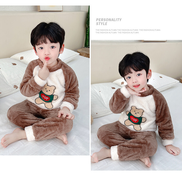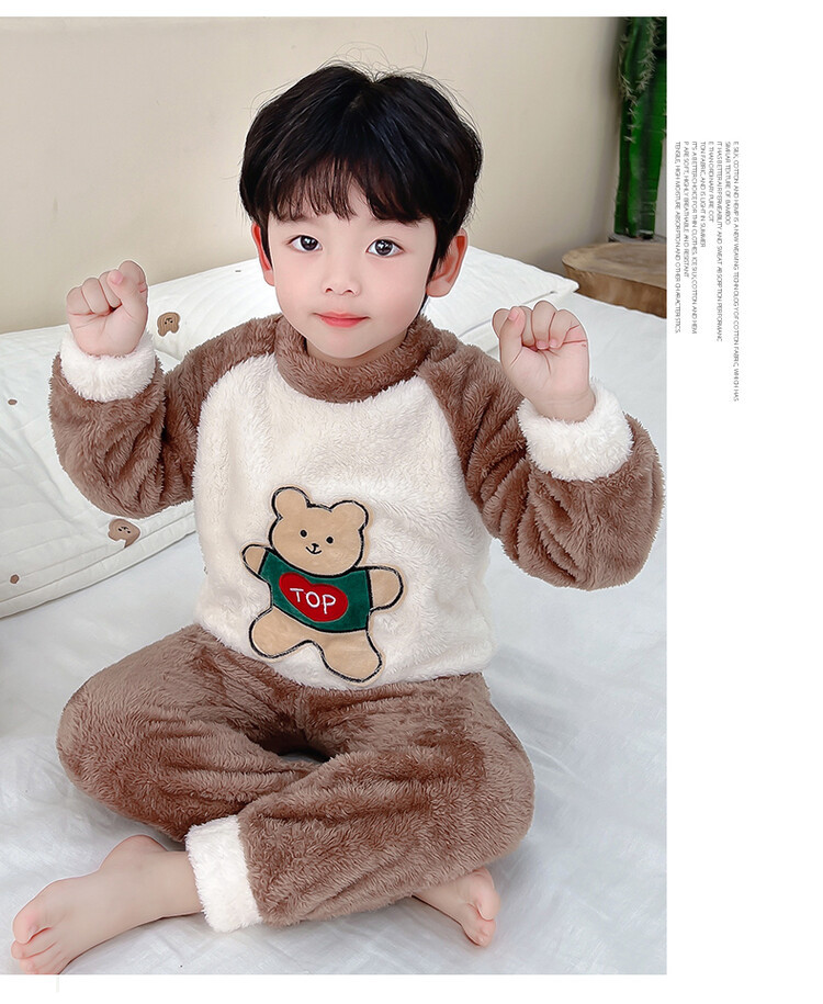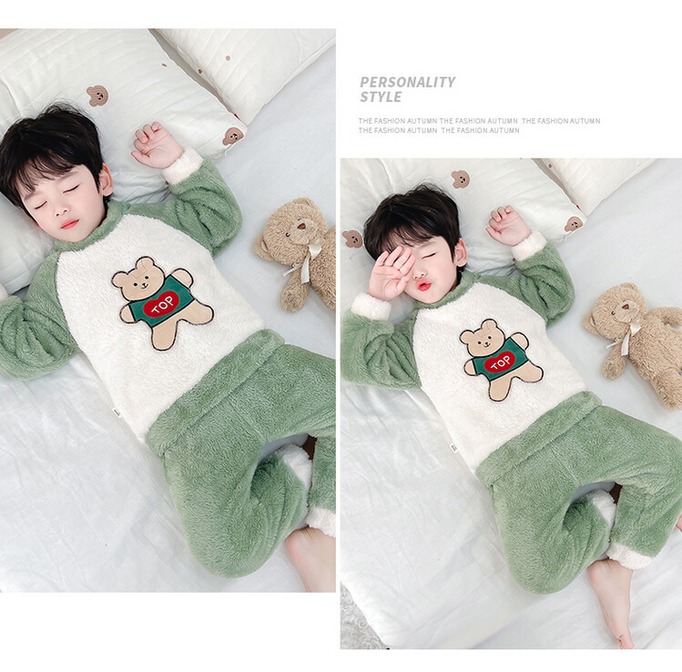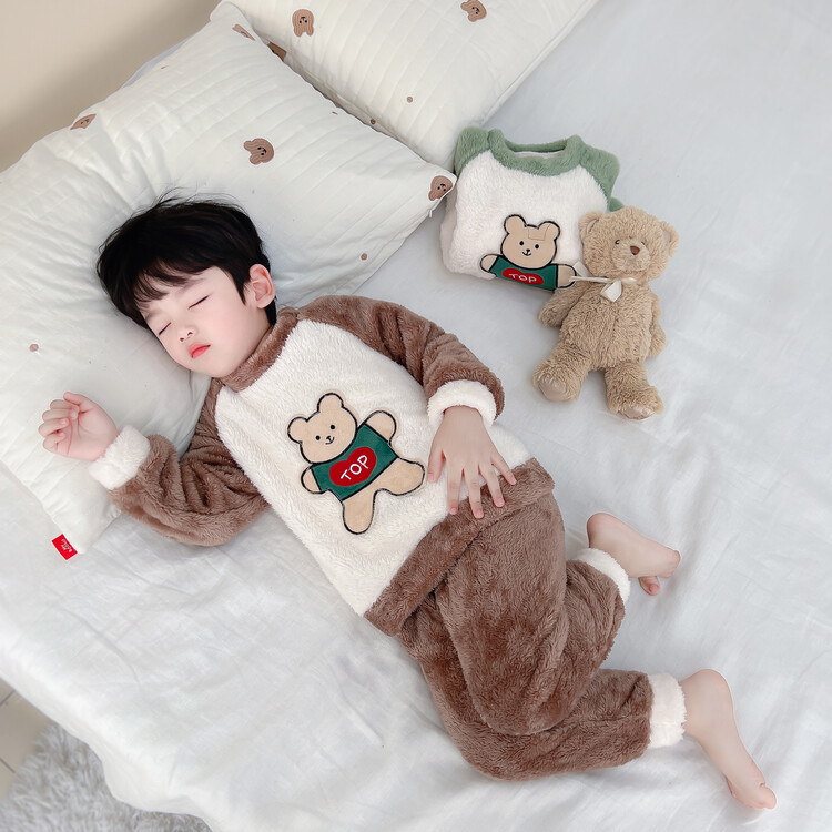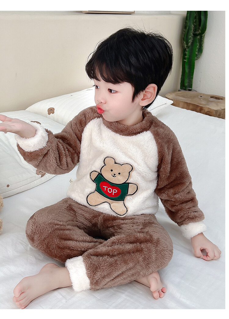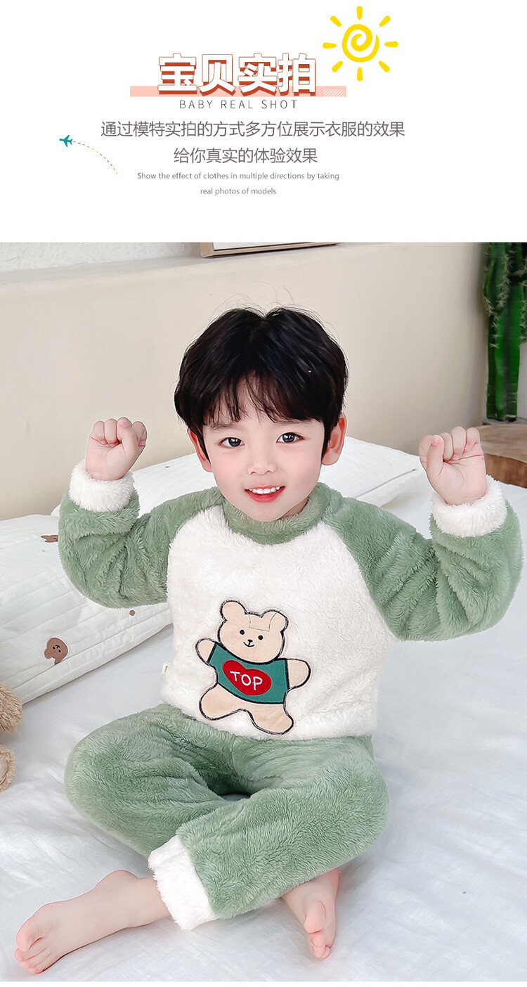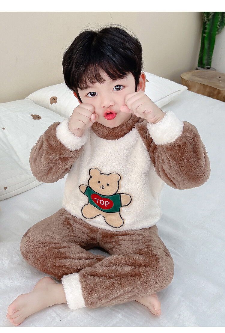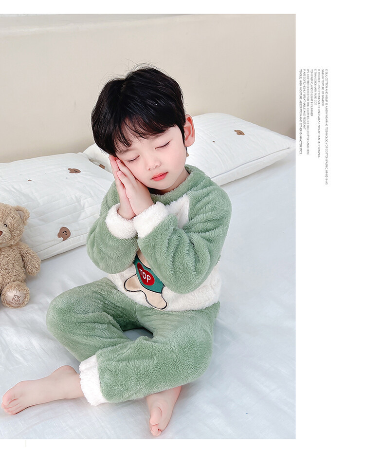 어린이 잠옷 2025 가을 겨울 신상 남아용 플란넬 홈웨어 따뜻한 산호 벨벳 분리형 세트스토어 가기