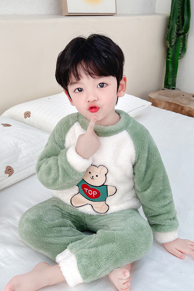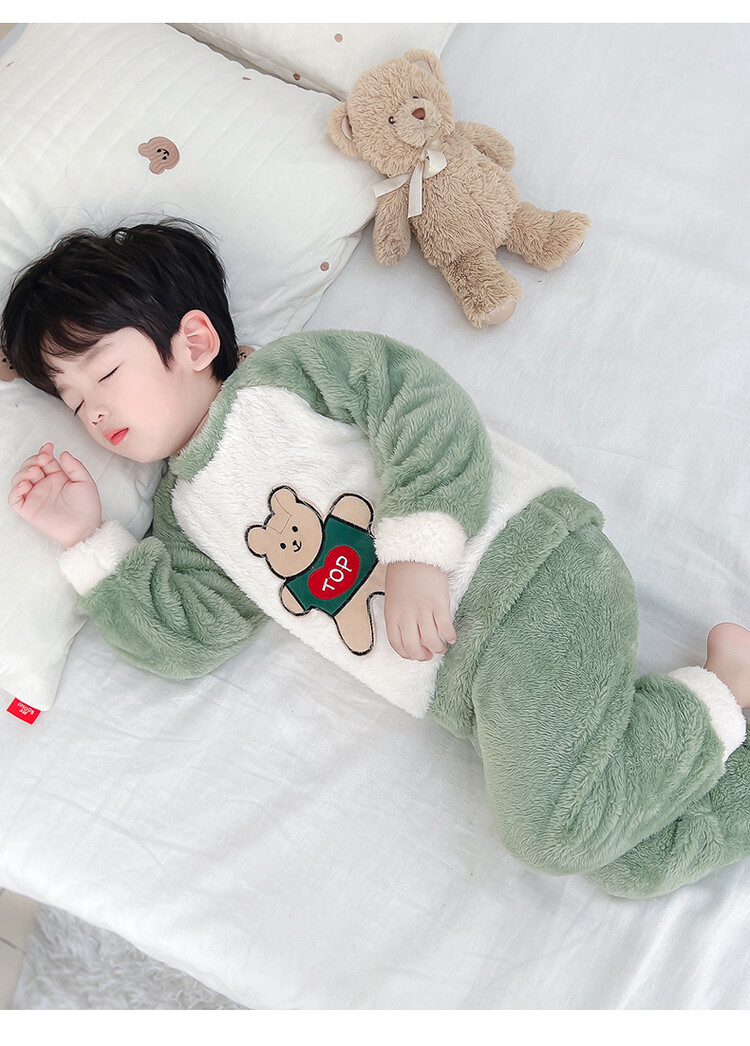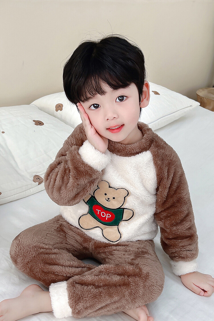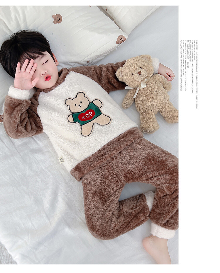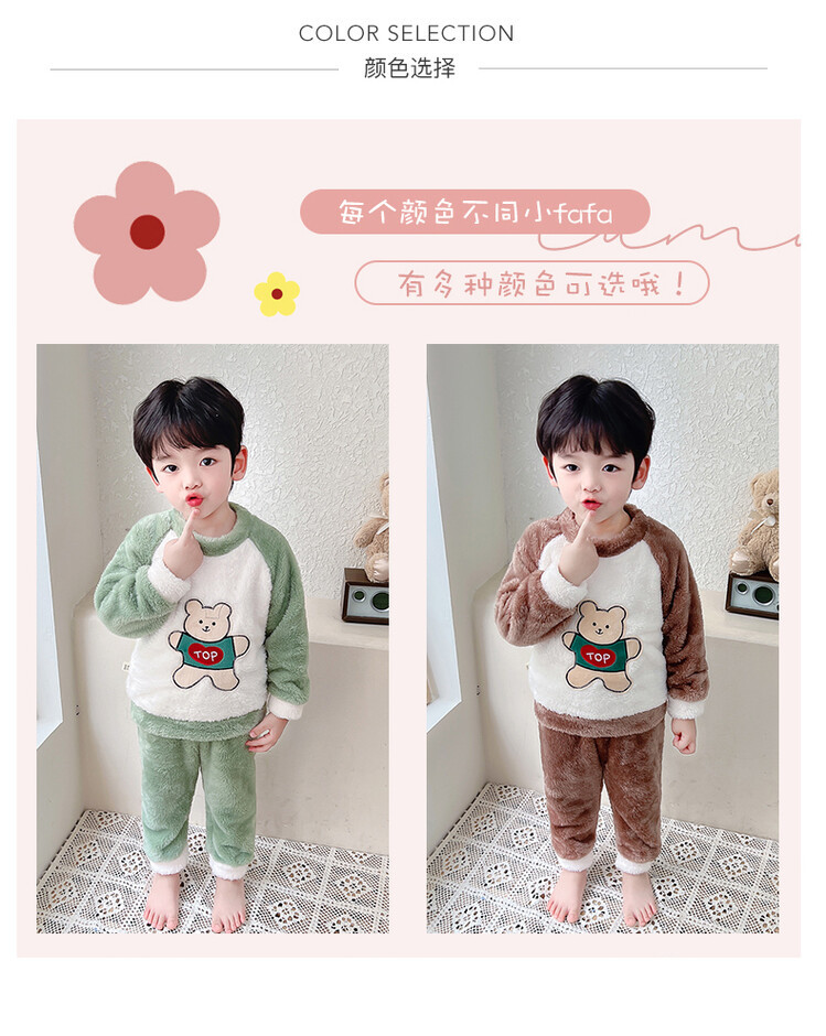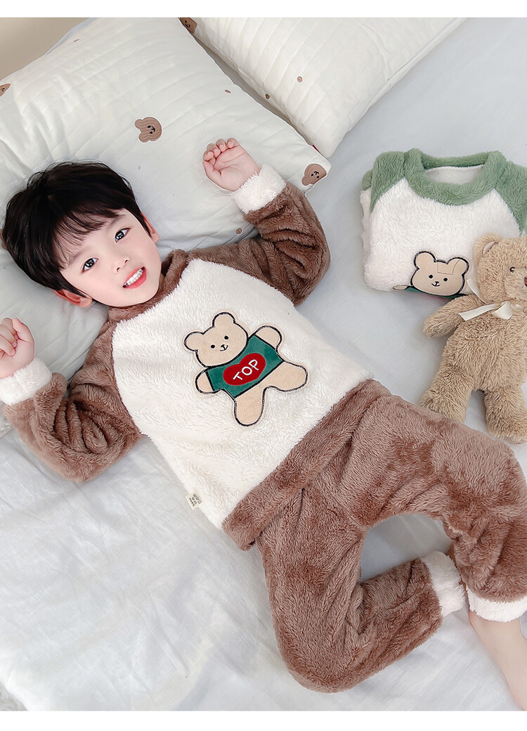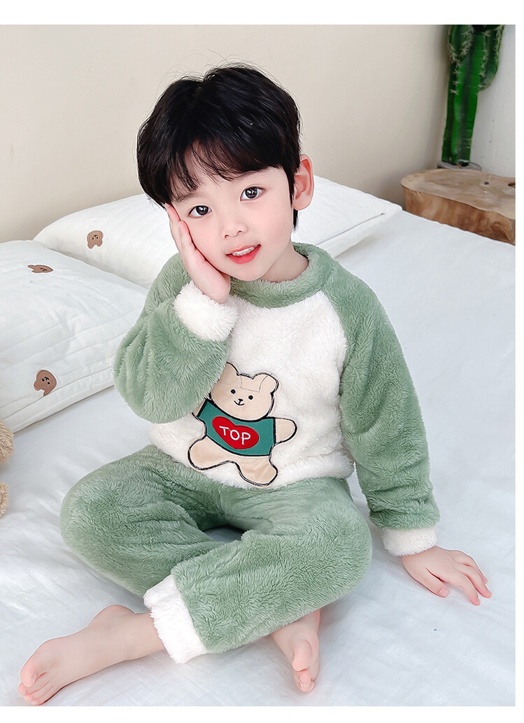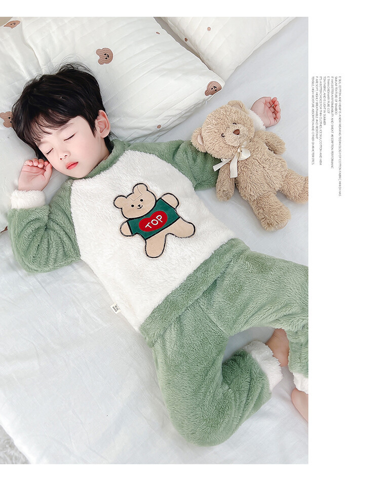 어린이 잠옷 2025 가을 겨울 신상 남아용 플란넬 홈웨어 따뜻한 산호 벨벳 분리형 세트스토어 가기