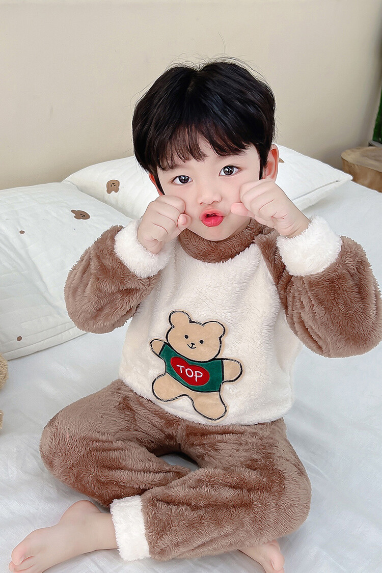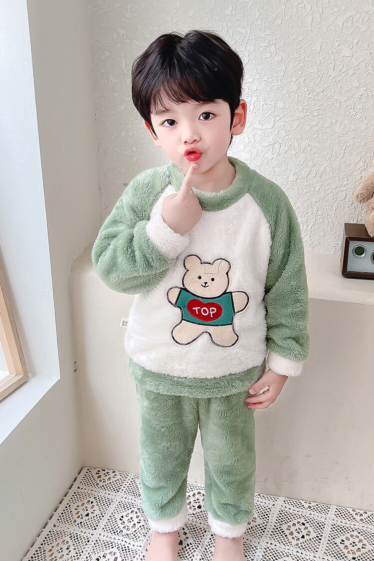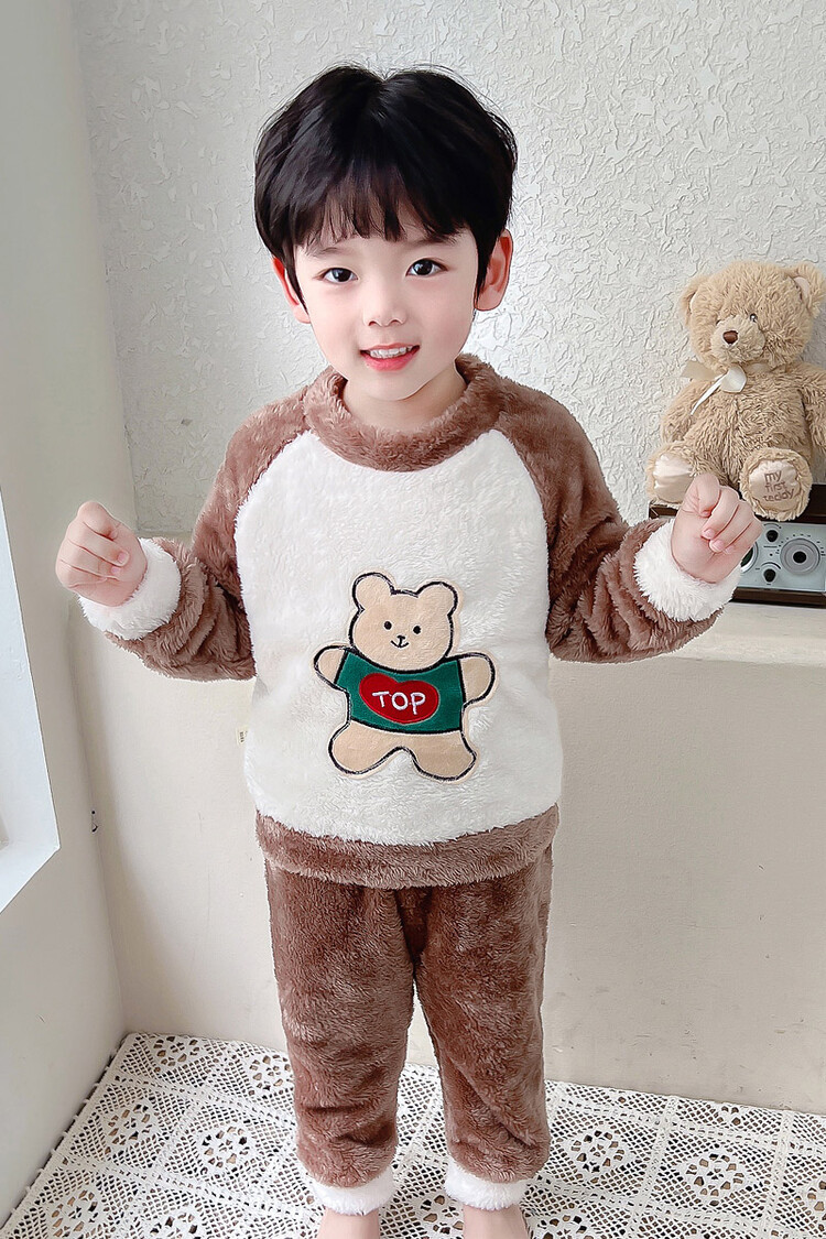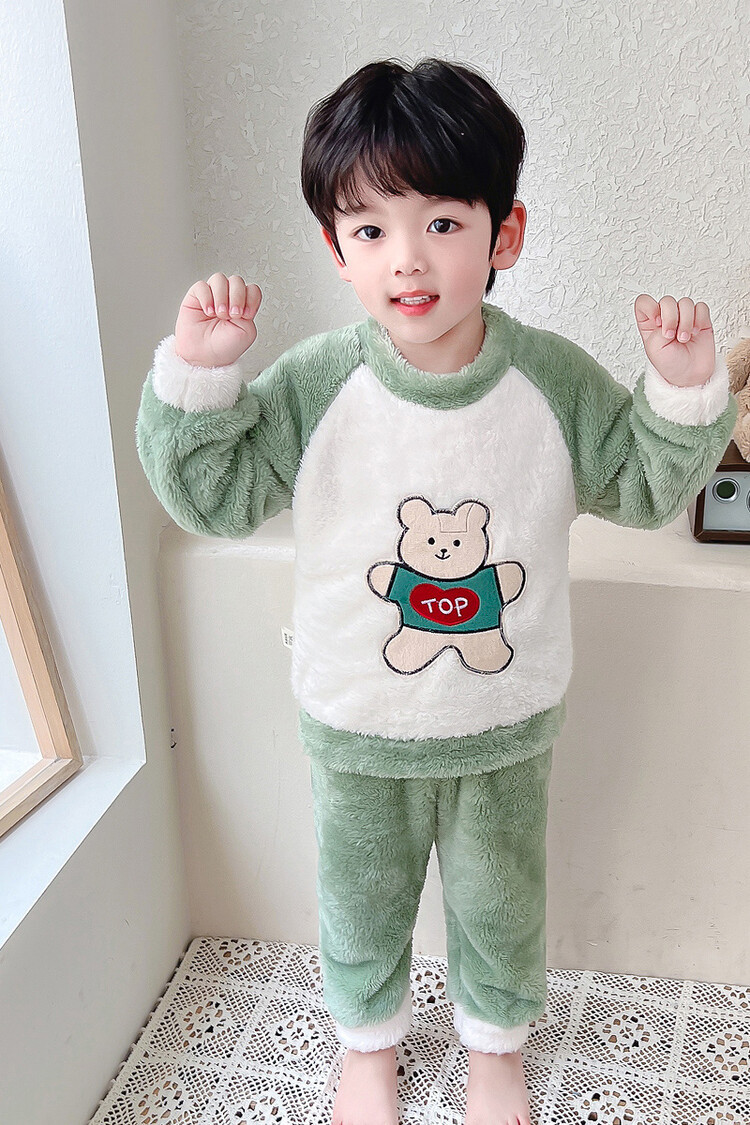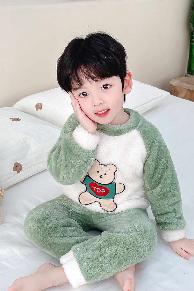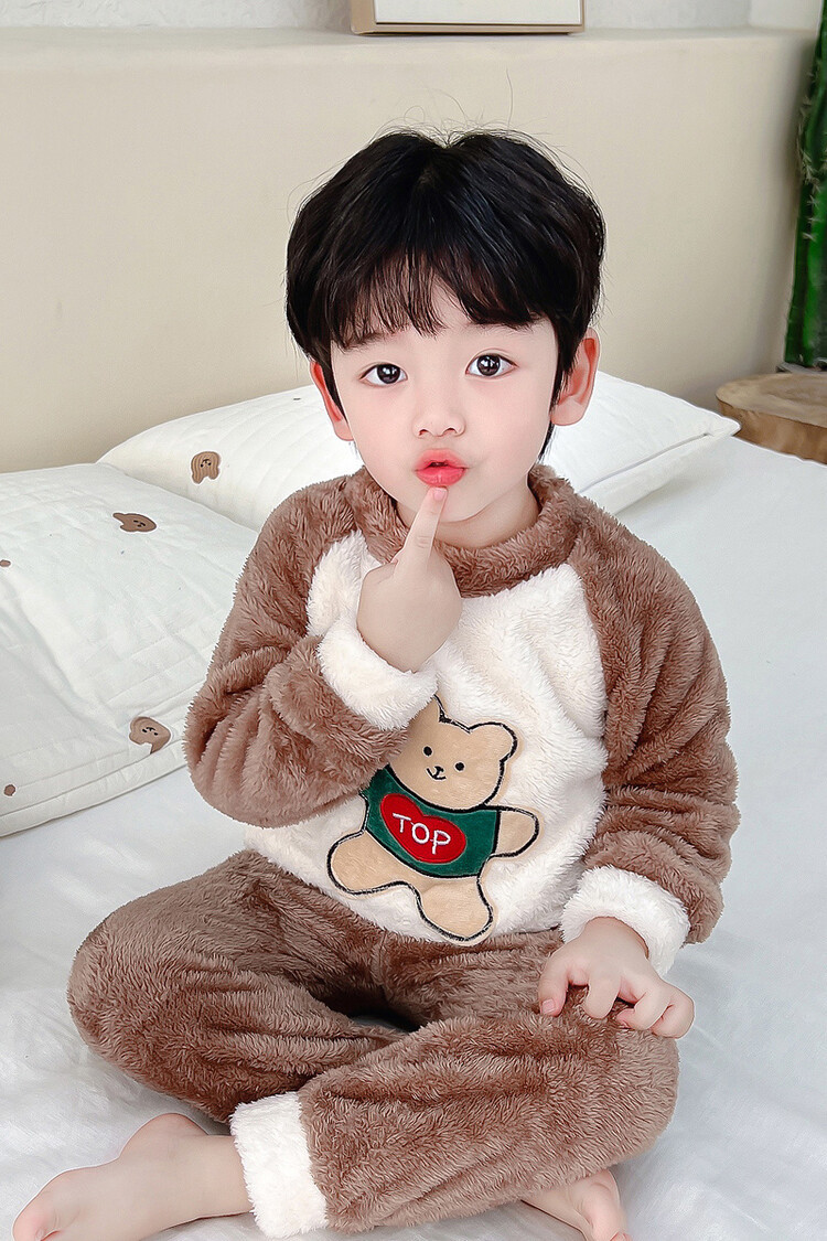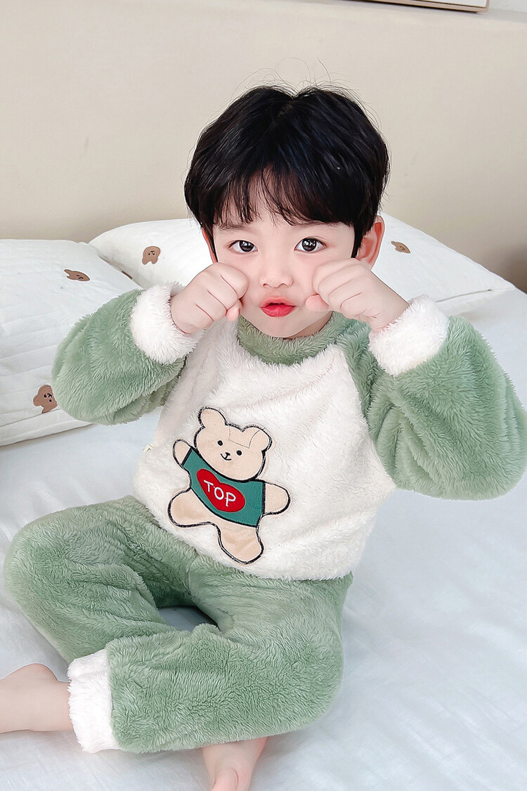 어린이 잠옷 2025 가을 겨울 신상 남아용 플란넬 홈웨어 따뜻한 산호 벨벳 분리형 세트스토어 가기