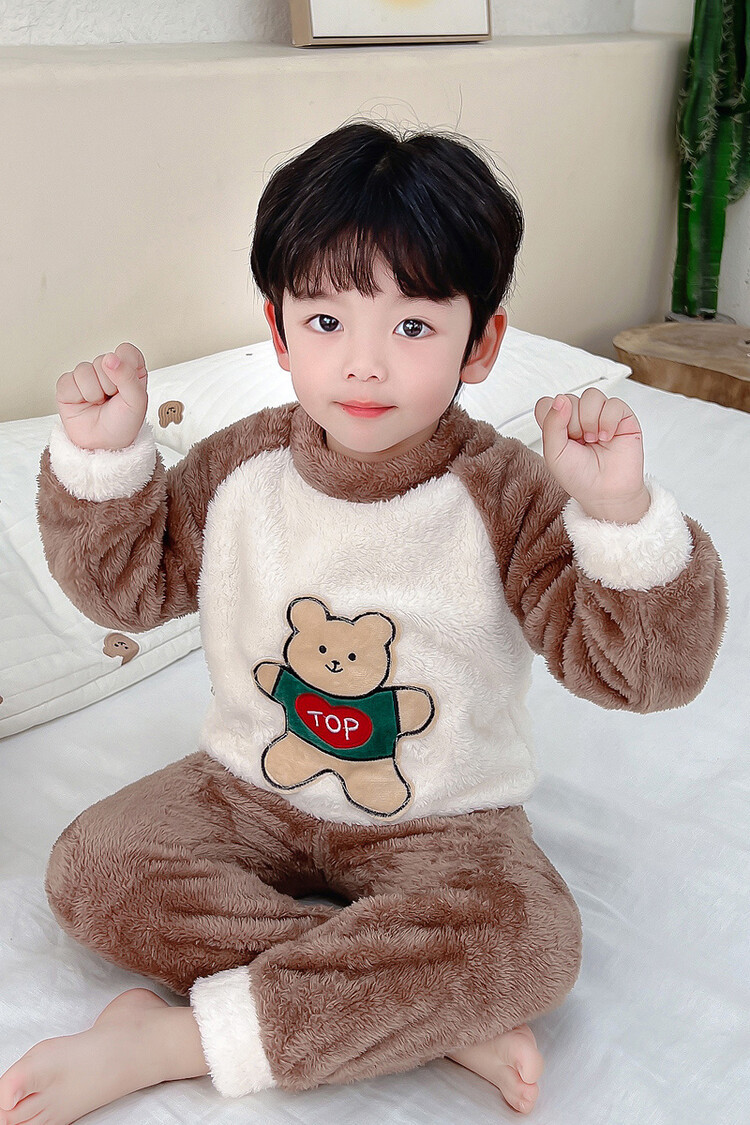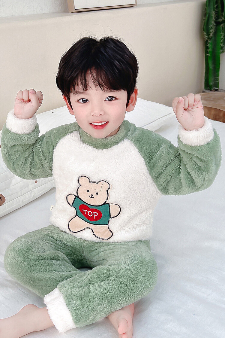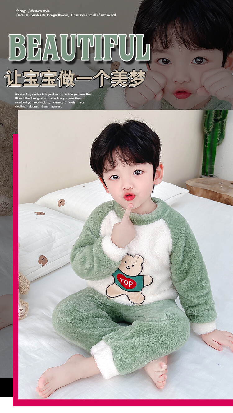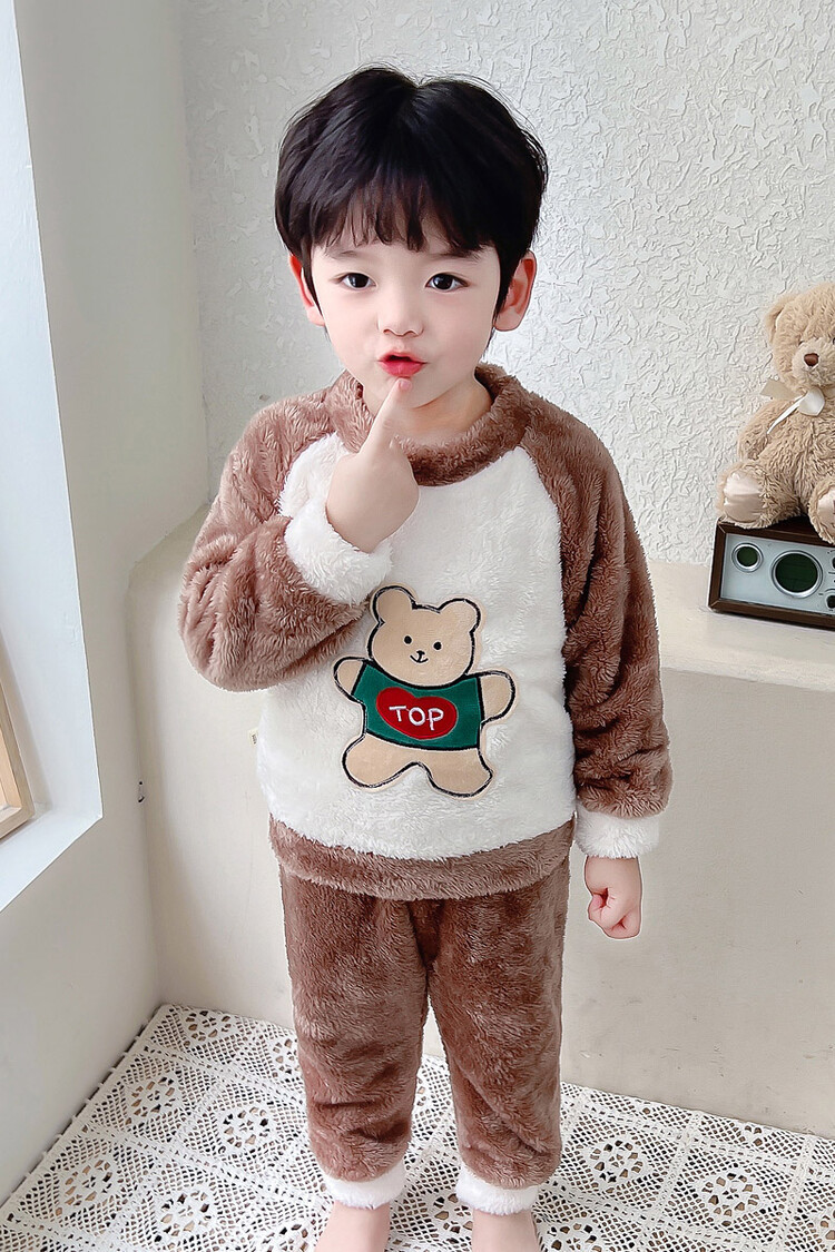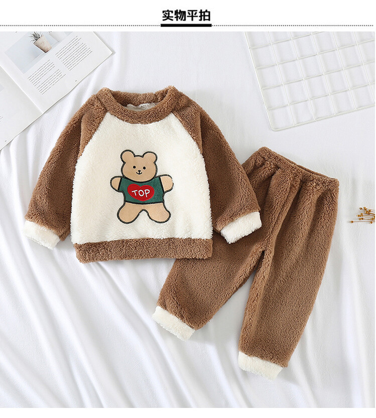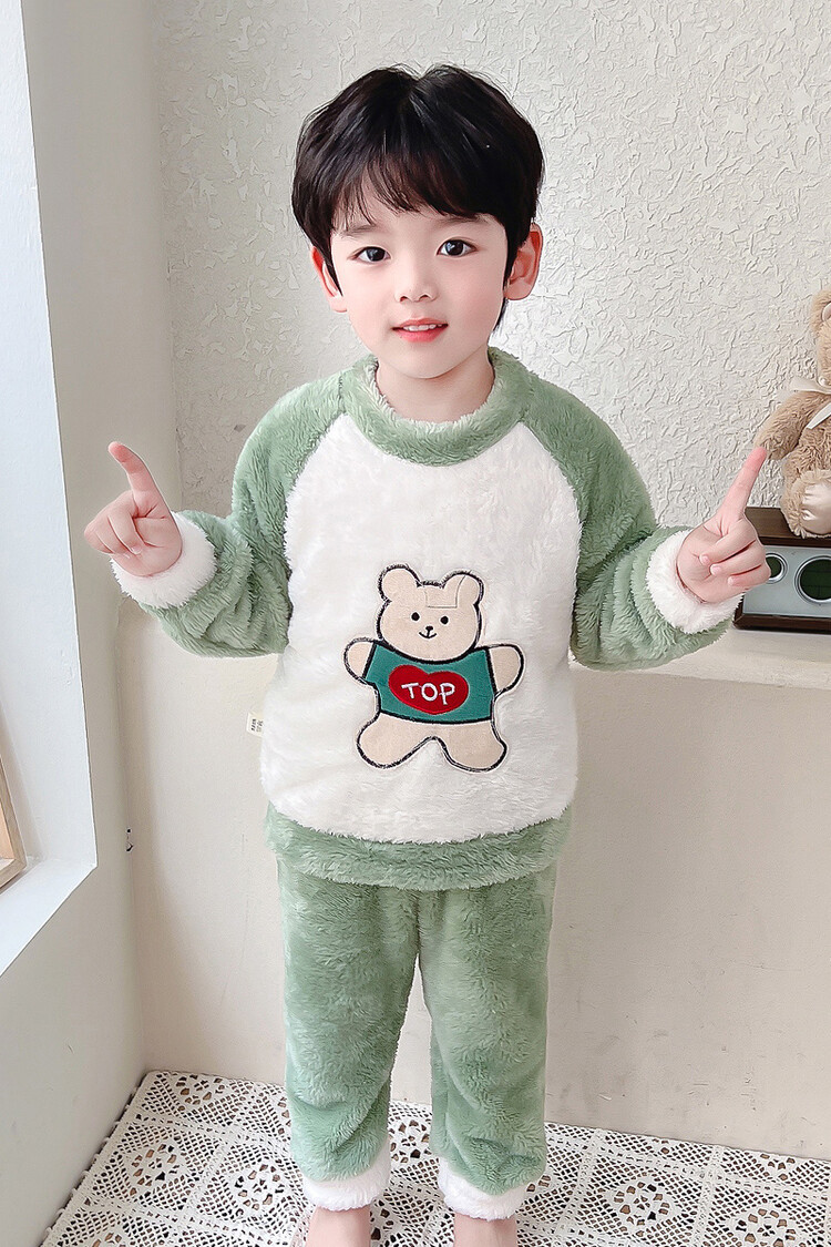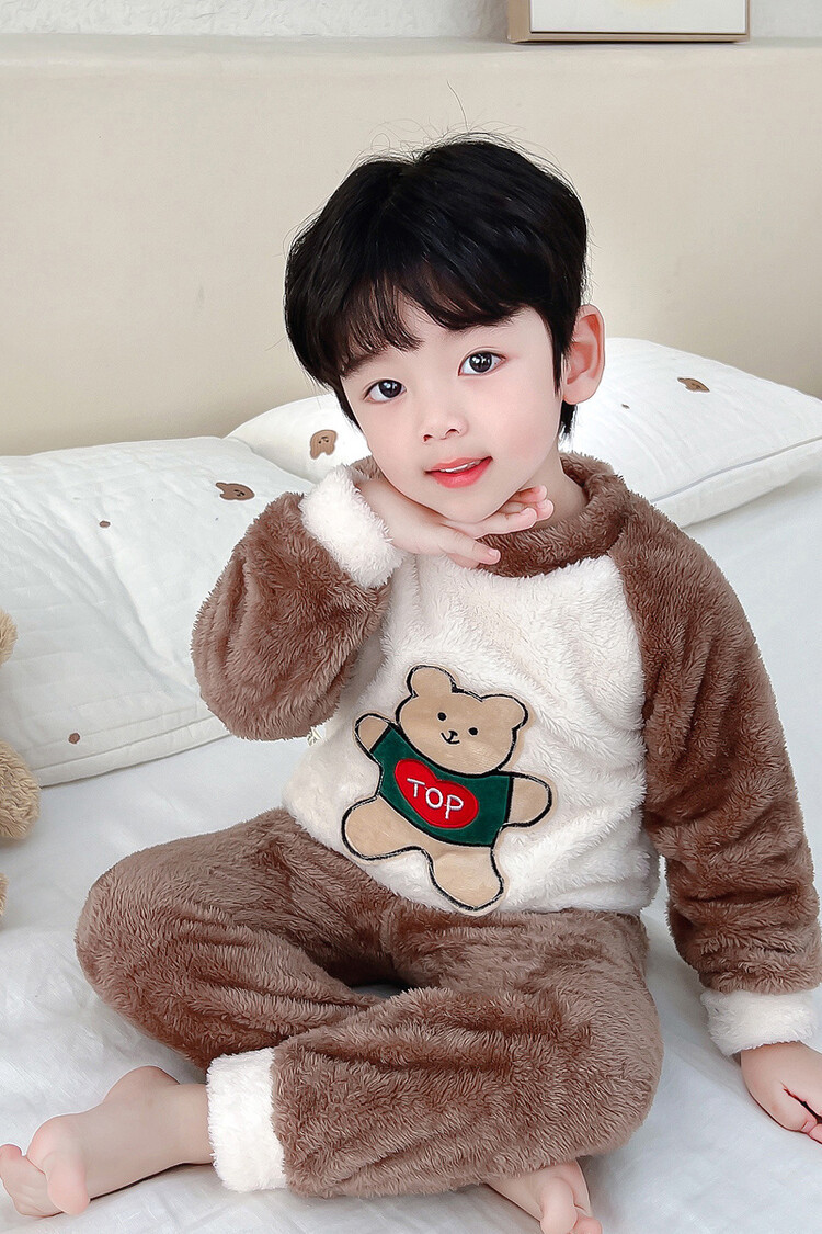 어린이 잠옷 2025 가을 겨울 신상 남아용 플란넬 홈웨어 따뜻한 산호 벨벳 분리형 세트스토어 가기