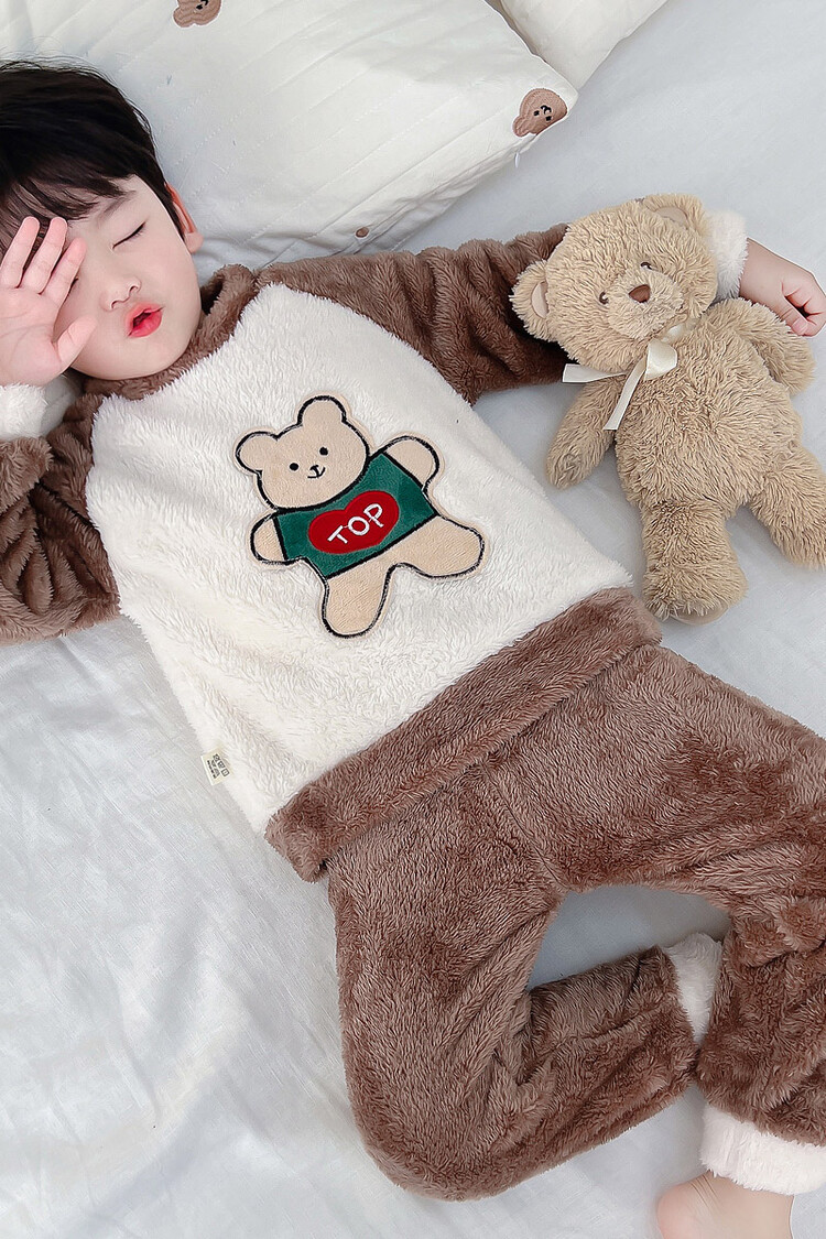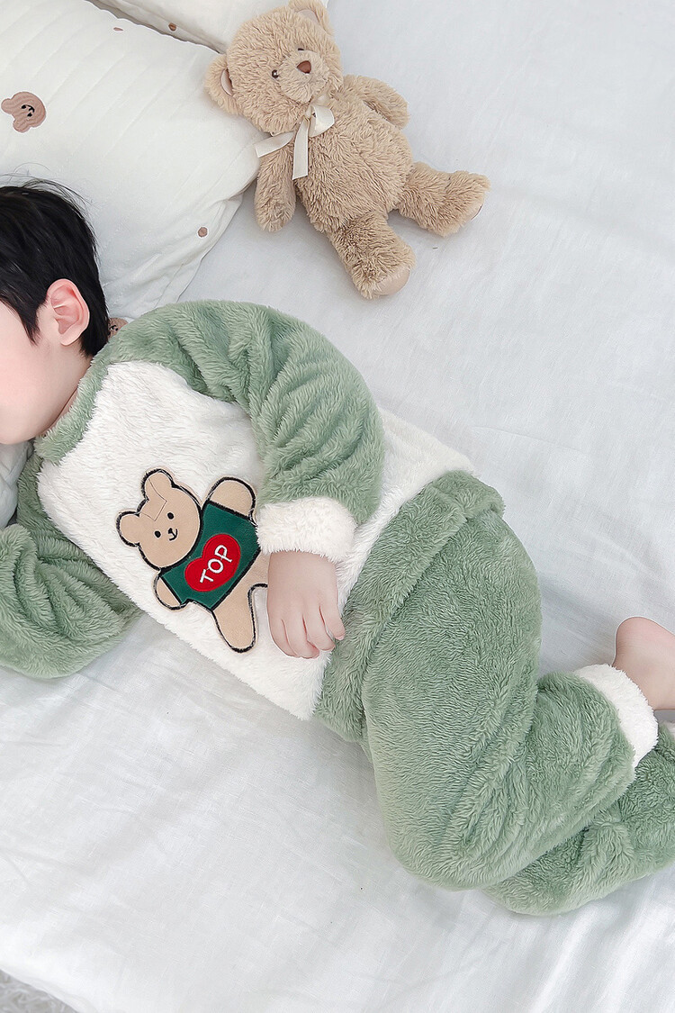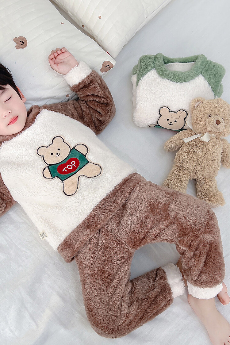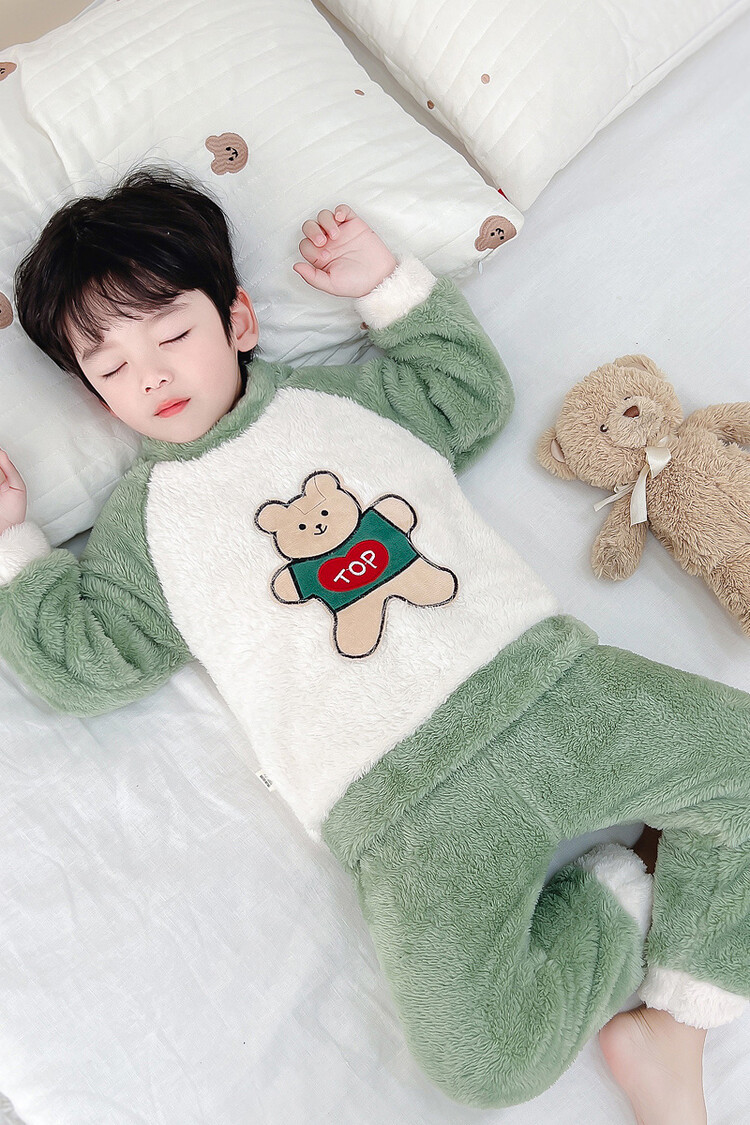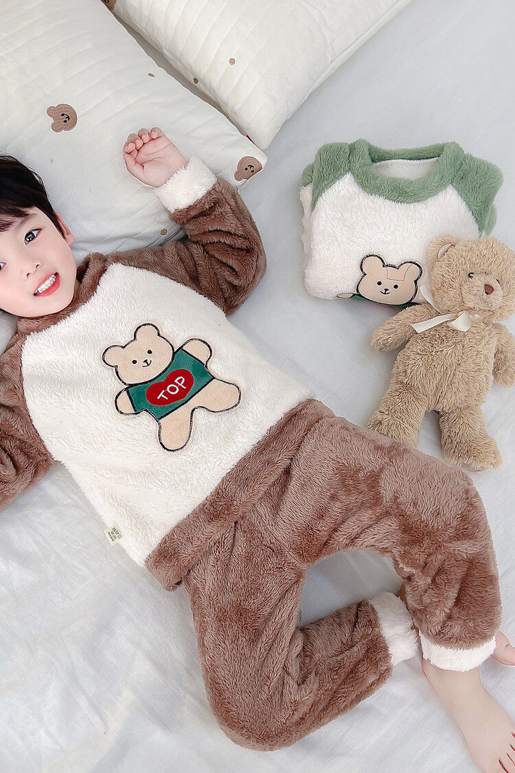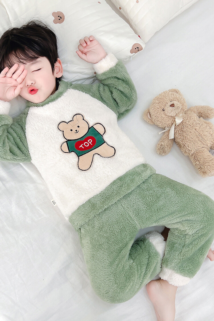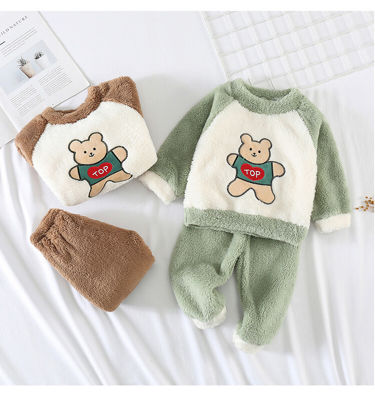 어린이 잠옷 2025 가을 겨울 신상 남아용 플란넬 홈웨어 따뜻한 산호 벨벳 분리형 세트스토어 가기