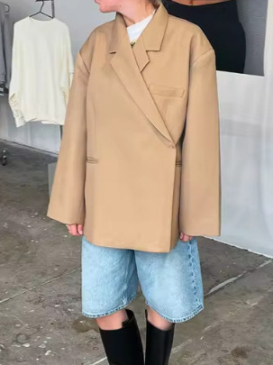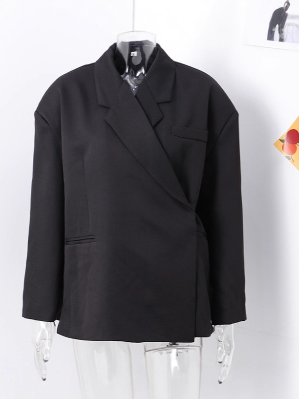 유럽 및 미국 스타일 2024 가을 겨울 긴팔 여성 정장 재킷 캐주얼 라펠 사이드 포켓 재킷 여성 고급스러운 느낌스토어 가기