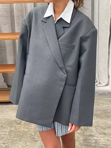 유럽 및 미국 스타일 2024 가을 겨울 긴팔 여성 정장 재킷 캐주얼 라펠 사이드 포켓 재킷 여성 고급스러운 느낌