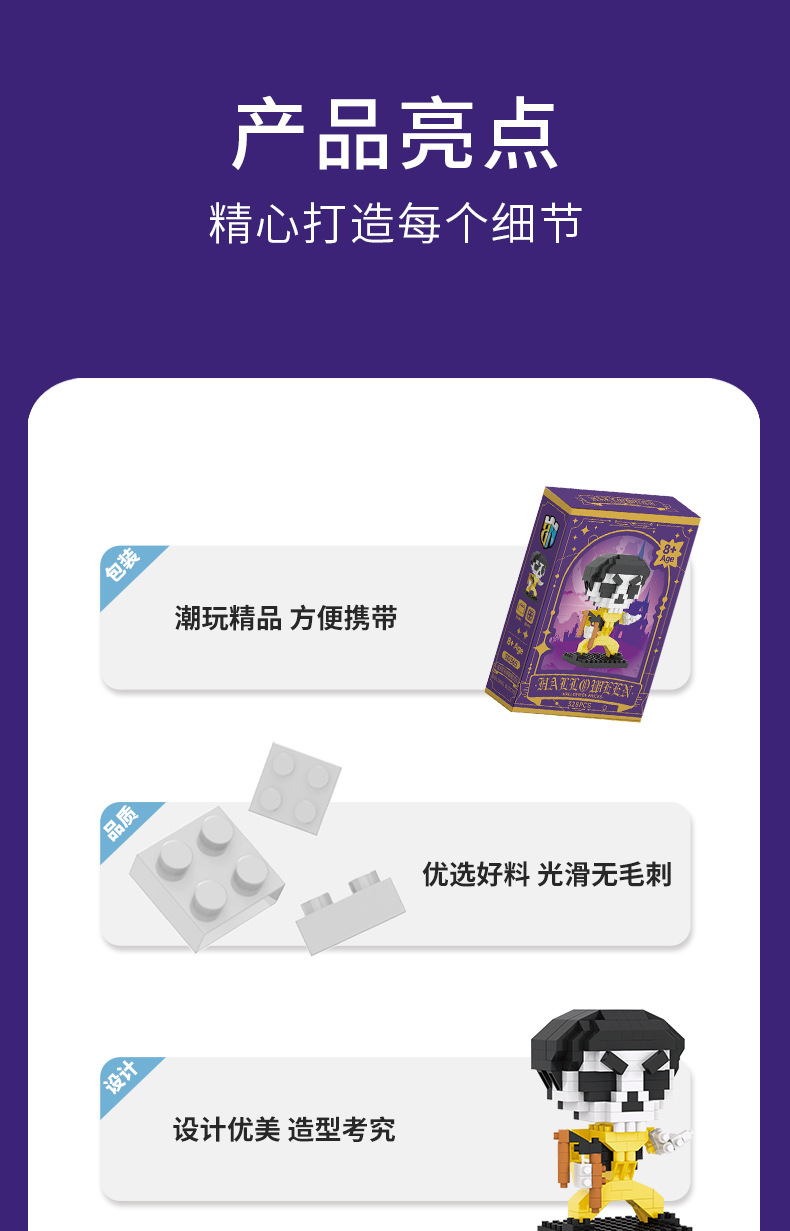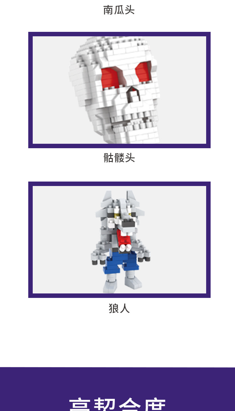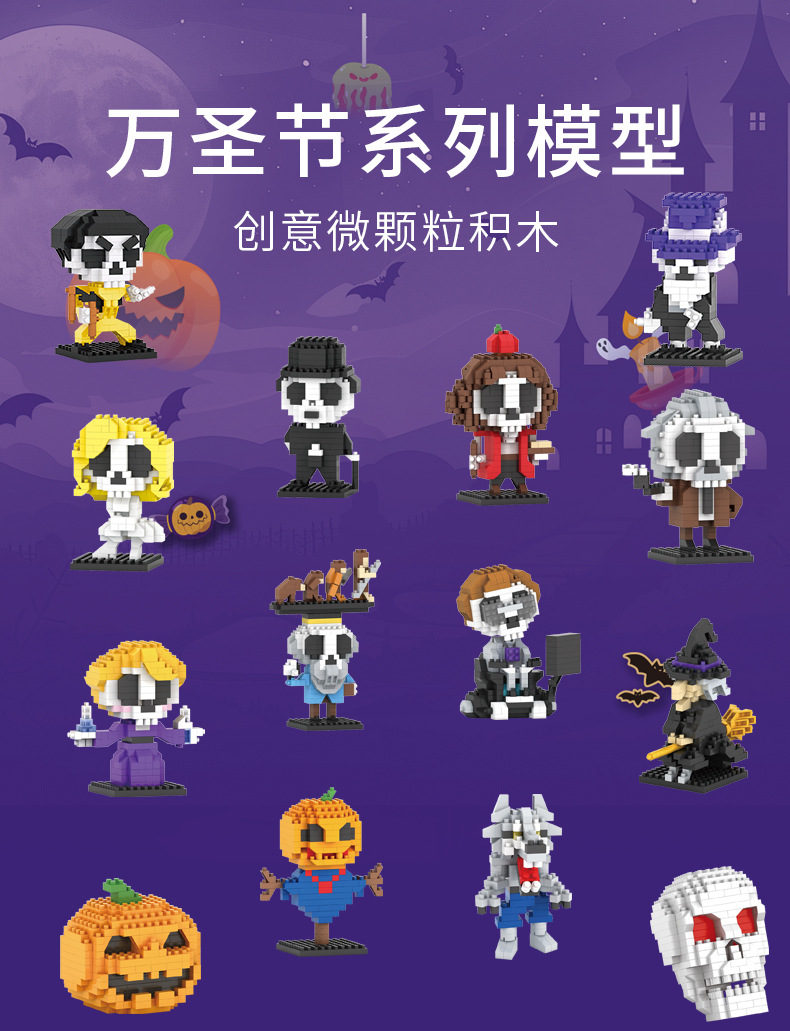 국경 간 DIY 퍼즐 빌딩 블록 할로윈 호박 머리 마녀 두개골 늑대 인간 마이크로 입자 빌딩 블록 장난감 폭발스토어 가기