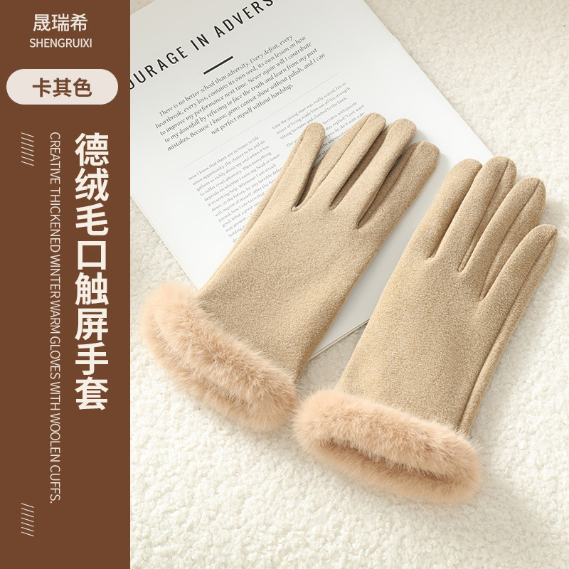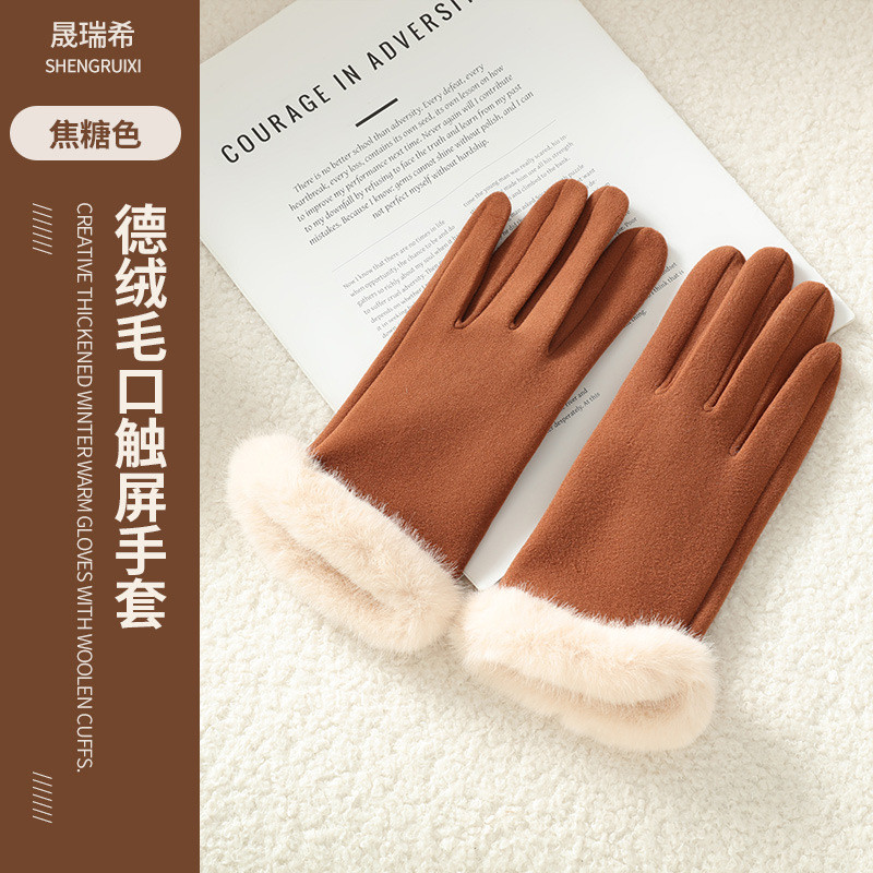 2025 새로운 여성 가을 겨울 벨벳 두꺼운 따뜻한 장갑 자체 발열 사이클링 도매 독일 벨벳 터치 스크린 장갑